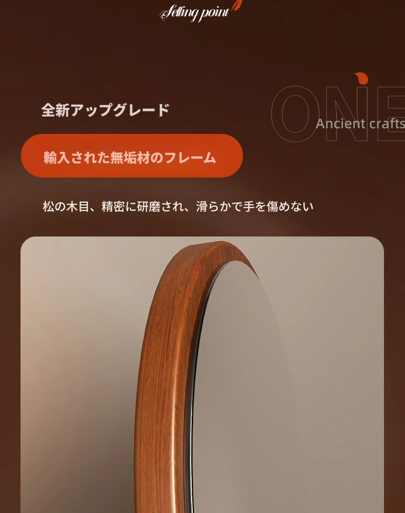 (円形タイプ)30*18cm ナチュラル色【アップグレードラバーウッド 埋め込みミラー】