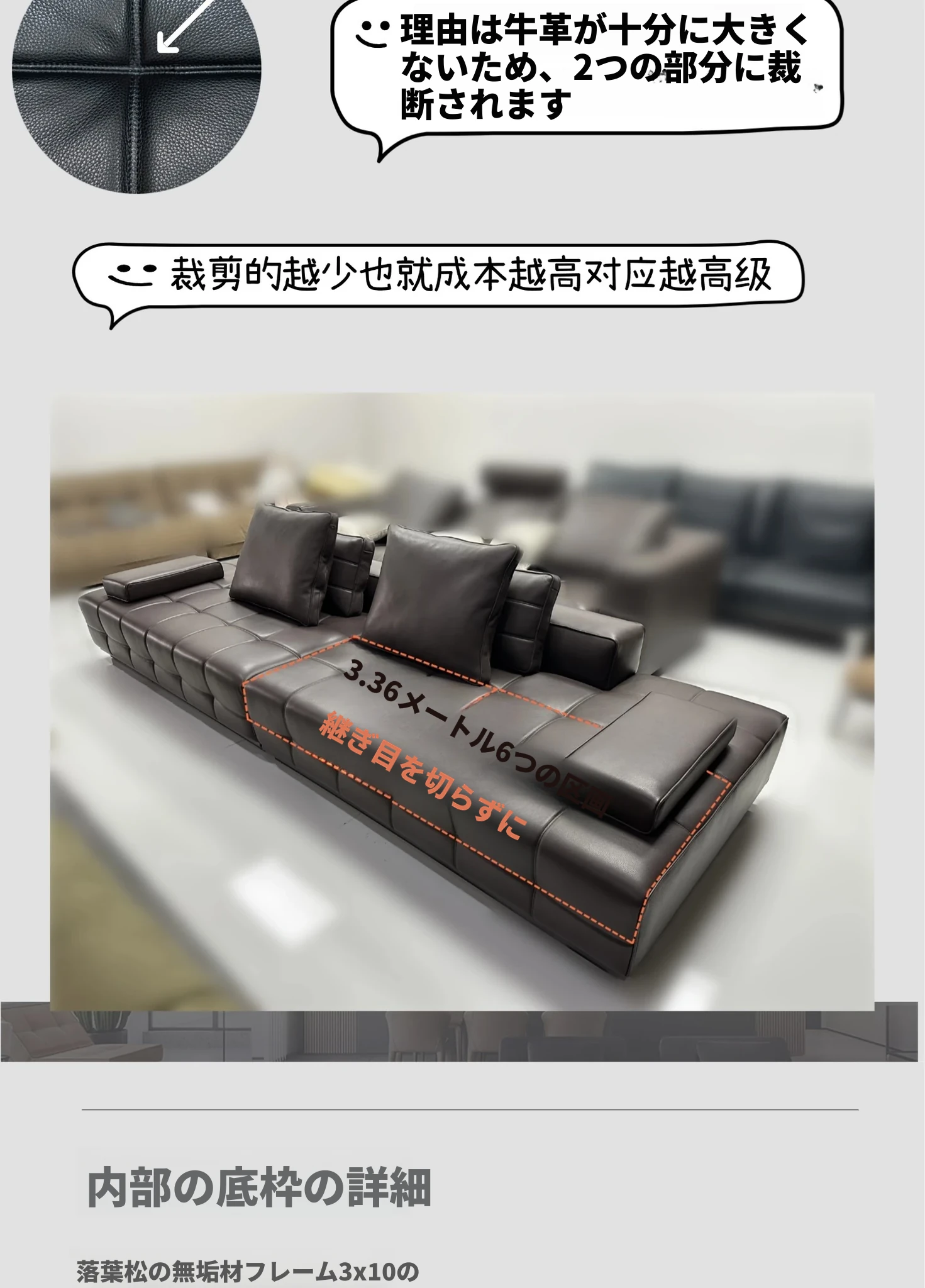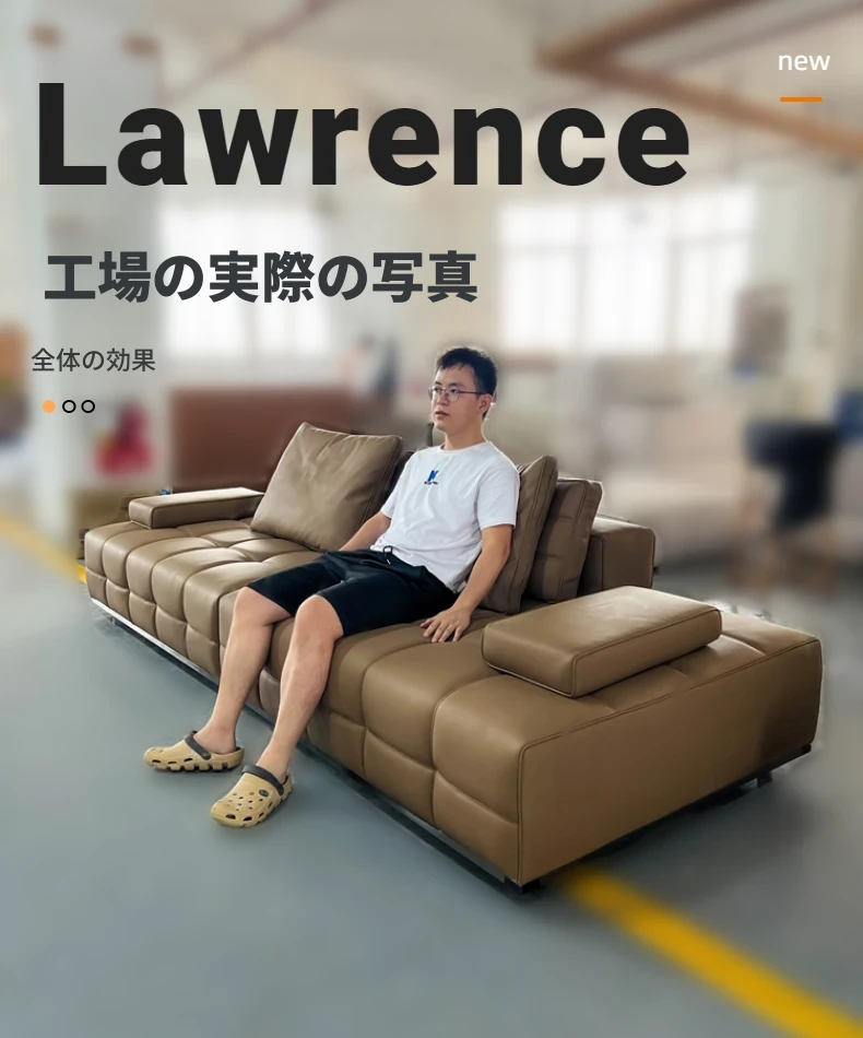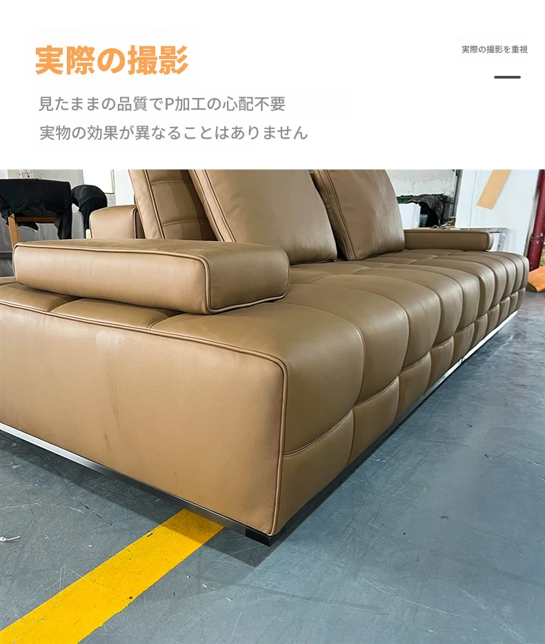 鼎德喜ローランス イタリアンミニマリズム 本革ソファ ヴィラスタイル リビングルーム用 ストレート3人掛けソファ - 高級感溢れるデザインで、心地よいひとときをお届けします。