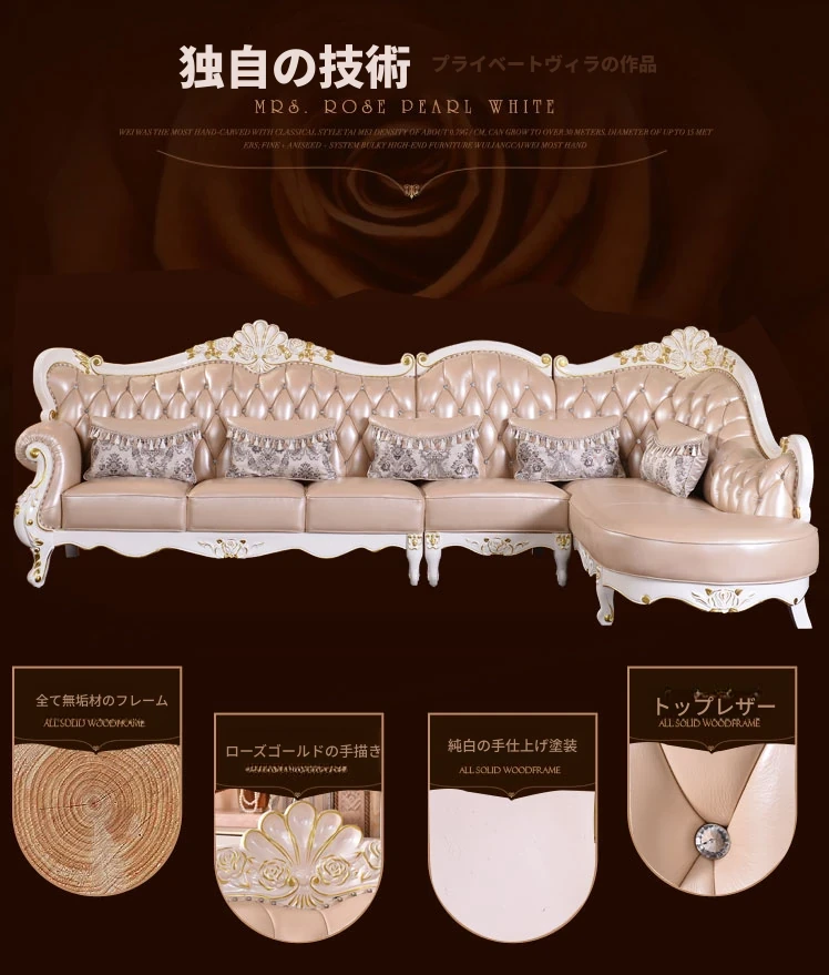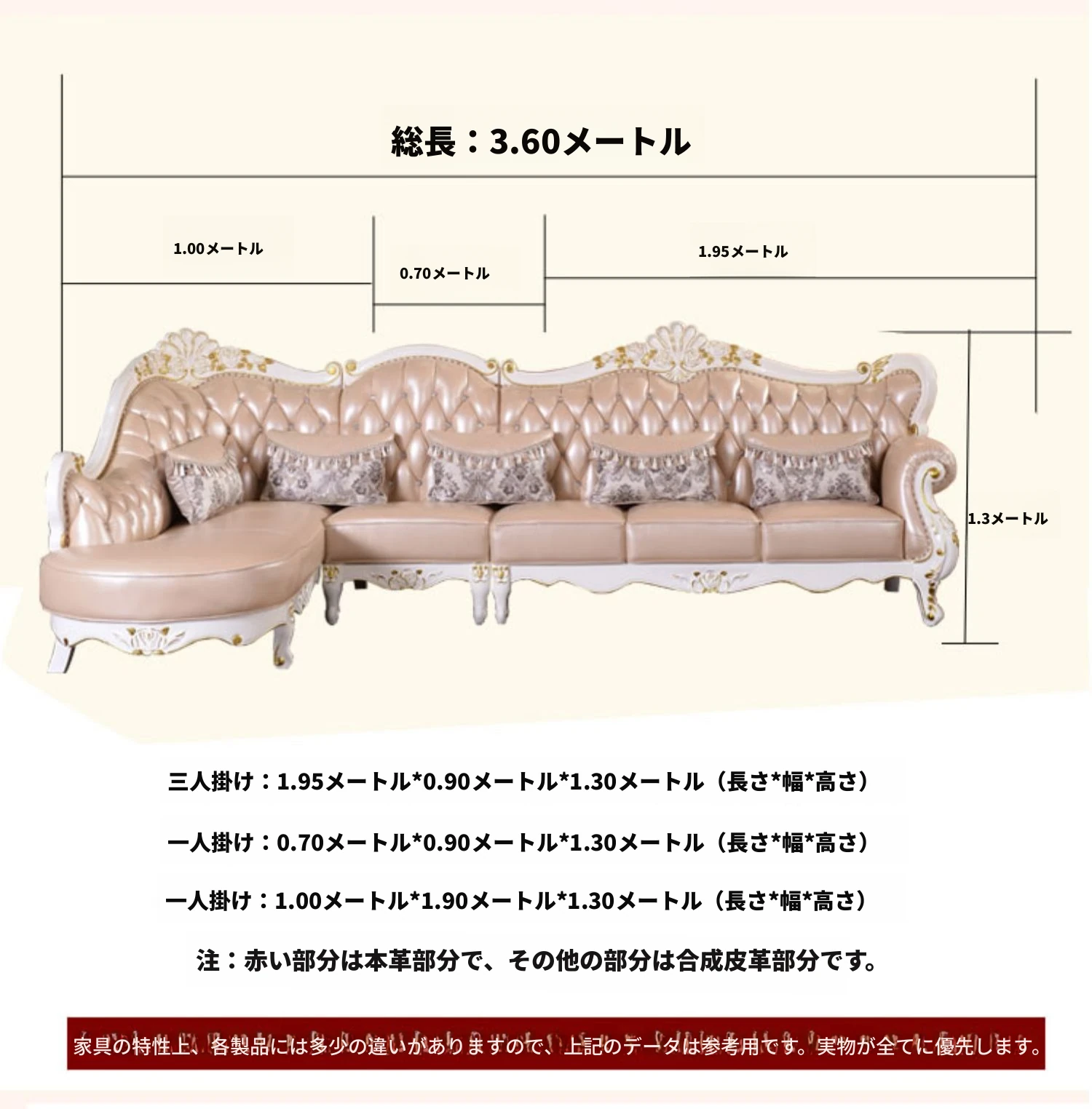 高級感あふれる欧風コーナーソファ!本革の高品質牛皮使用、堅牢な無垢材フレームで小さな空間にもぴったり。贅沢なデザインで、あなたのリビングを一新します。