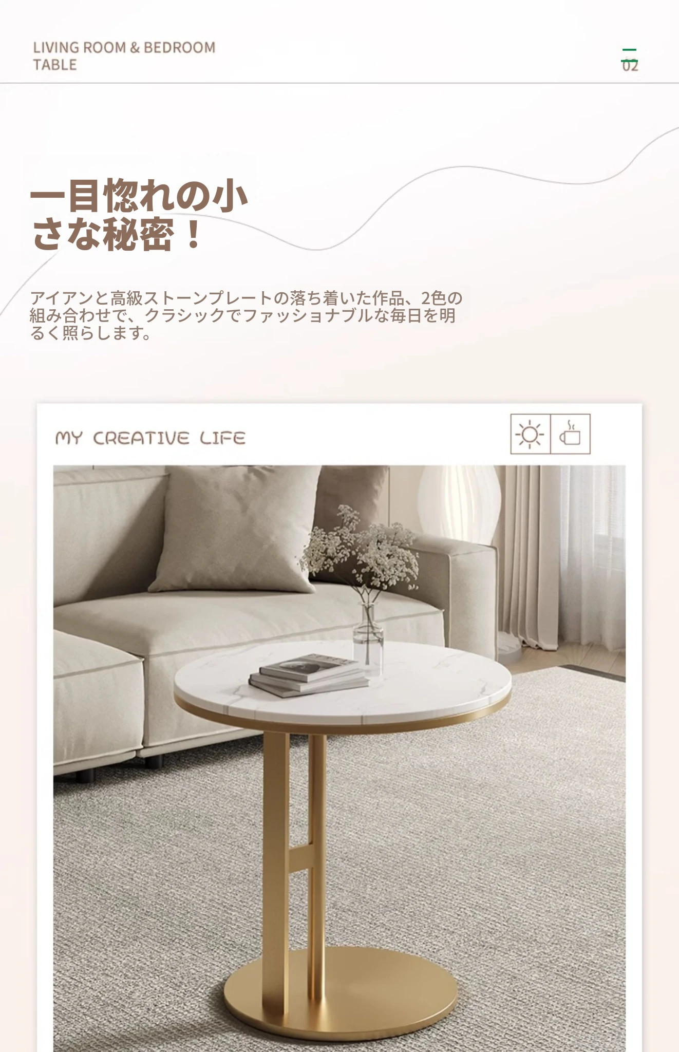軽やかな高級感のある円形サイドテーブル - モダンでシンプルなデザイン、リビングや寝室にぴったり!小さなスペースにも最適なクリエイティブなアイテムです。