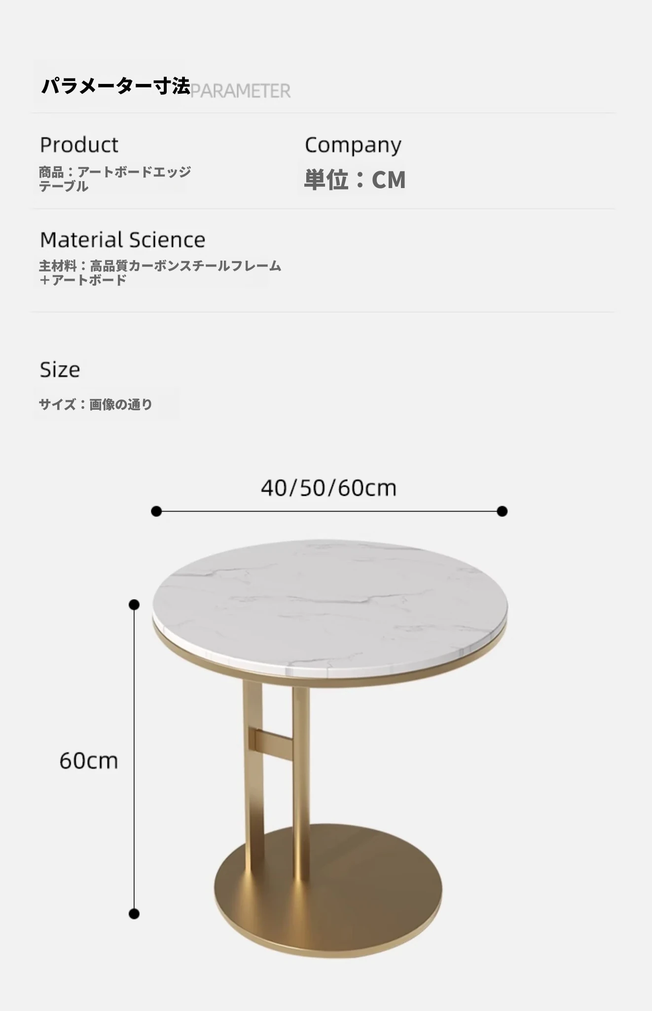 光沢-雪山ホワイトストーンプレート+金フレーム【安定性アップグレード】60直径