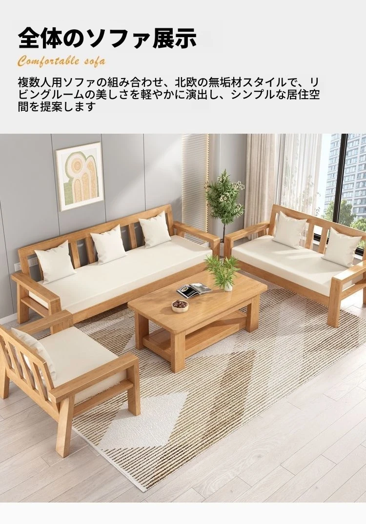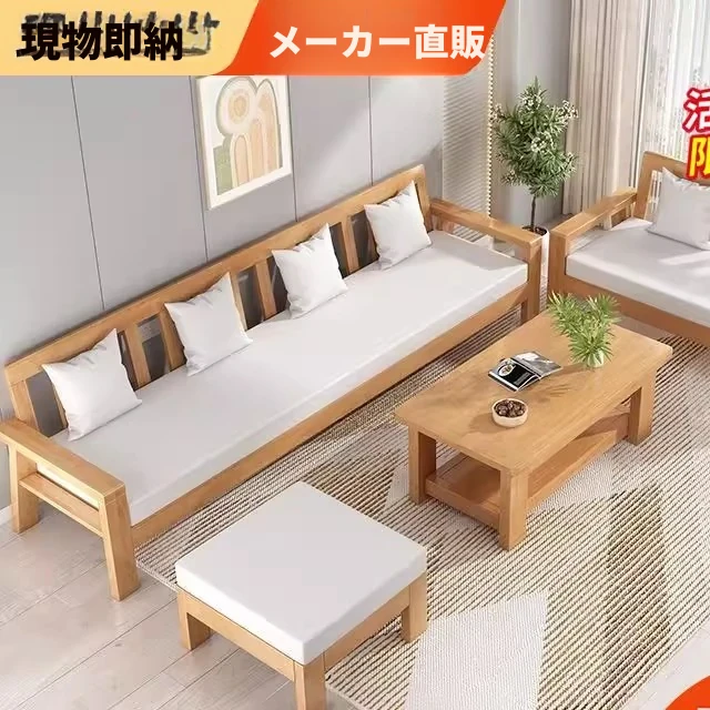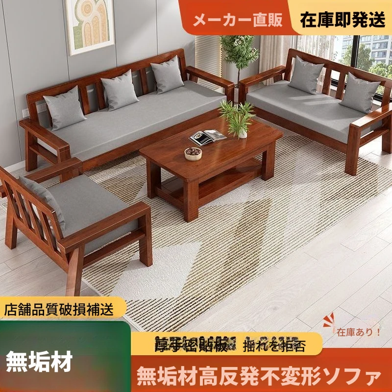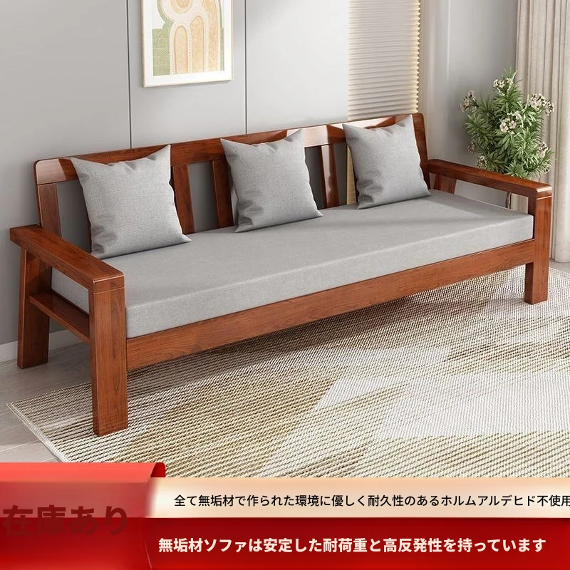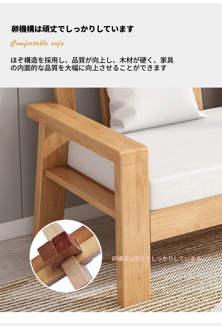 中式現代風実木ソファセット|布製・ゴムの木使用|経済的でシンプルなデザイン|小さなお部屋にもぴったりなリビング家具