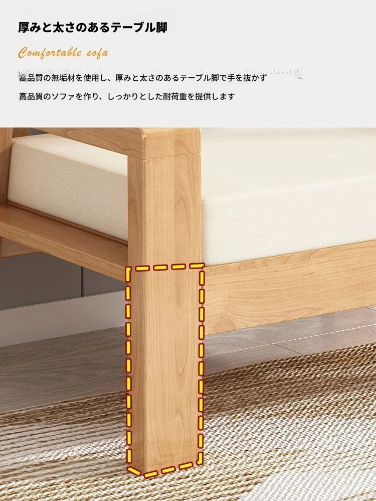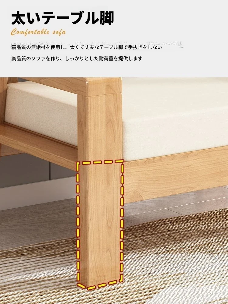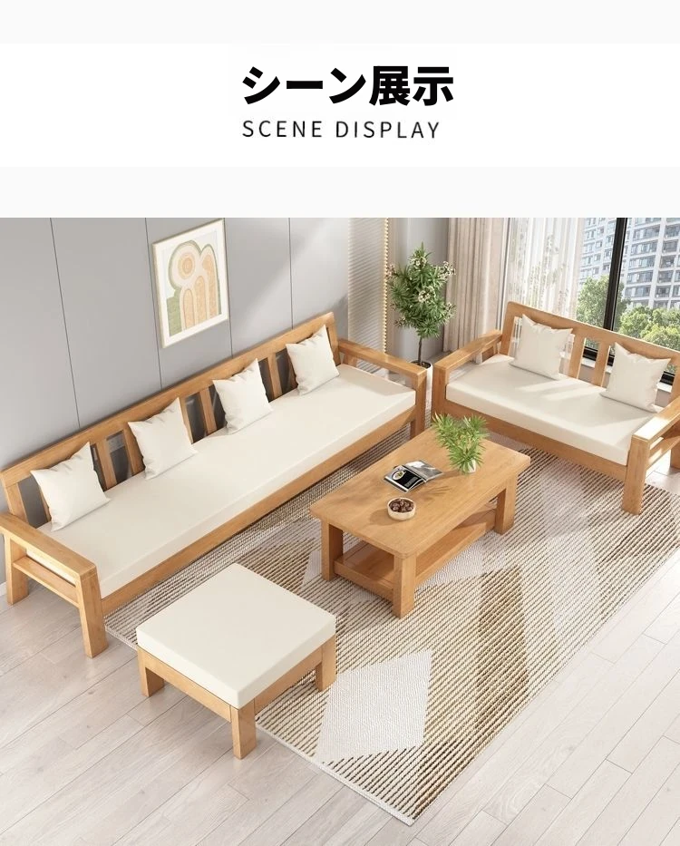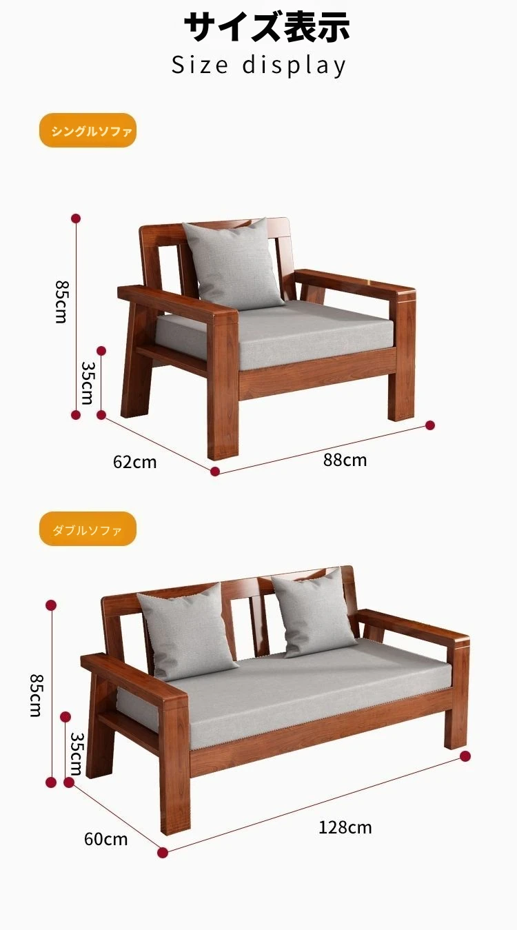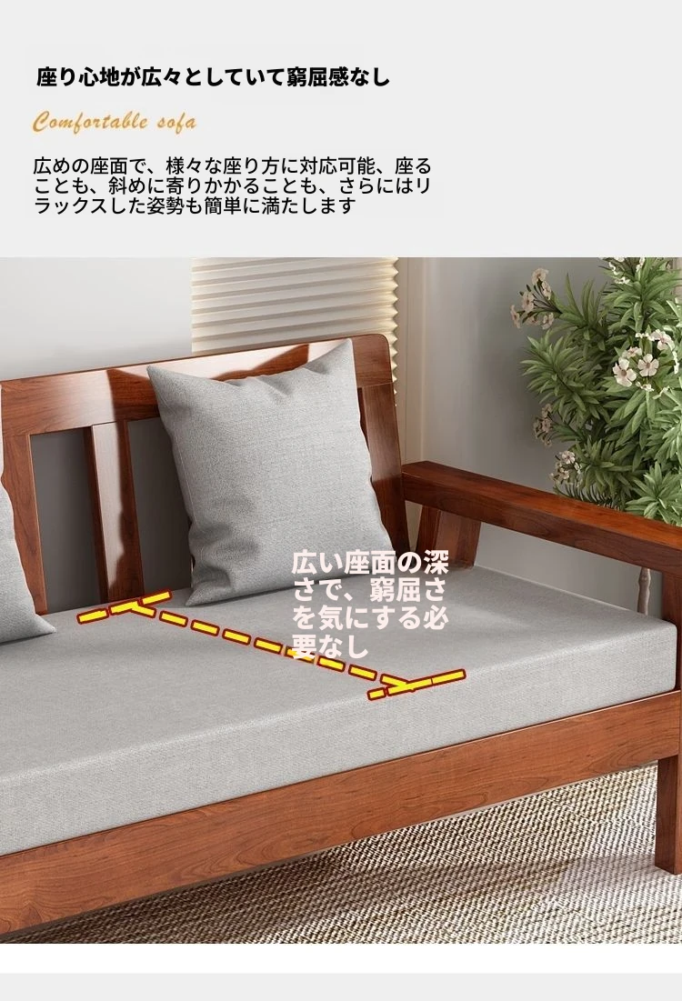 中式現代風実木ソファセット|布製・ゴムの木使用|経済的でシンプルなデザイン|小さなお部屋にもぴったりなリビング家具