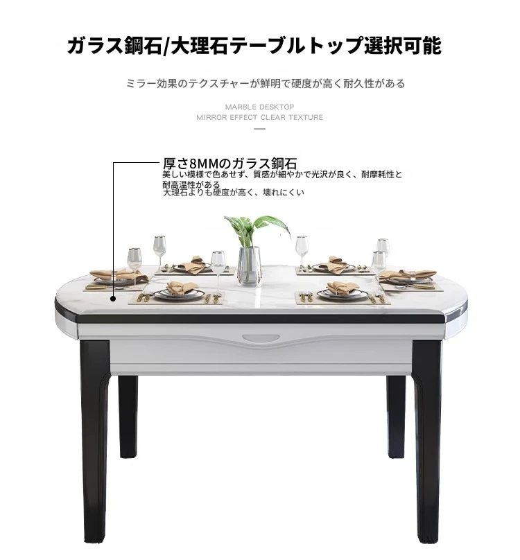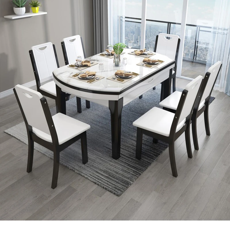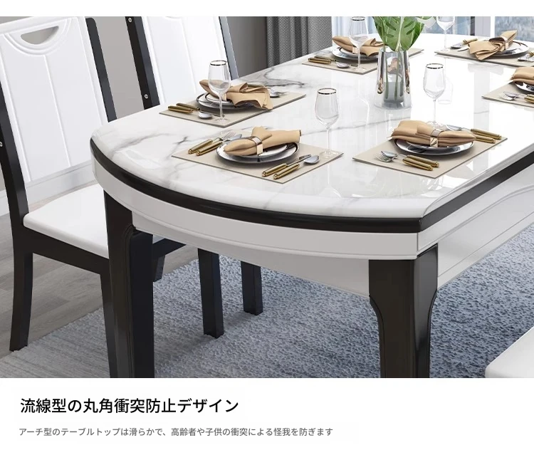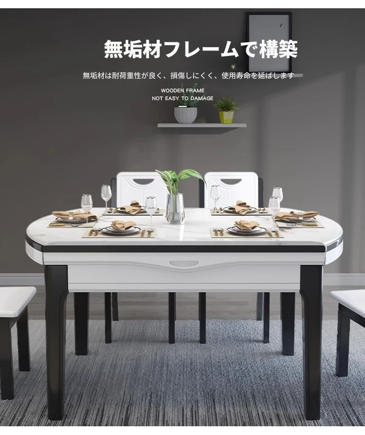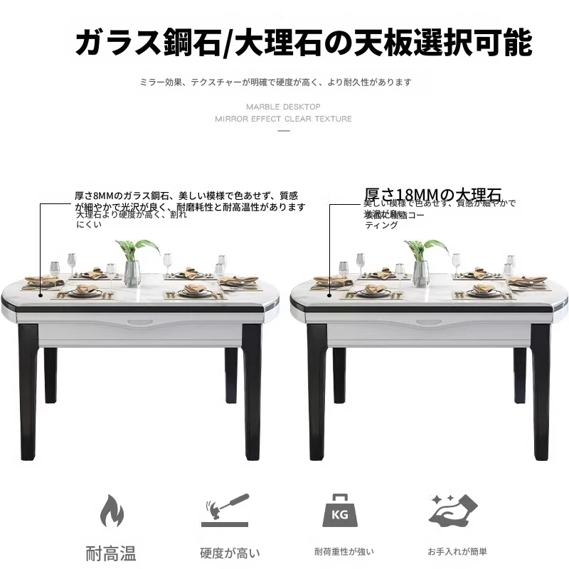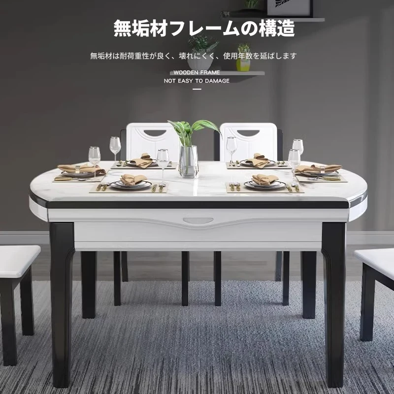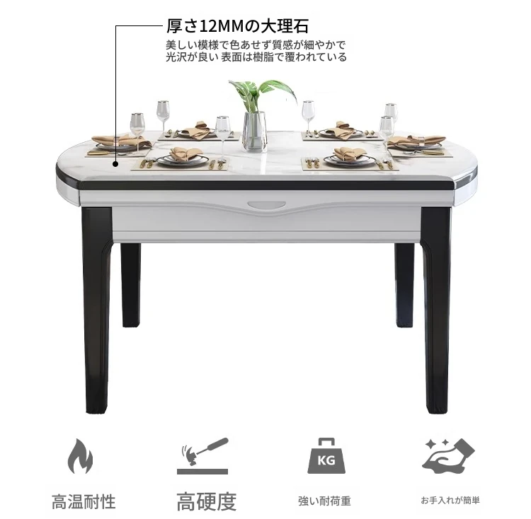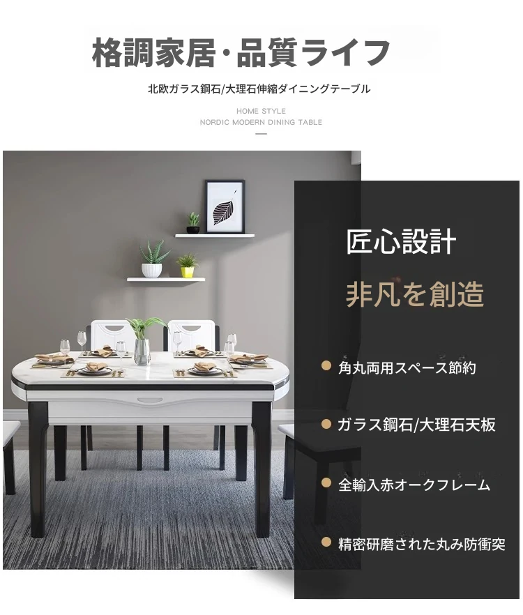 モダンでシンプルな大理石製の伸縮可能な折りたたみ円形テーブル。実木製のダイニングテーブルとチェアのセットは、小さなお部屋にもぴったり!家族や友人との楽しい食事の時間を演出します。