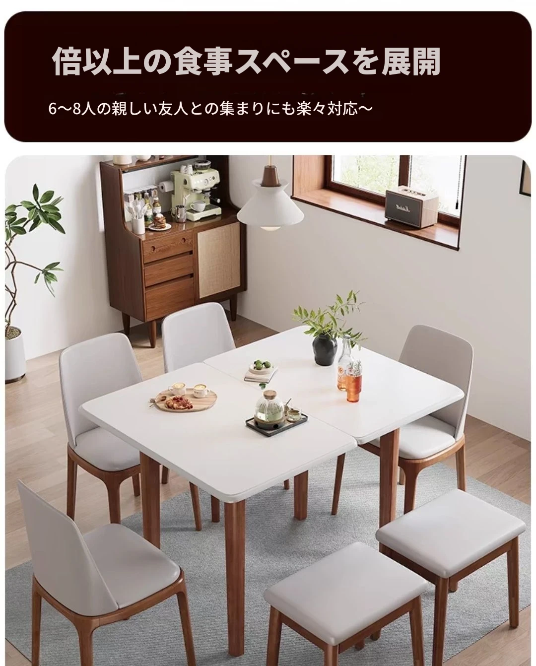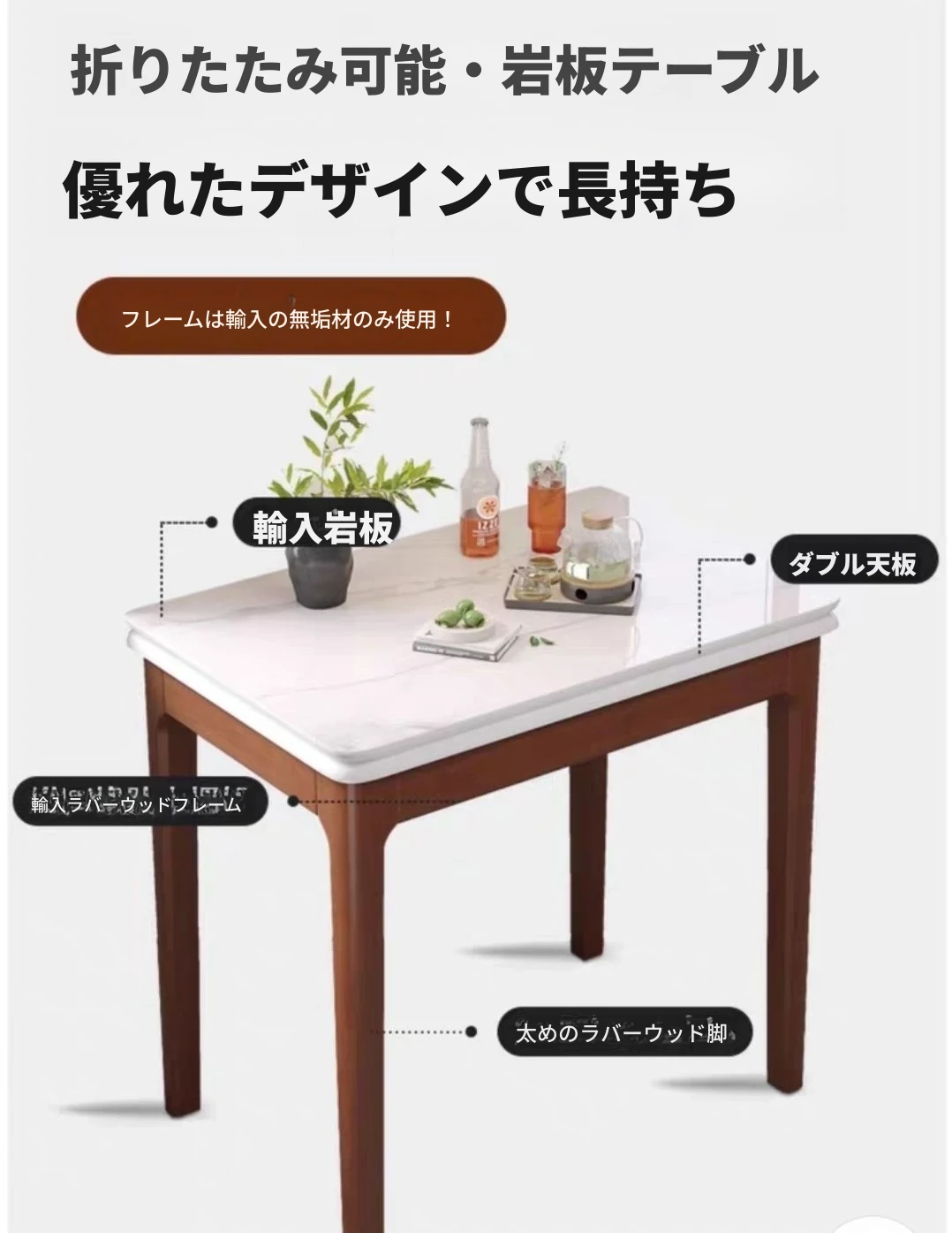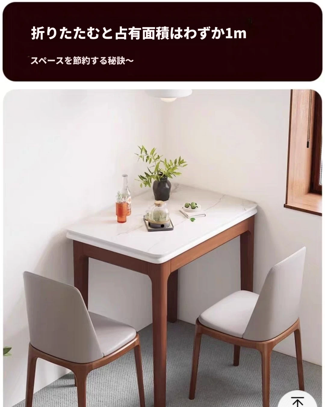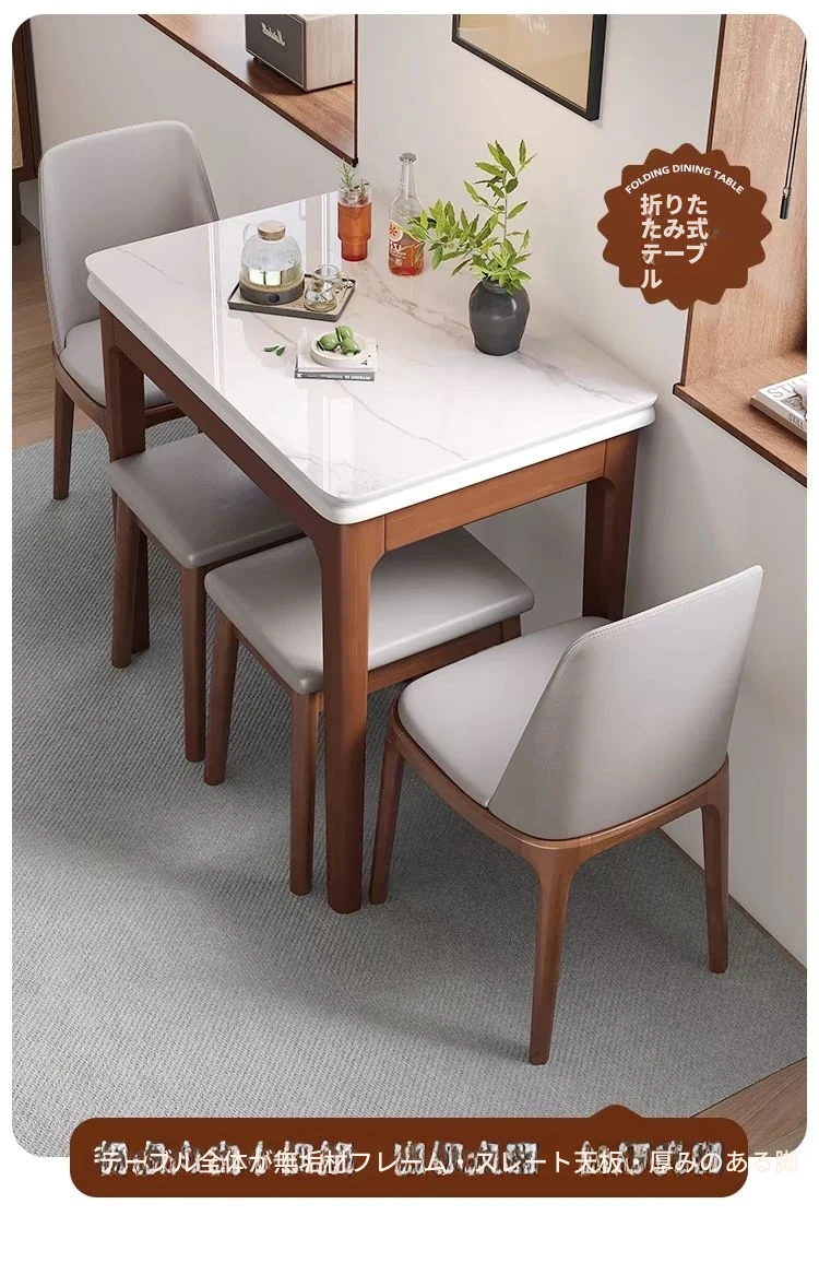 折りたたみ式の岩板ダイニングテーブル|小さな家にぴったりの実木製|現代的でスタイリッシュな伸縮式テーブル&チェアセット|シンプルで使いやすいコンビネーション!