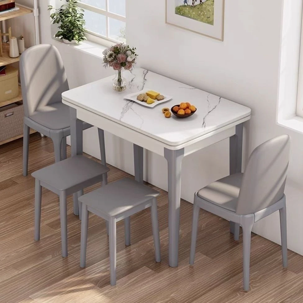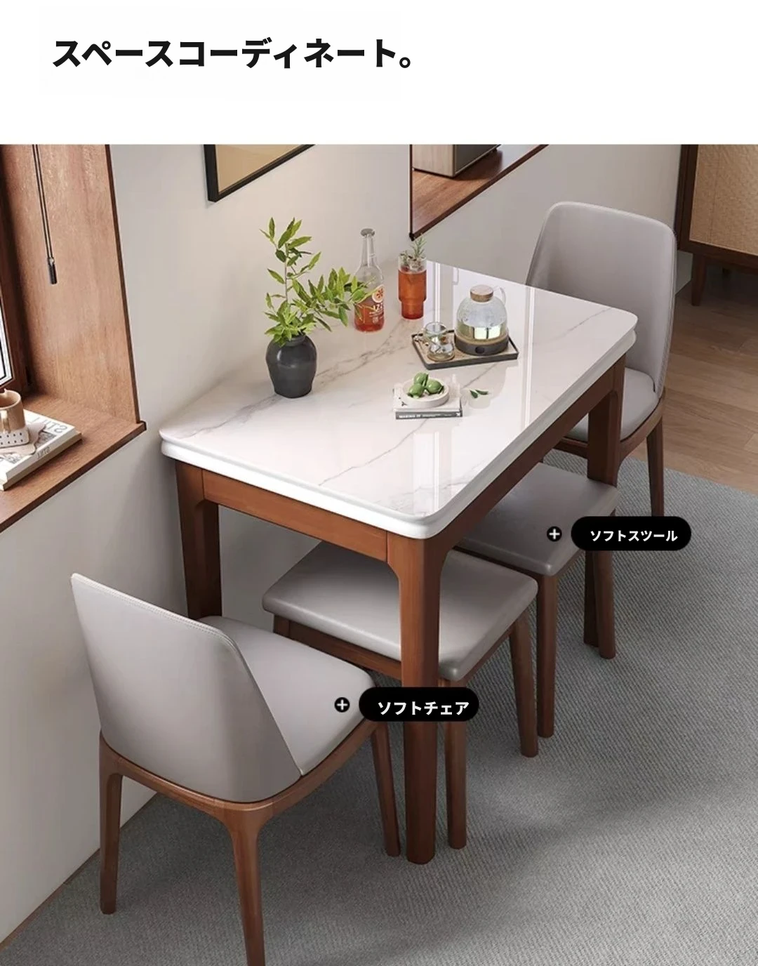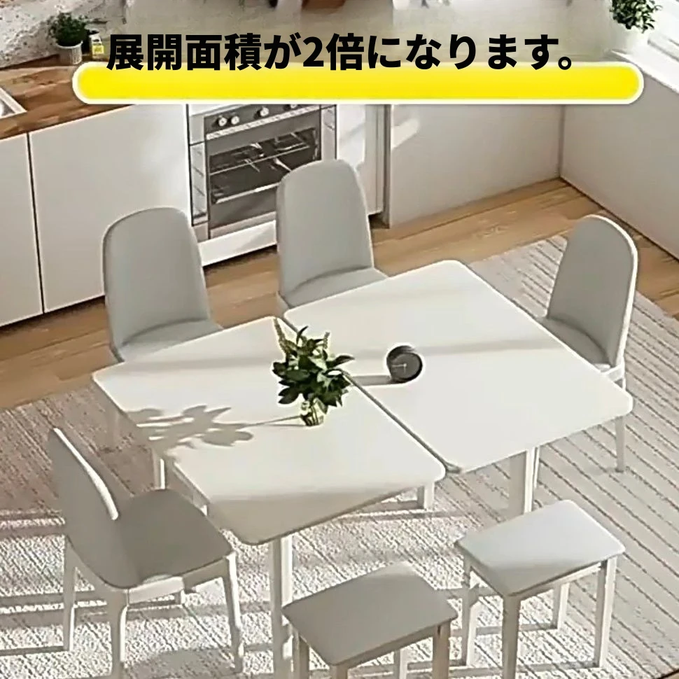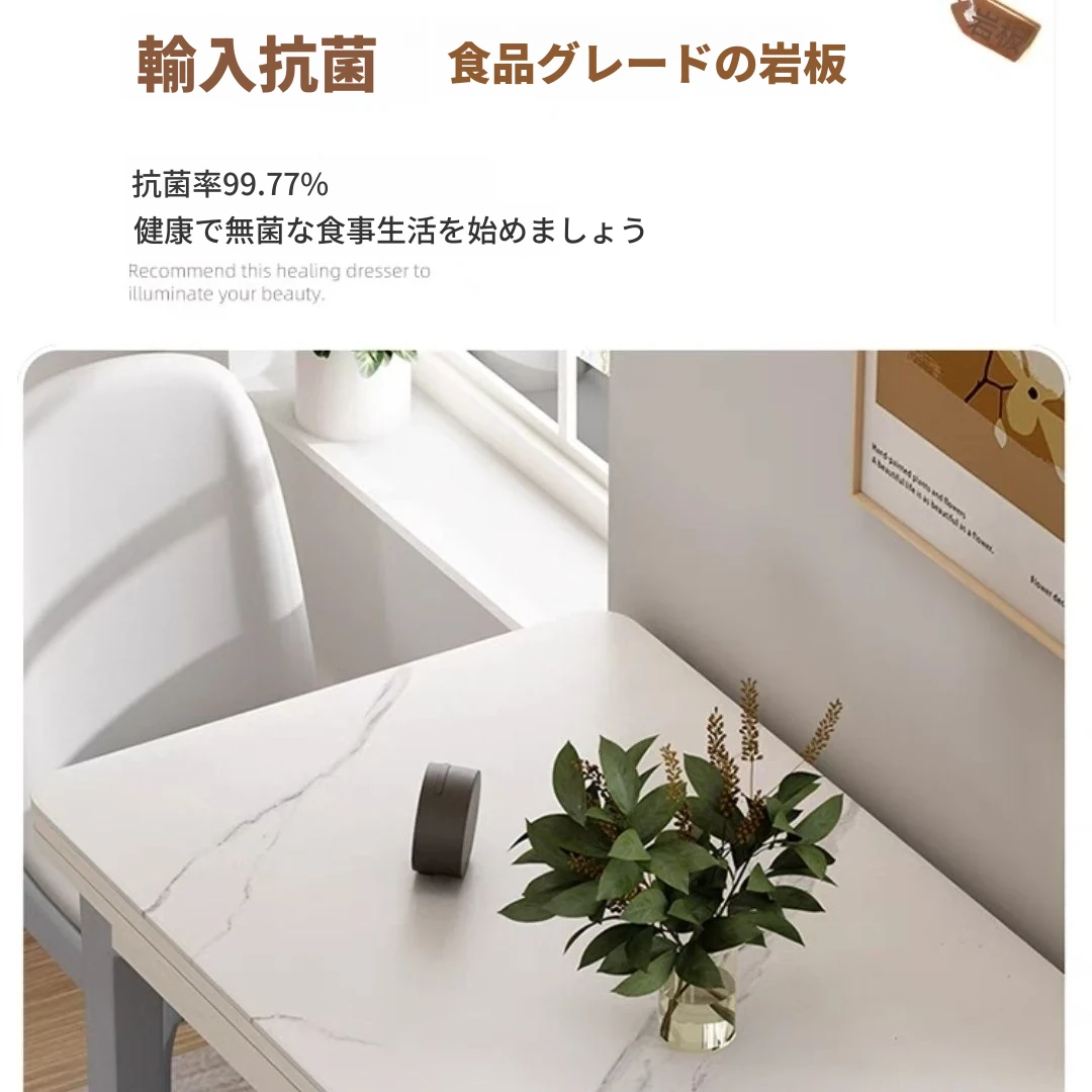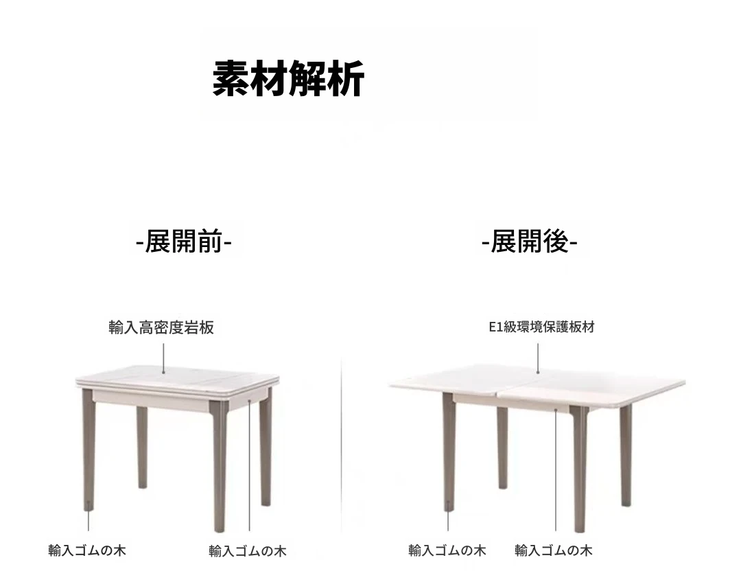 折りたたみ式の岩板ダイニングテーブル|小さな家にぴったりの実木製|現代的でスタイリッシュな伸縮式テーブル&チェアセット|シンプルで使いやすいコンビネーション!
