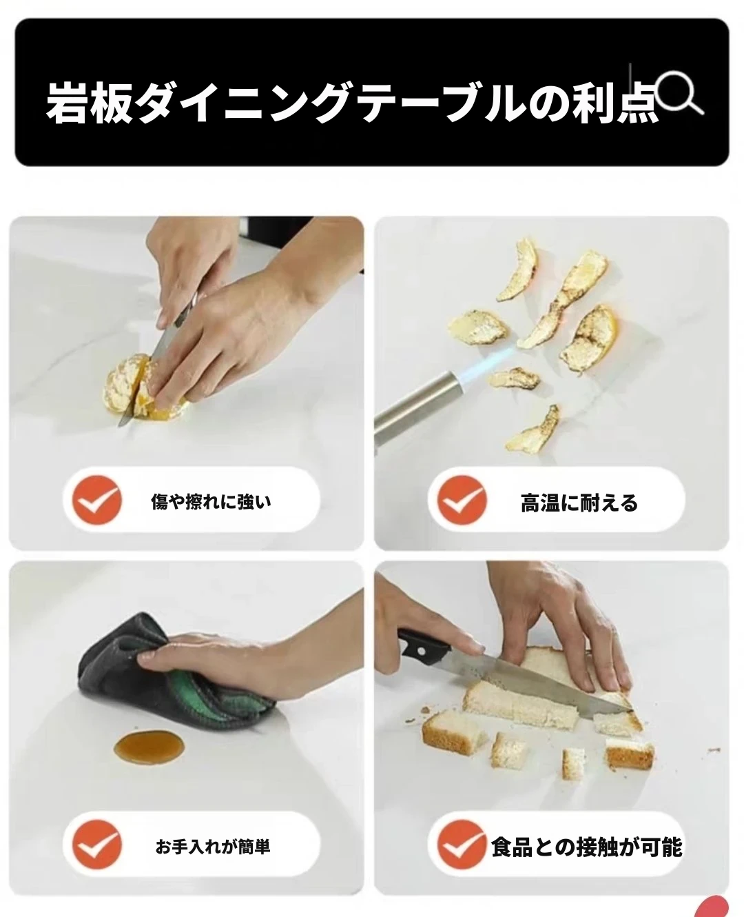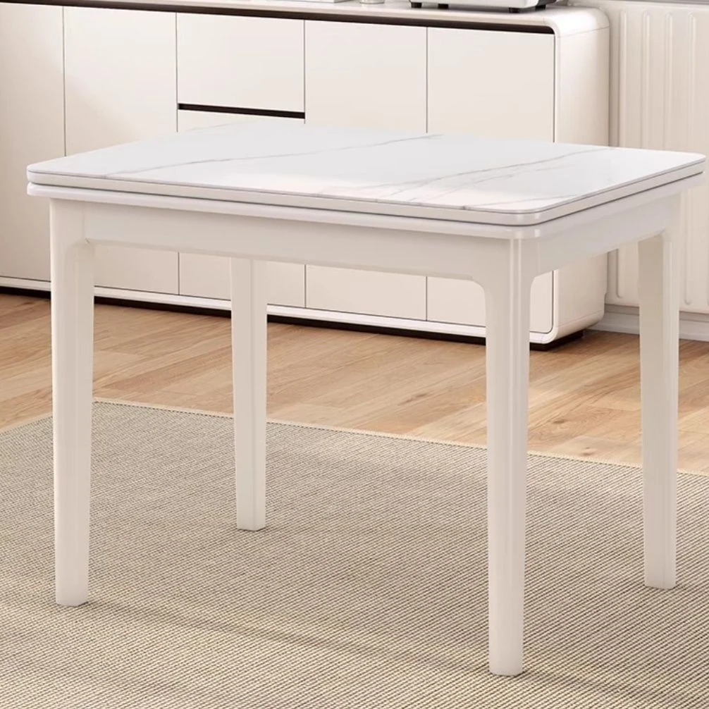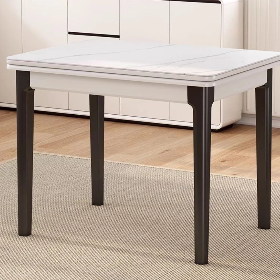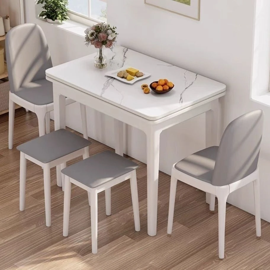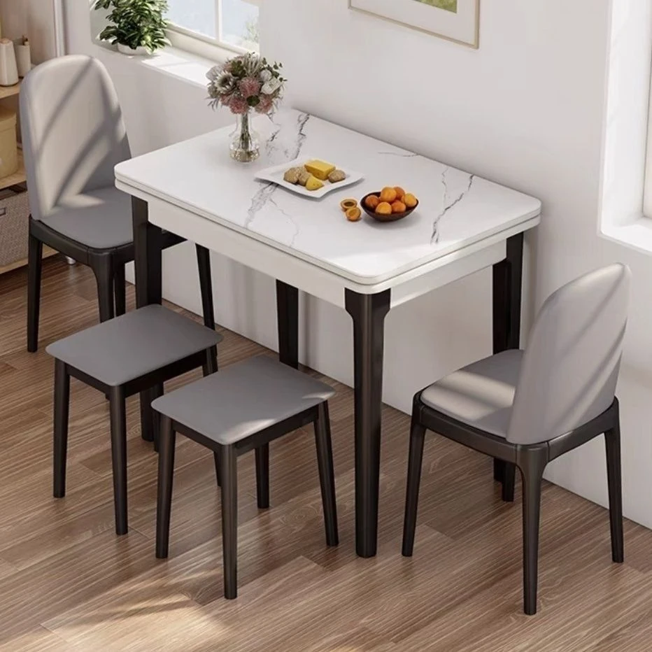 折りたたみ式の岩板ダイニングテーブル|小さな家にぴったりの実木製|現代的でスタイリッシュな伸縮式テーブル&チェアセット|シンプルで使いやすいコンビネーション!