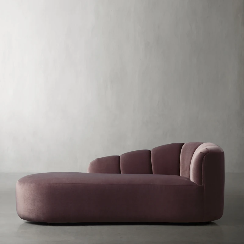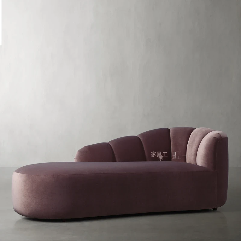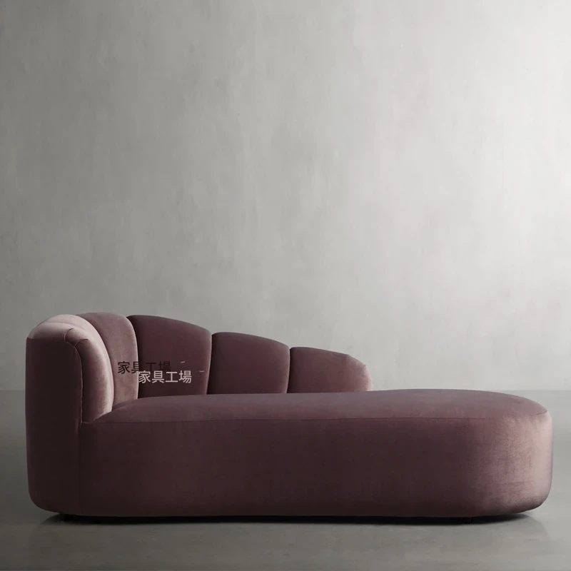 イタリアンスタイルの布製リビングルーム用アーチ型ダブルシェーズロング、モダンでトレンディなデザインの異形ソファチェア、リラックスできる商業用ラウンジチェア!おしゃれなあなたにぴったりです!