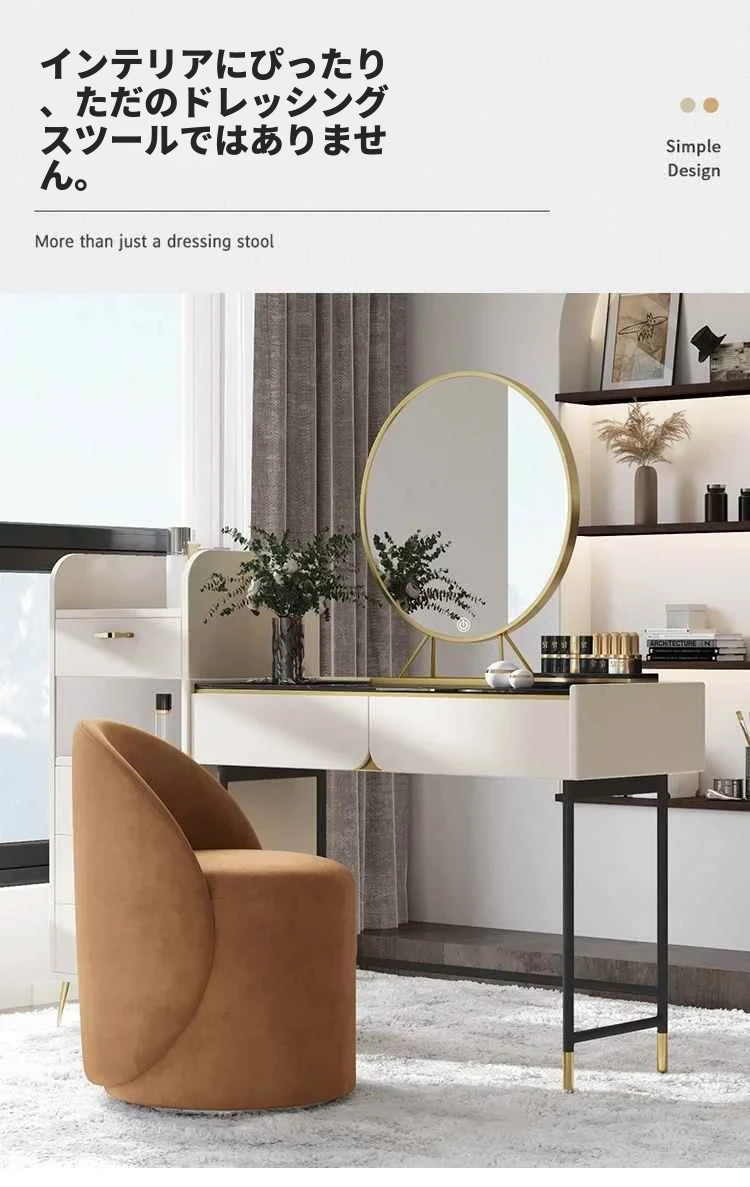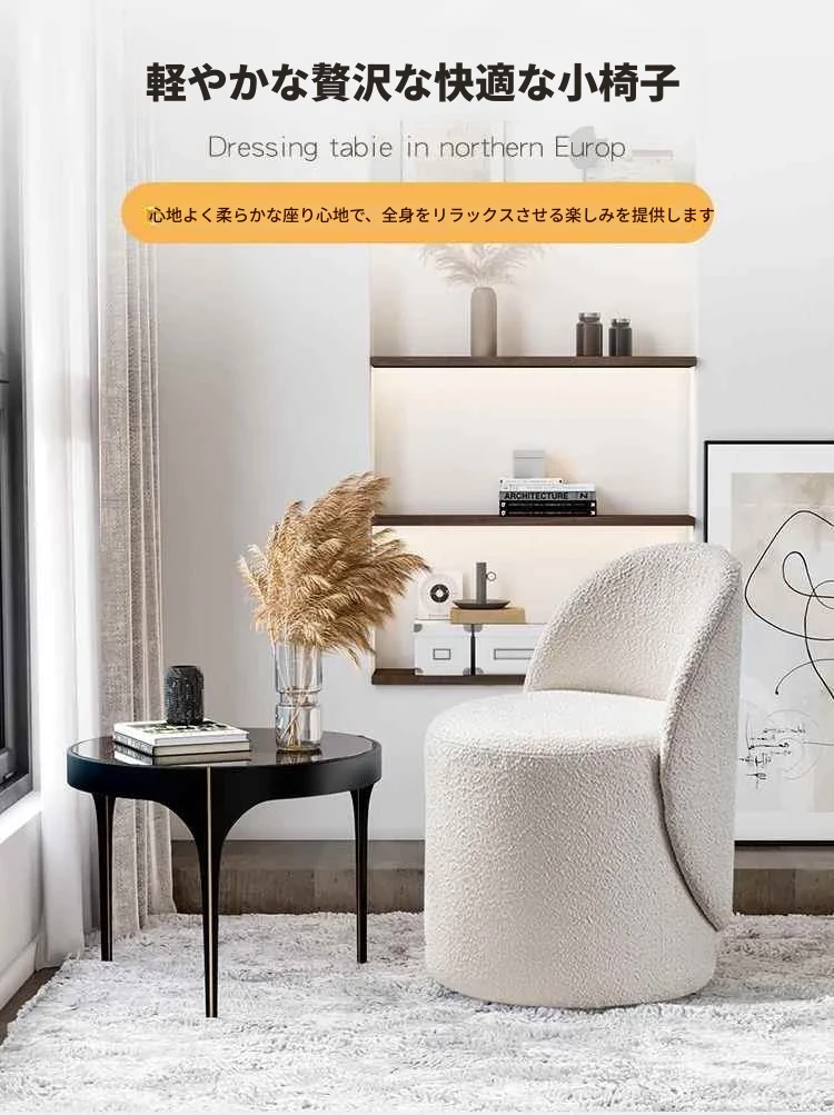 モダンで洗練された軽奢スタイルの化粧台用椅子!背もたれ付きで快適さ抜群、インスタ映えするデザイン。自宅でのメイクアップタイムを特別に演出します。あなたの寝室にぴったりのアイテムです!