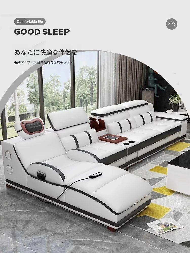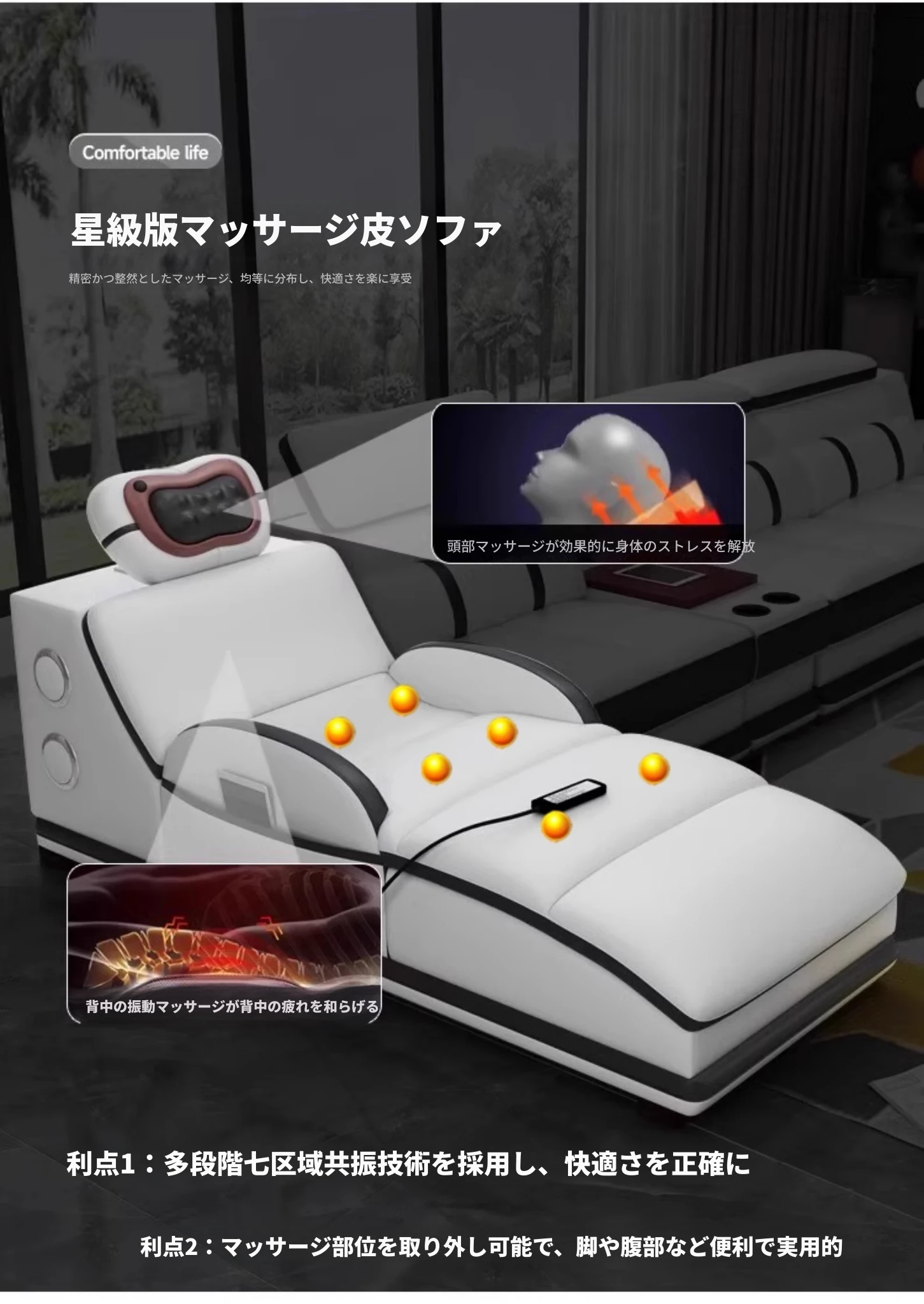 本革製モダンミニマリストソファ、機能的マッサージ付き、ラグジュアリーなイタリアントップレザー、小型リビングにも最適!2025年新作、快適なひとときをお届けします。