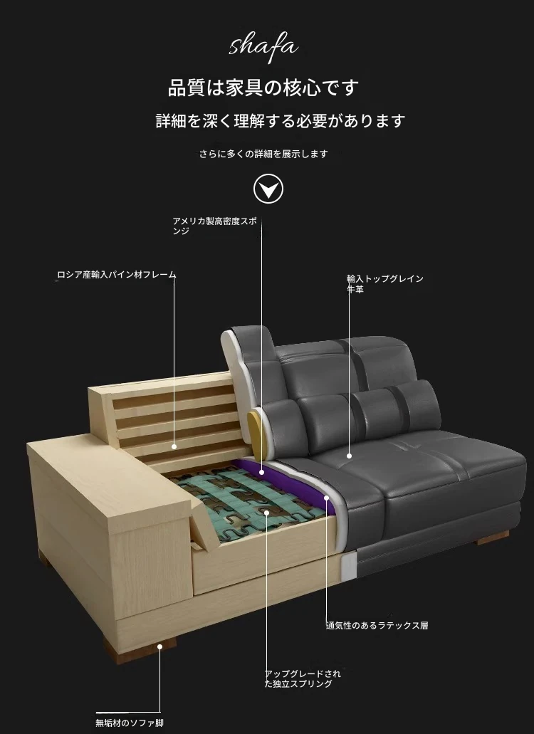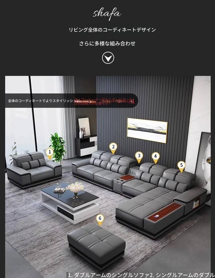 本革製モダンミニマリストソファセット - 高級なトップグレインレザー使用、リビングルームに最適なスタイルと快適さを兼ね備えた、大小様々な部屋にぴったりのソファです!
