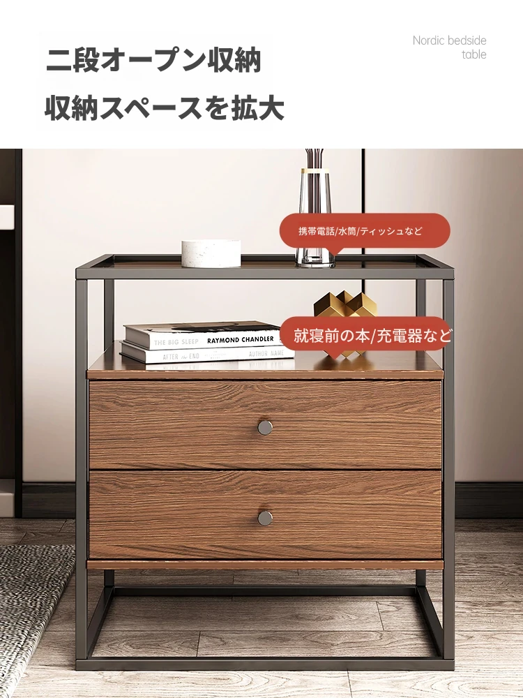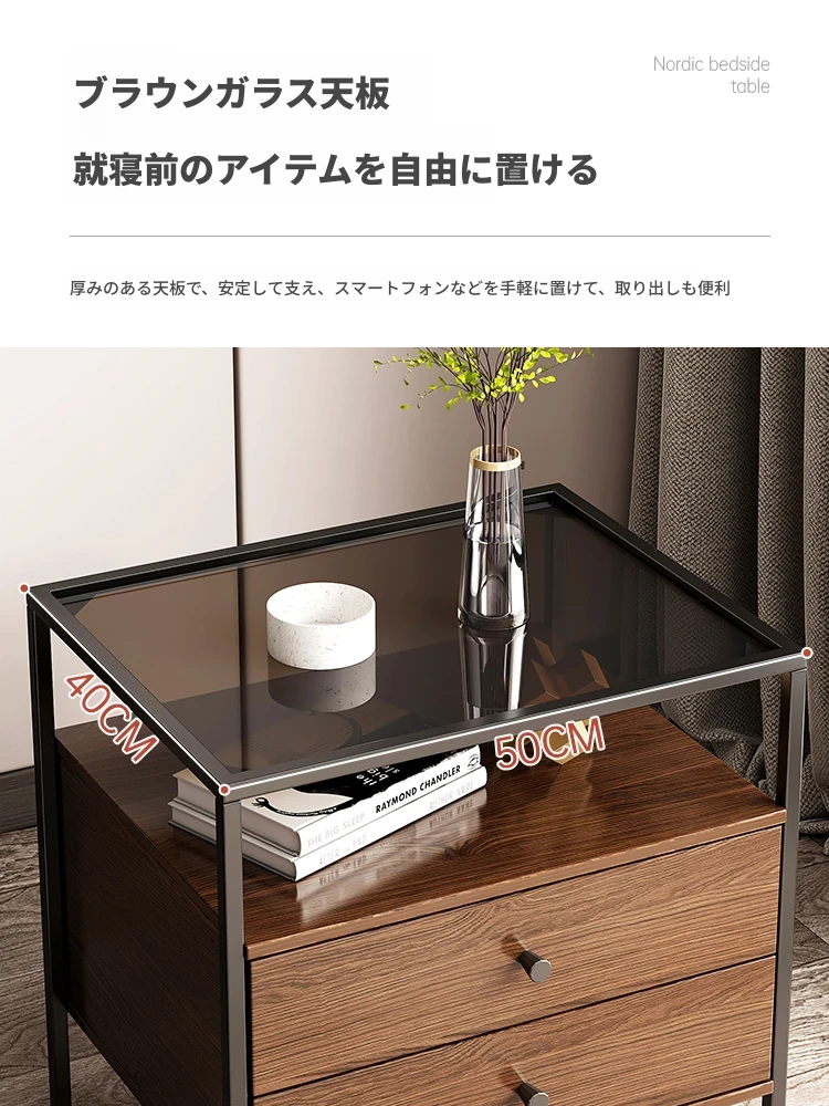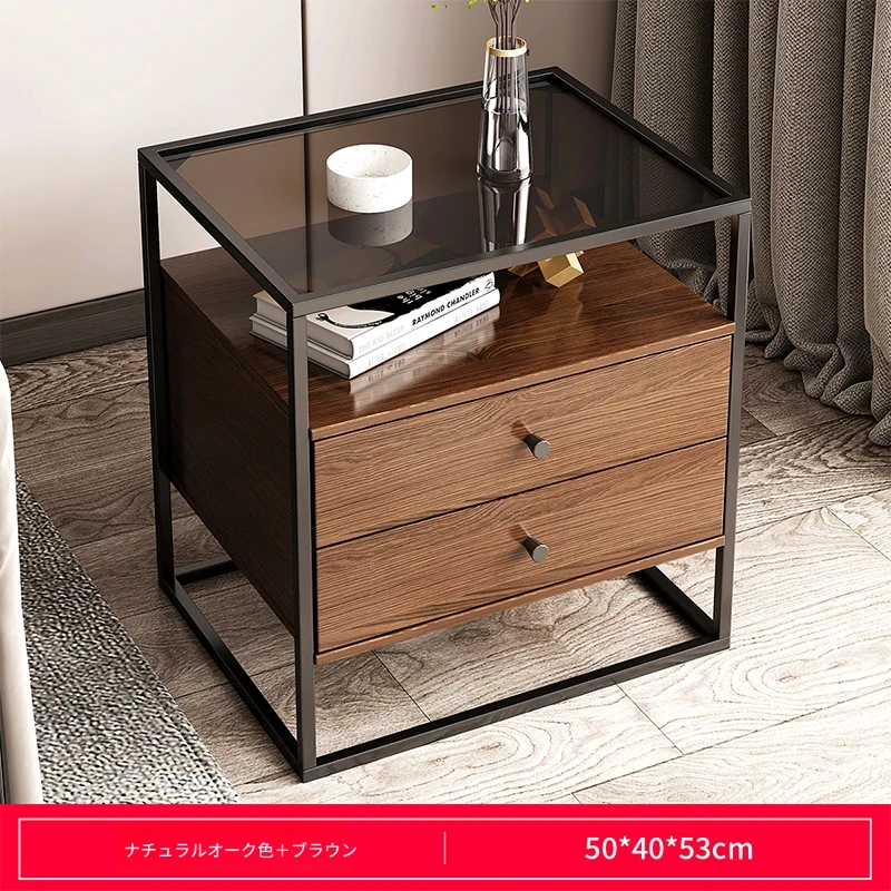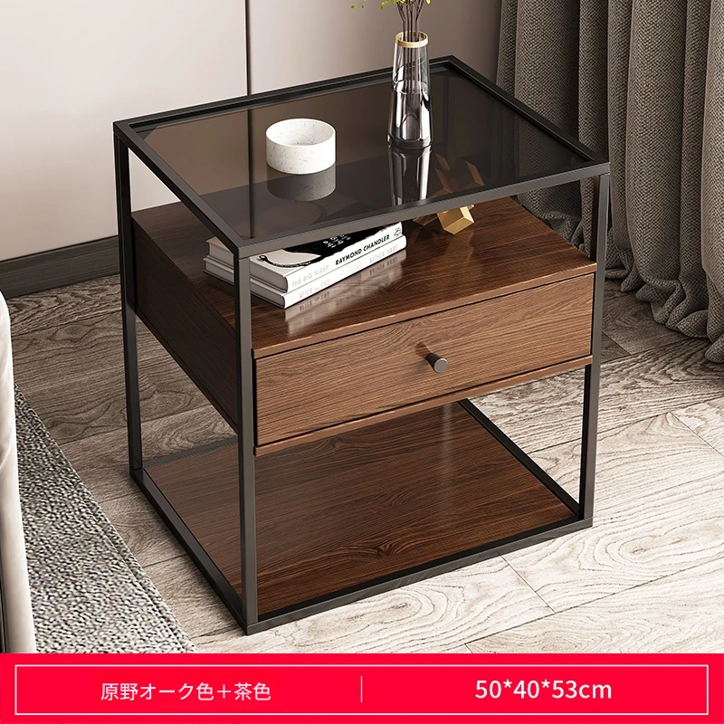 アイアン製ナイトスタンド 家庭用 寝室用 シンプルモダン ガラスベッドサイド 小型サイドテーブル 2023年新作 ラグジュアリー感あふれるデザインで、あなたの寝室をスタイリッシュに演出します。