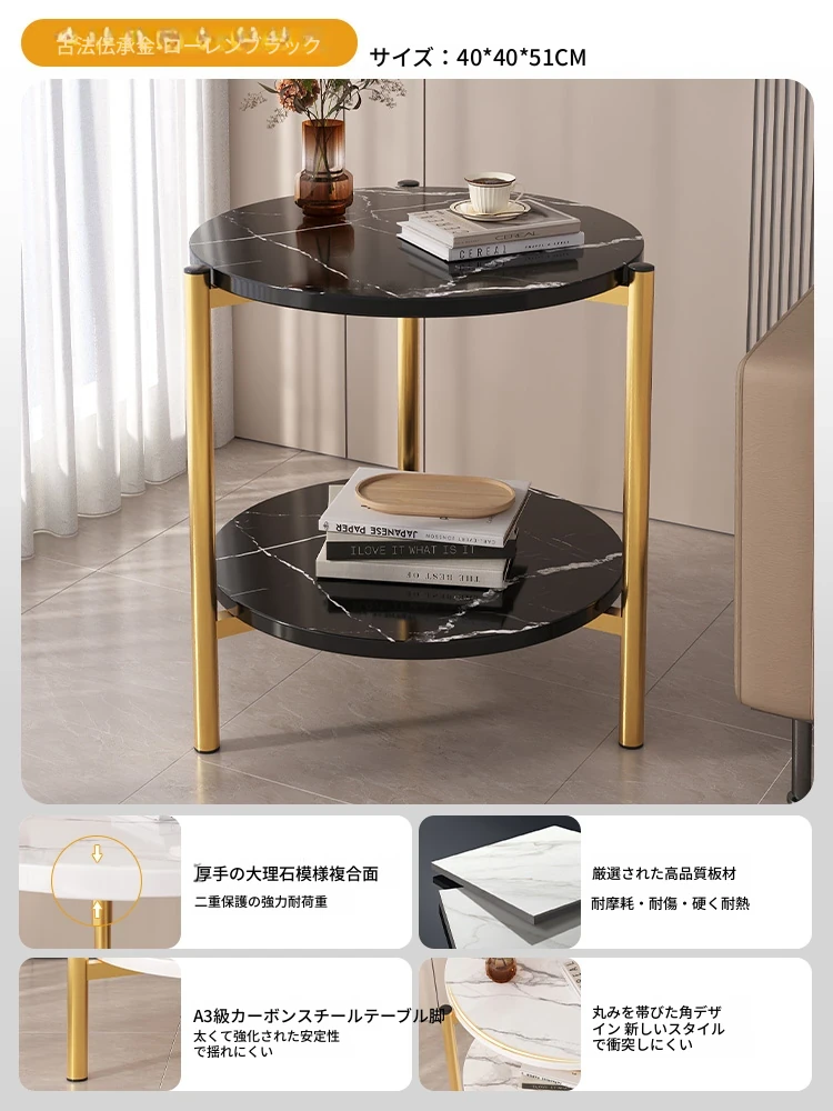 【品質アップ】ローレンブラック+ゴールドフレーム40*40*51