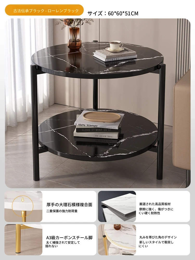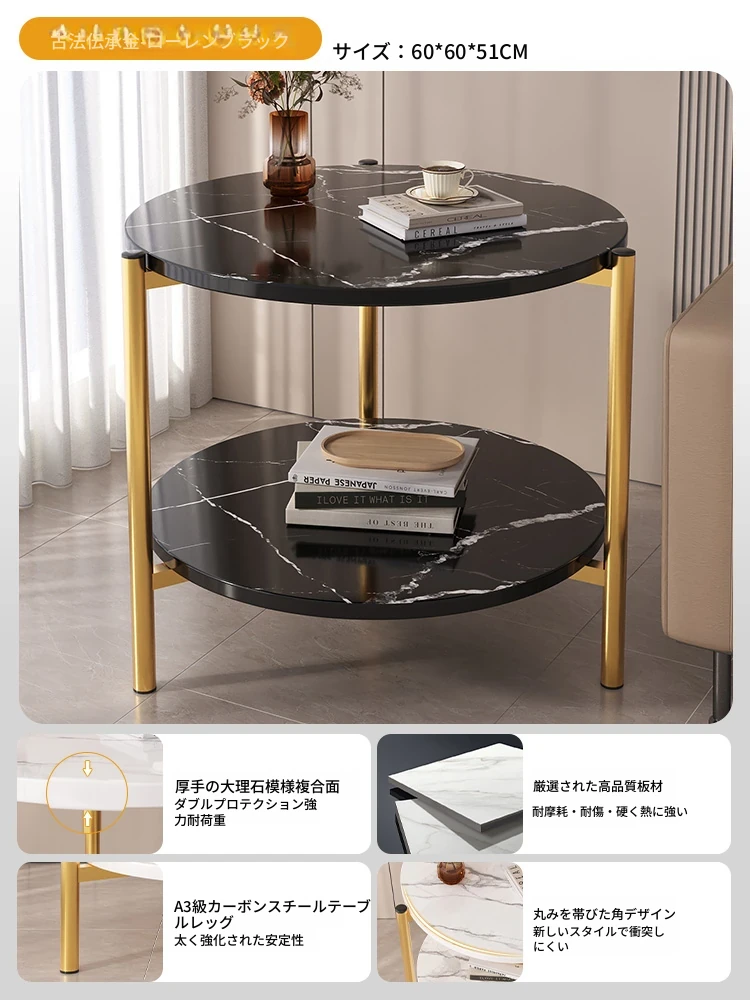 【品質アップ】ローレンブラック+ゴールドフレーム60*60*51
