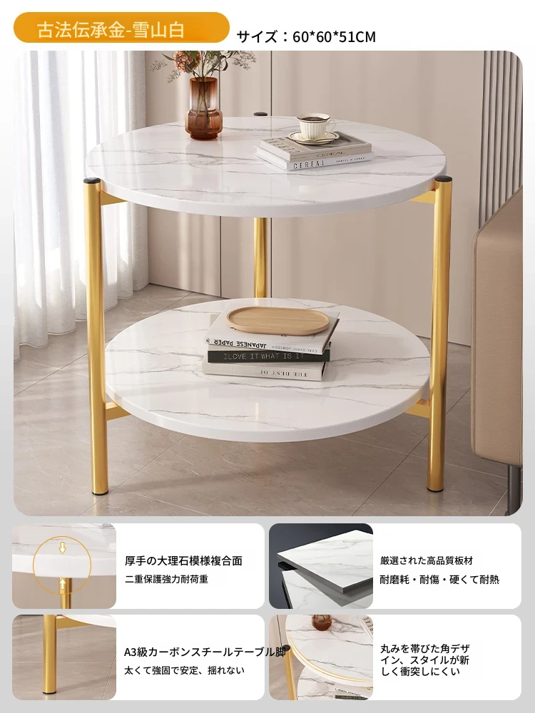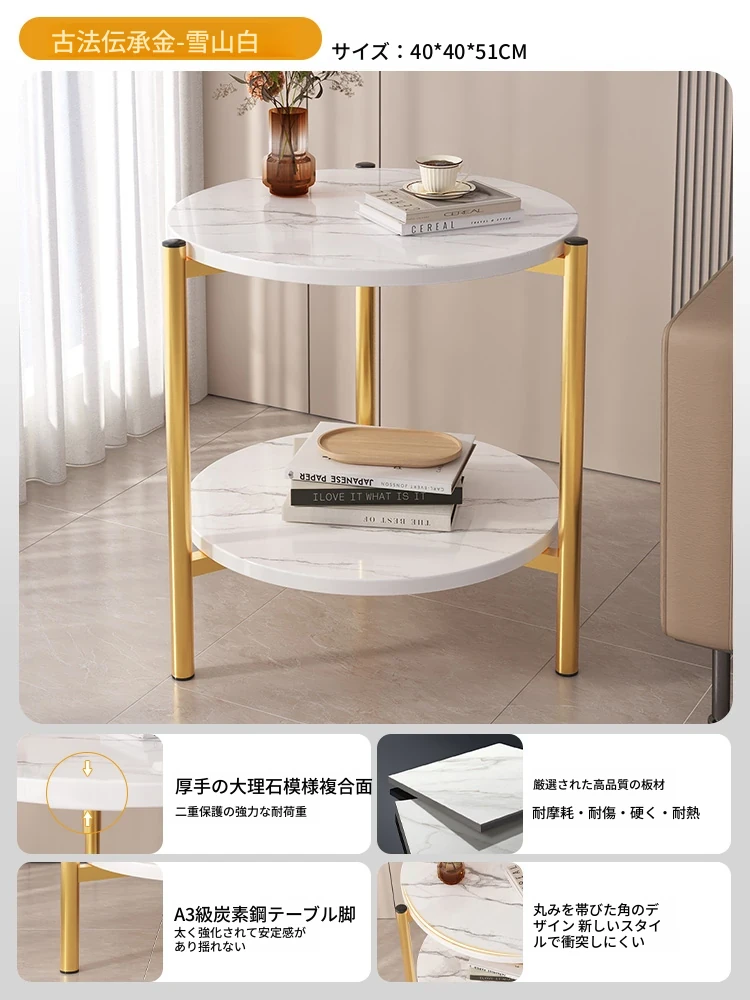 【品質アップ】雪山ホワイト+ゴールドフレーム48*48*51