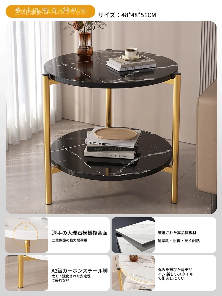 【品質アップ】ローレンブラック+ゴールドフレーム48*48*51