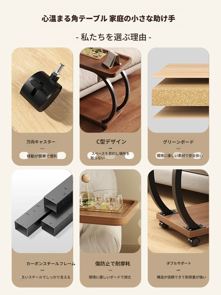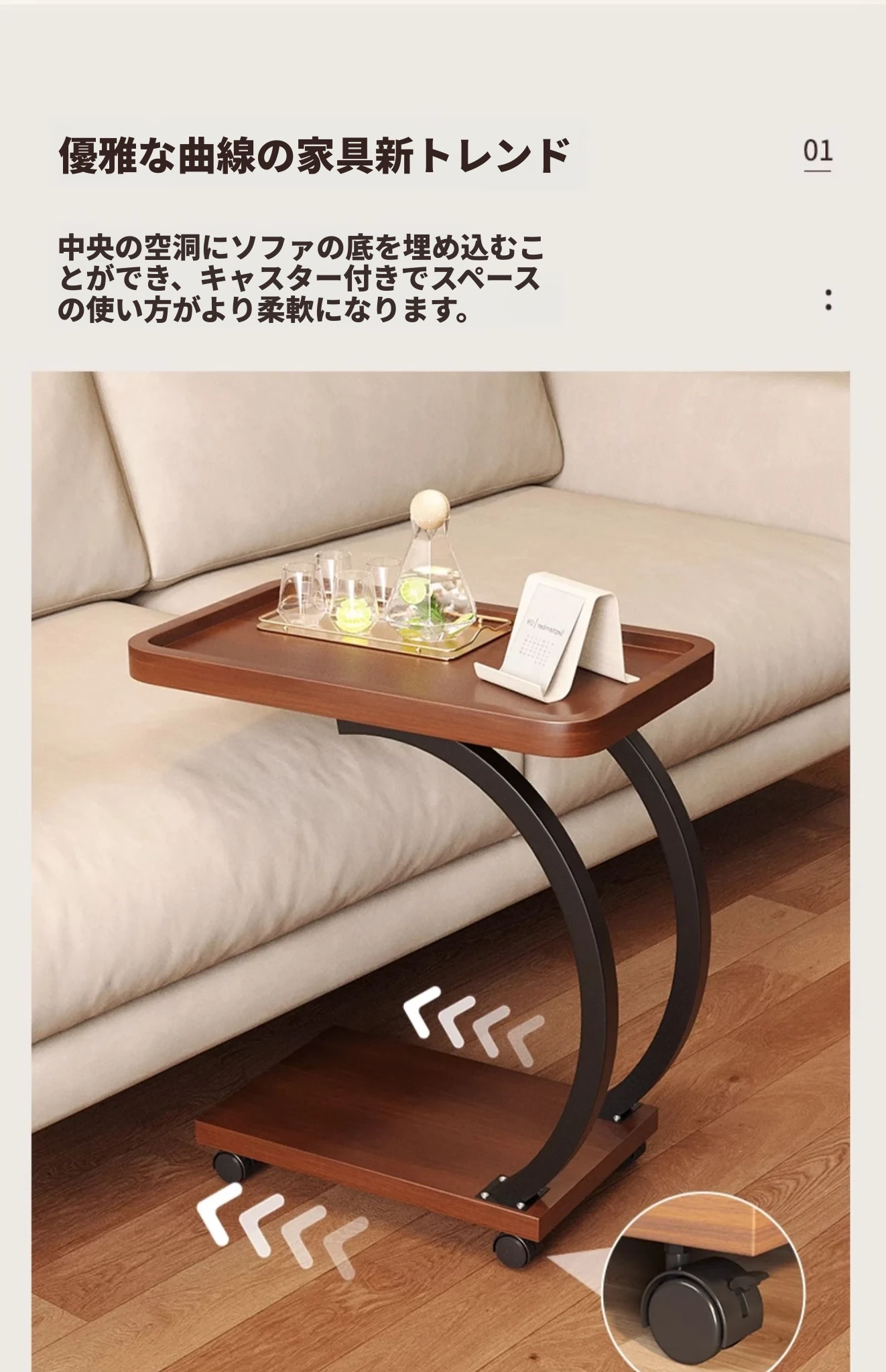 モダンでシンプルな軽奢スタイルのサイドテーブル兼コーヒーテーブル、キャスター付きで移動もラクラク!リビングにぴったりな創造的なソファサイド収納ラック。おしゃれな空間を演出します!