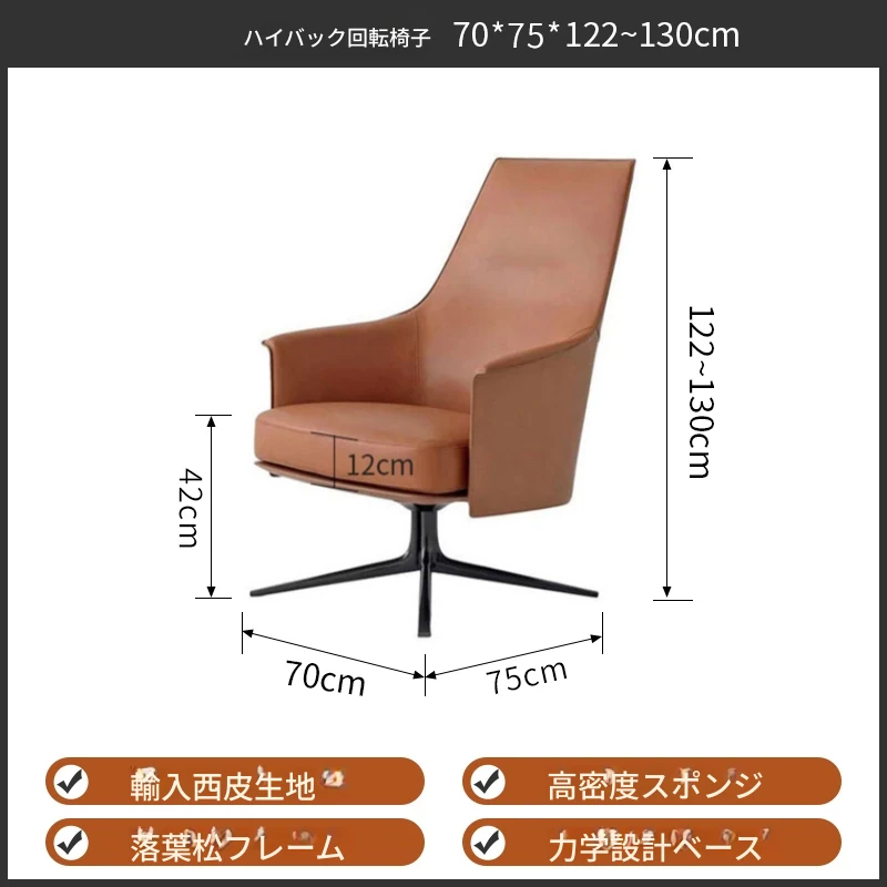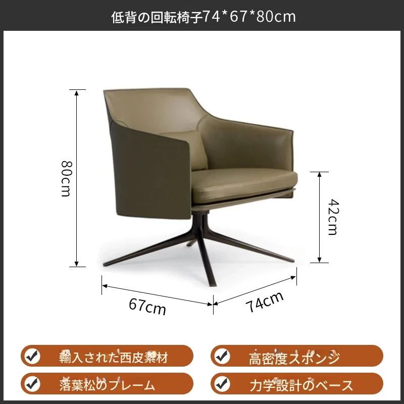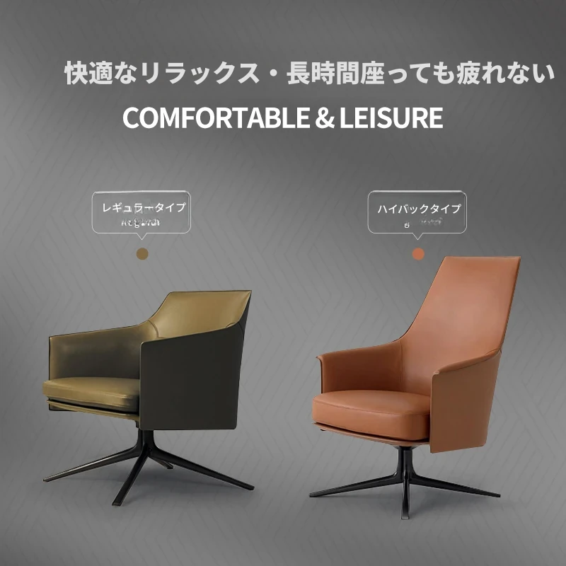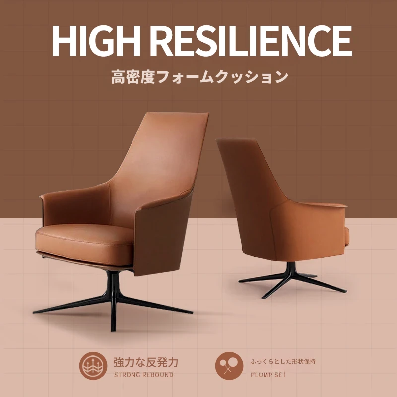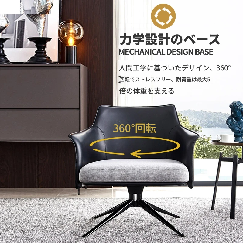 モダンでシンプルなデザインの一人用ソファチェア - 高級感溢れるレザー回転椅子。ホテルやクラブ、販売オフィスの受付や打ち合わせエリアに最適!快適さとスタイルを兼ね備えたアイテムです。