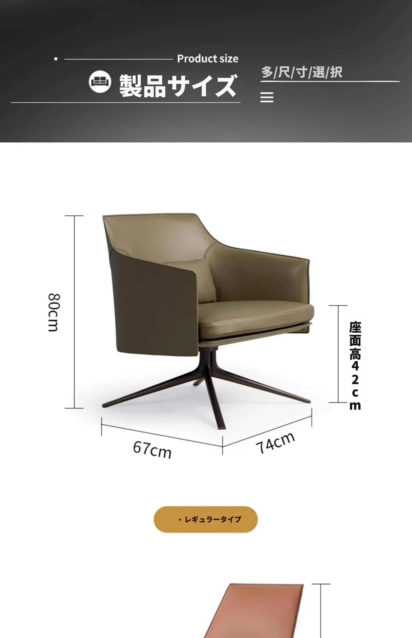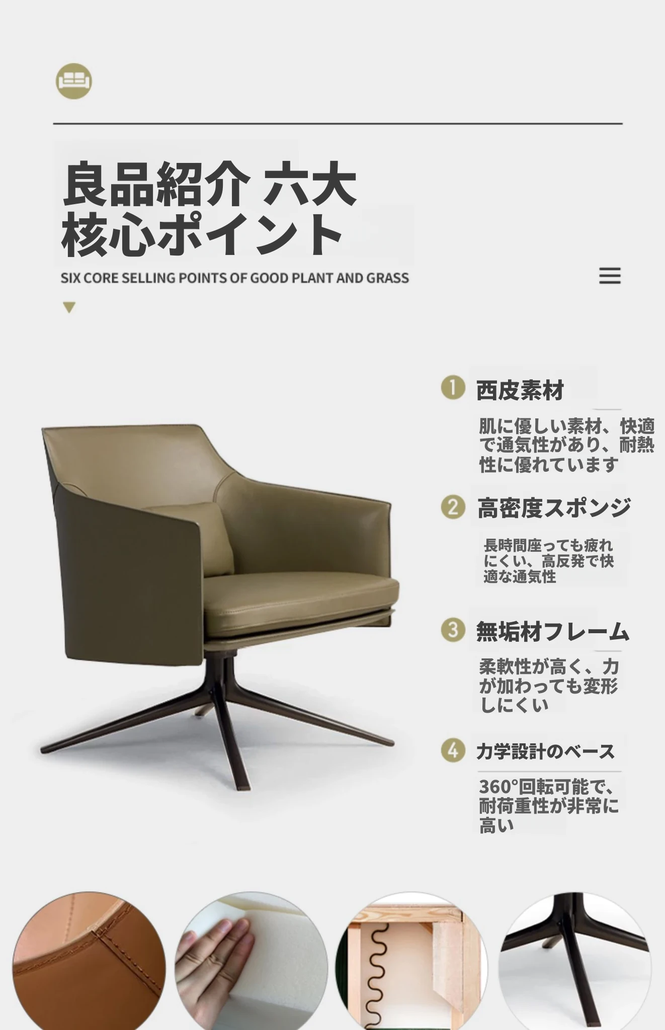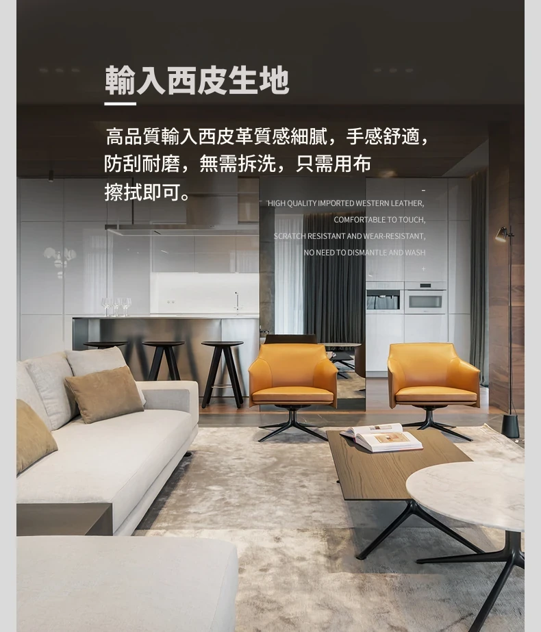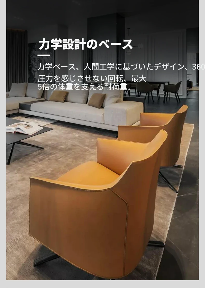 モダンでシンプルなデザインの一人用ソファチェア - 高級感溢れるレザー回転椅子。ホテルやクラブ、販売オフィスの受付や打ち合わせエリアに最適!快適さとスタイルを兼ね備えたアイテムです。