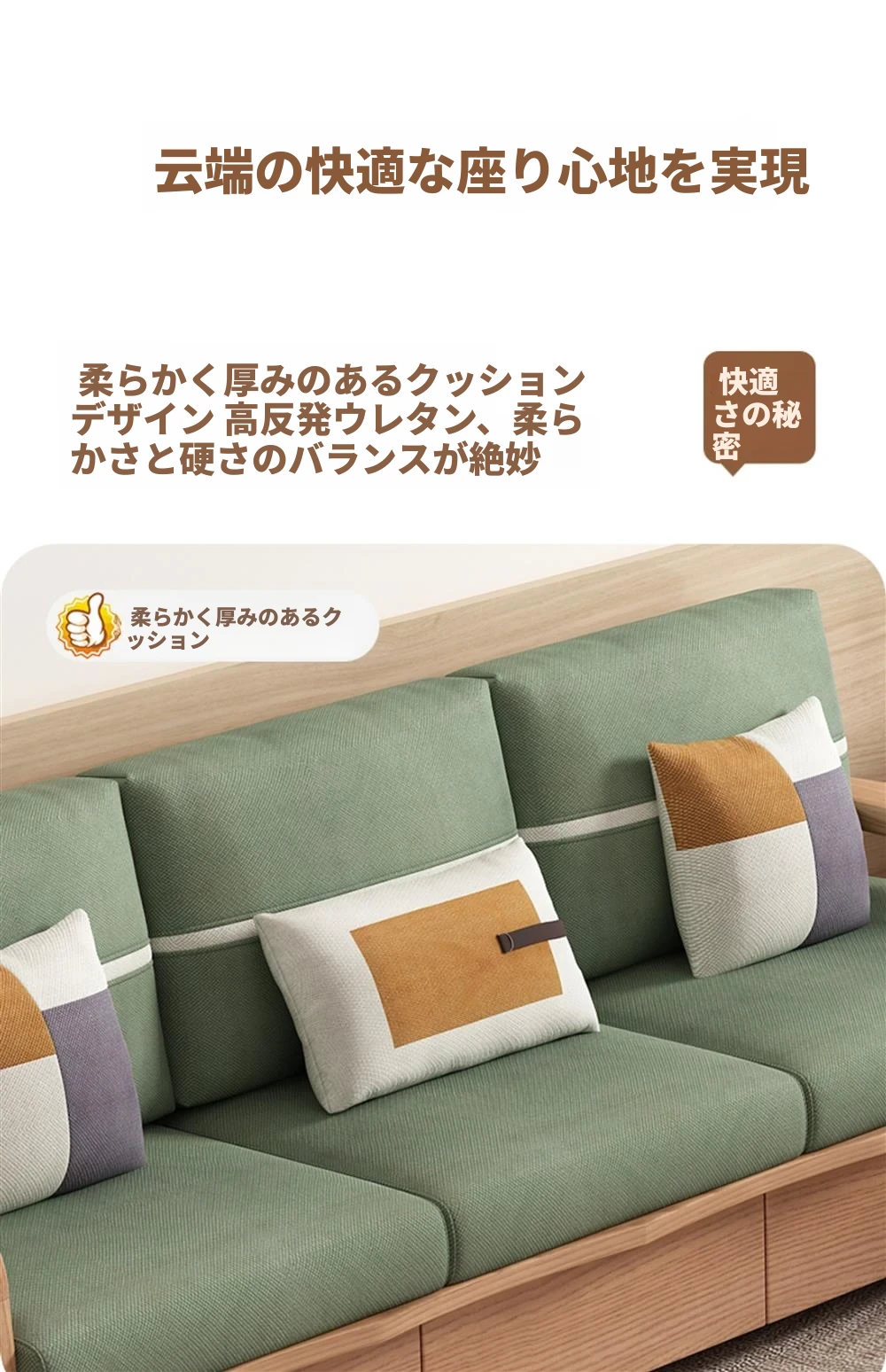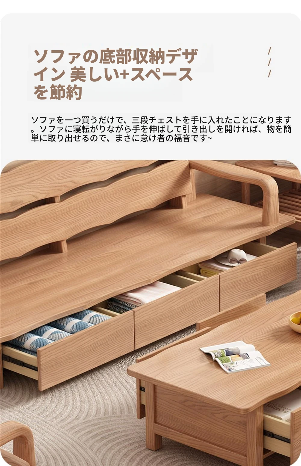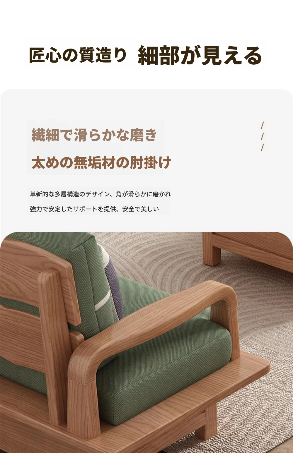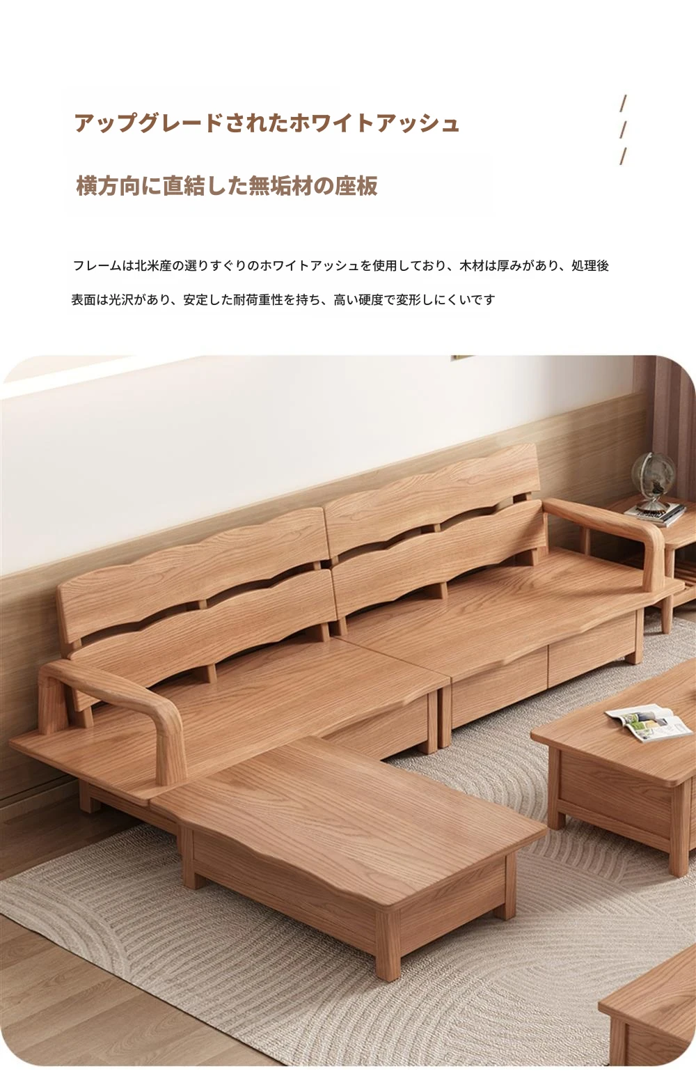 ホワイトアッシュ無垢材ソファセット - モダンでシンプルなデザイン、リビングにぴったりな3人掛け小型ソファ!高品質な木材使用で、耐久性抜群。おしゃれなインテリアを実現し、快適な空間を演出します。