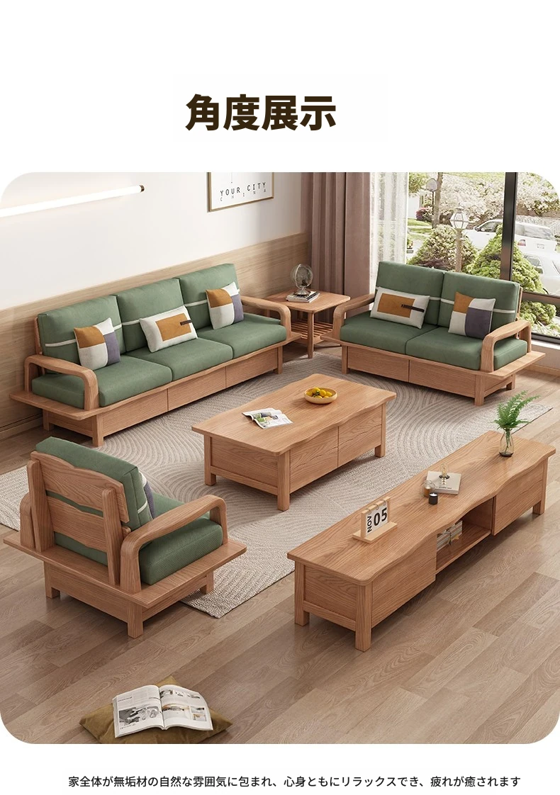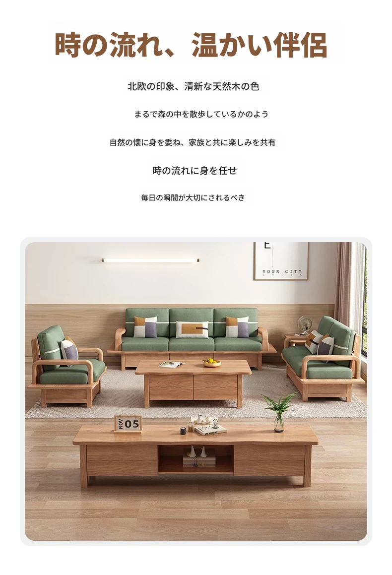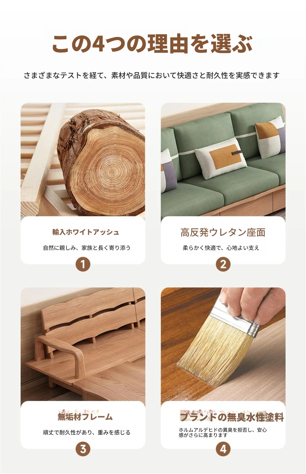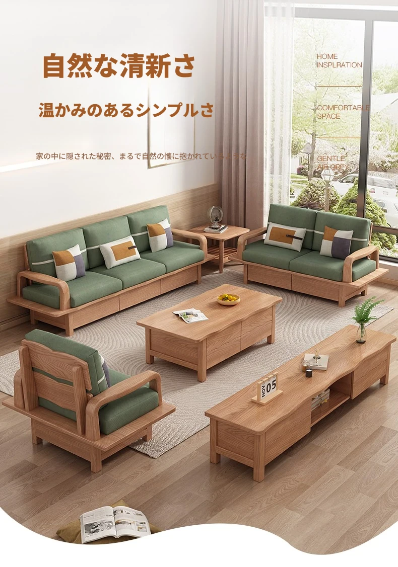 ホワイトアッシュ無垢材ソファセット - モダンでシンプルなデザイン、リビングにぴったりな3人掛け小型ソファ!高品質な木材使用で、耐久性抜群。おしゃれなインテリアを実現し、快適な空間を演出します。