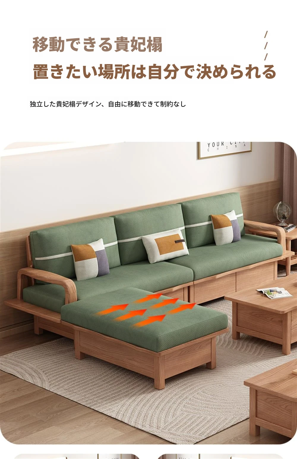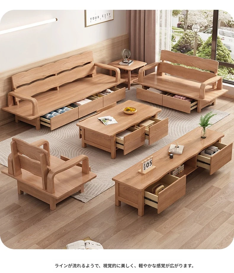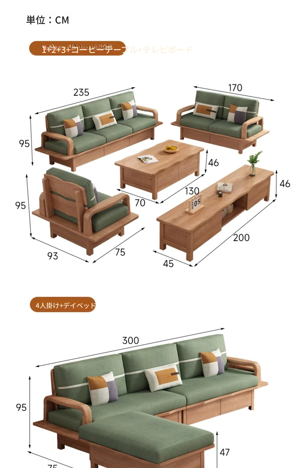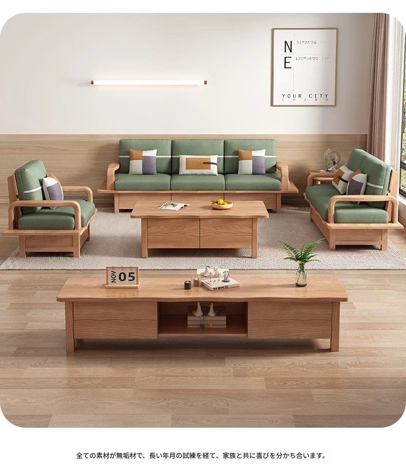 ホワイトアッシュ無垢材ソファセット - モダンでシンプルなデザイン、リビングにぴったりな3人掛け小型ソファ!高品質な木材使用で、耐久性抜群。おしゃれなインテリアを実現し、快適な空間を演出します。