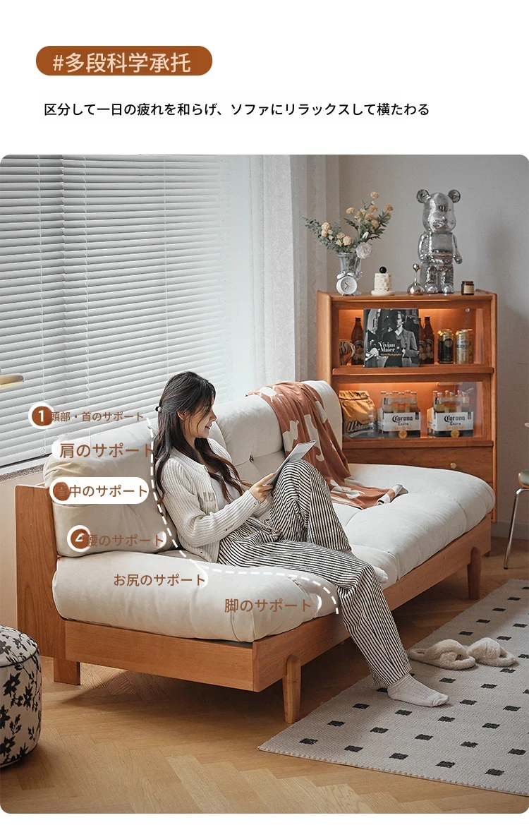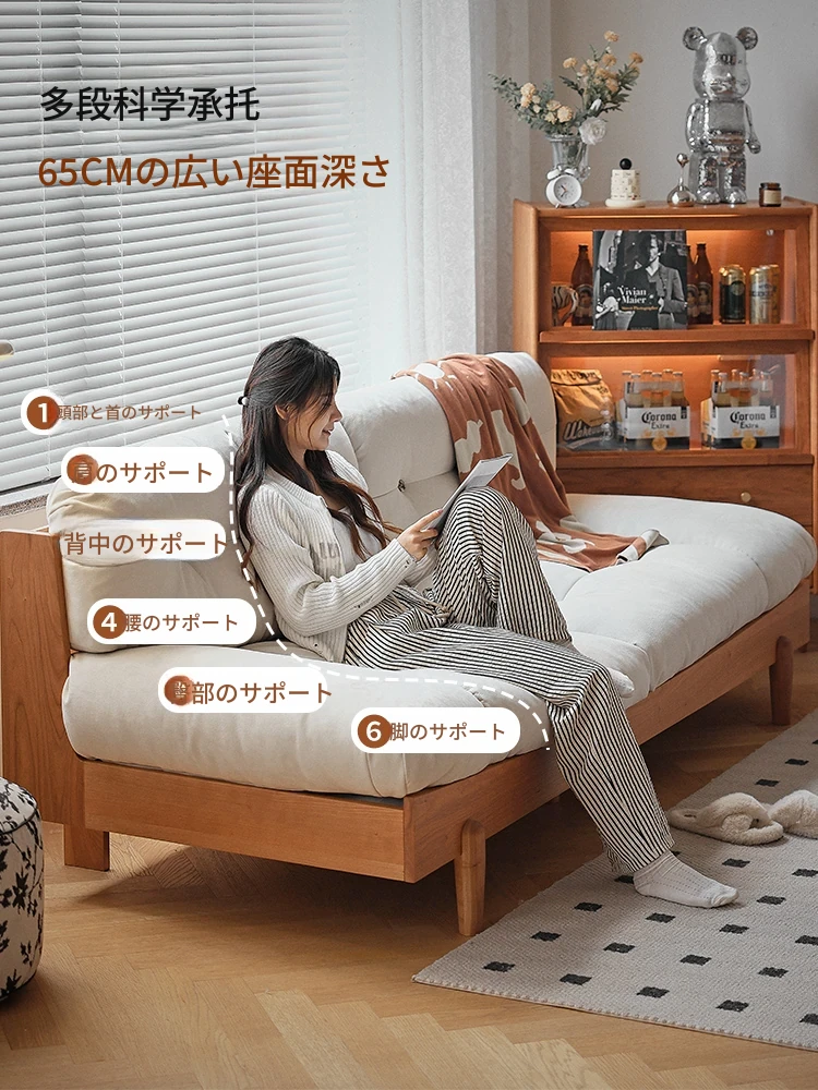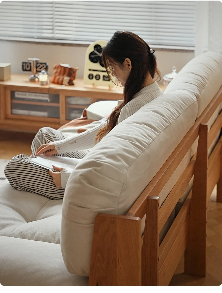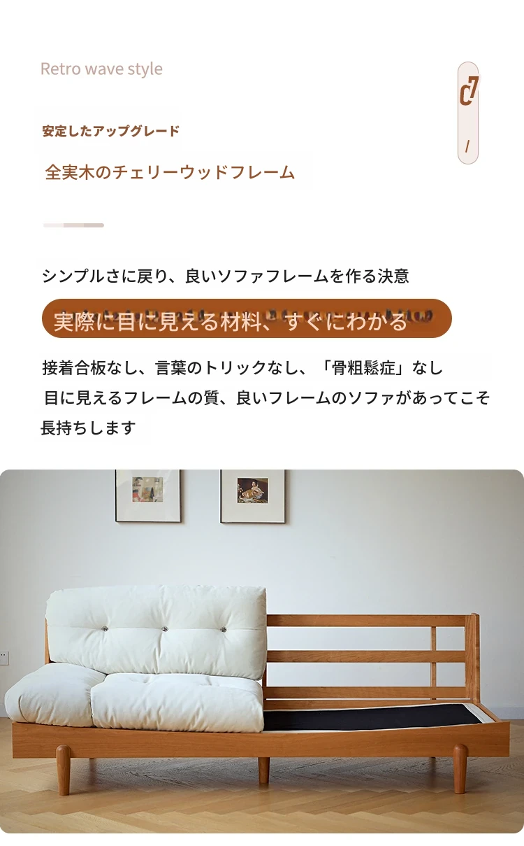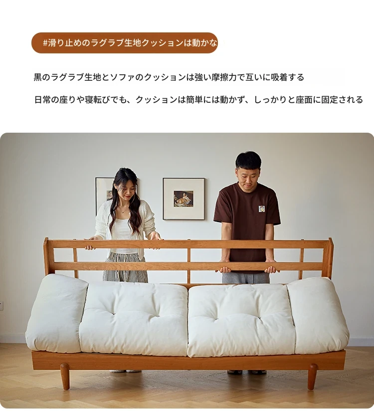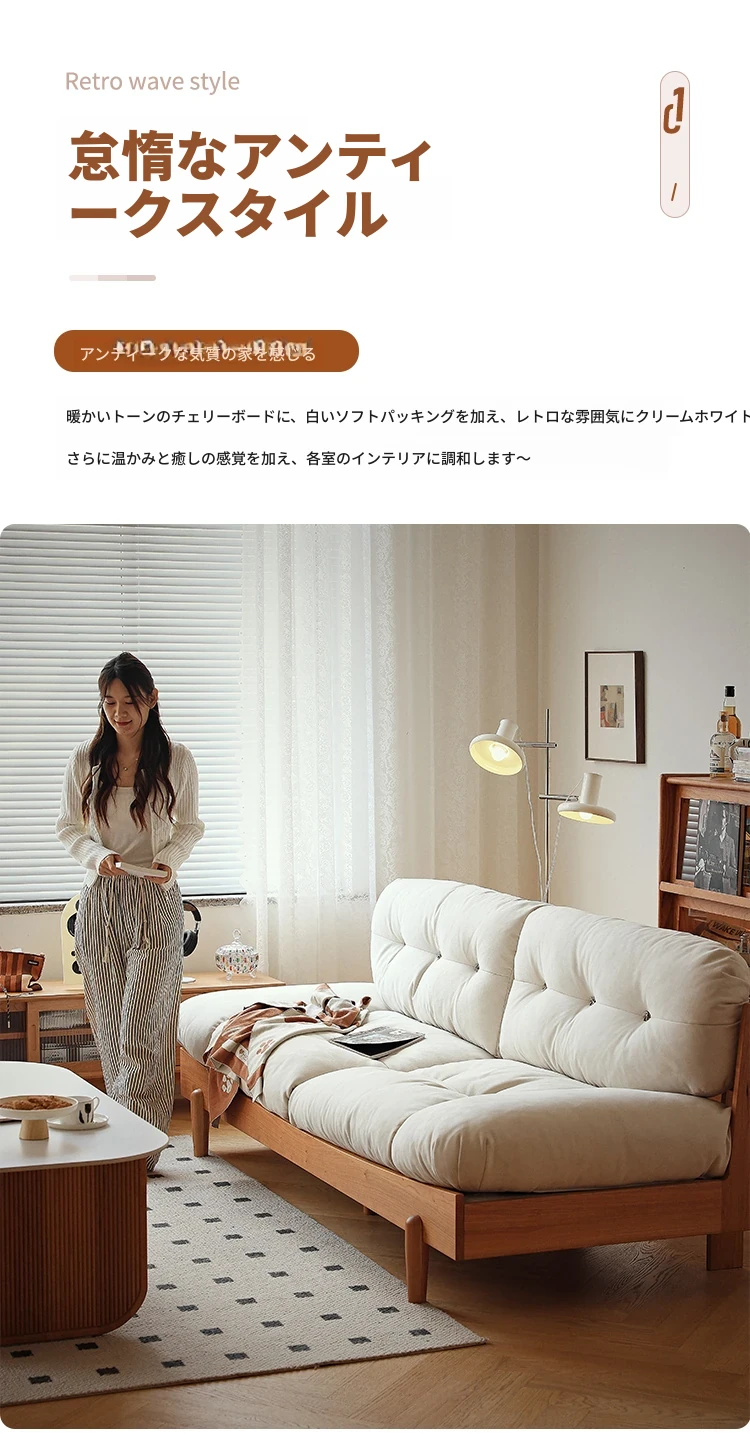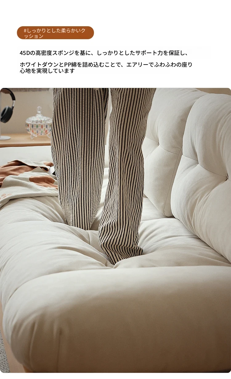 北欧風・日本式・雲のようなデザインの無垢材ソファ バクスター 小型リビングに最適!クリーミーなナチュラルウッド風の布製ソファは、取り外し可能でお手入れ簡単!快適な空間をあなたの家に。