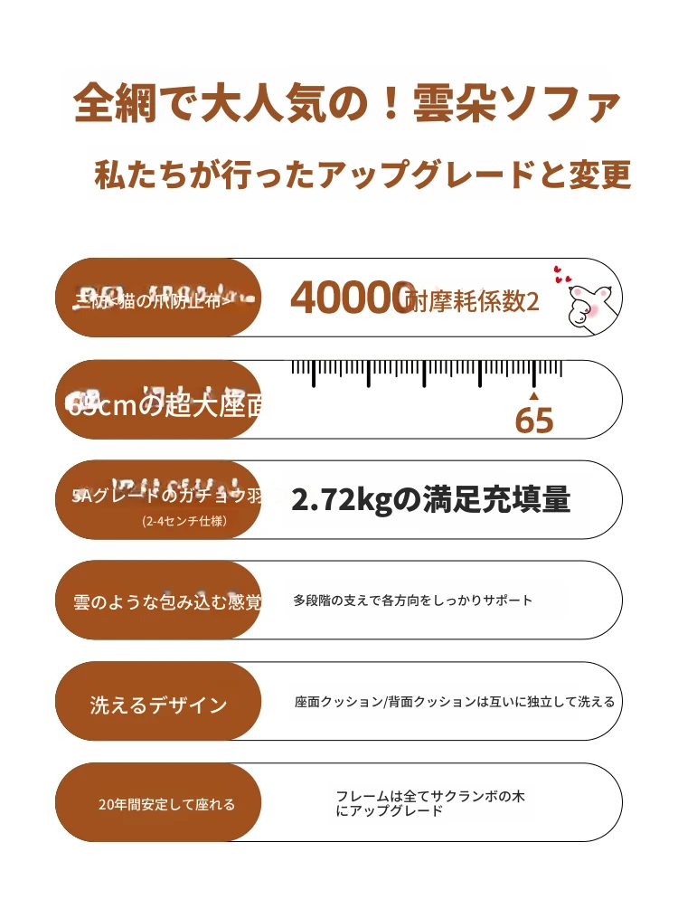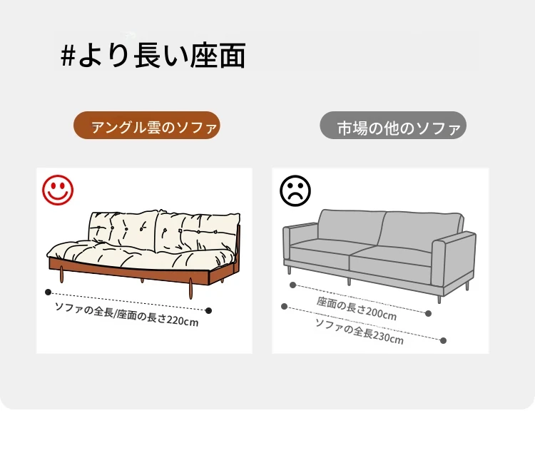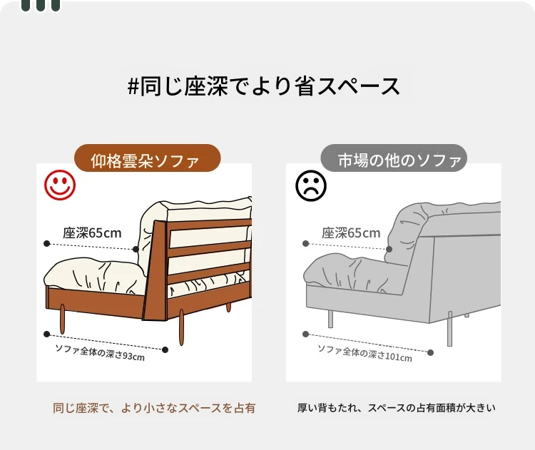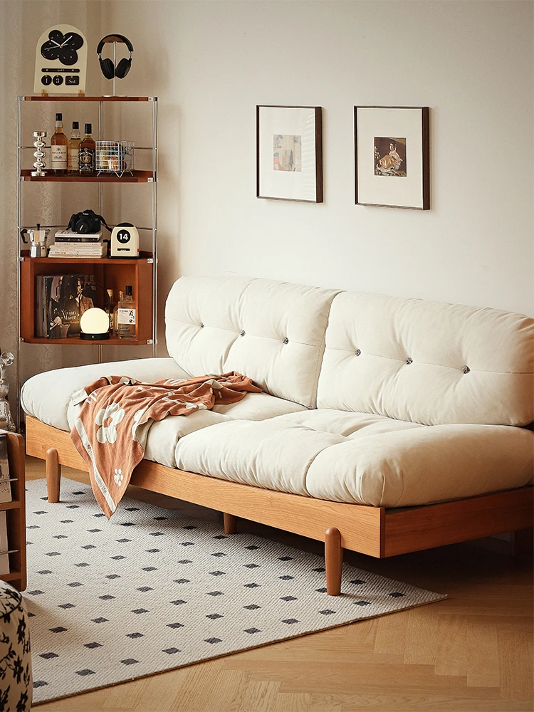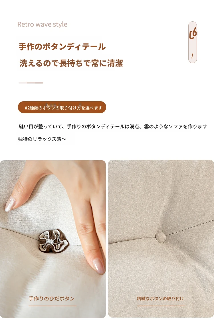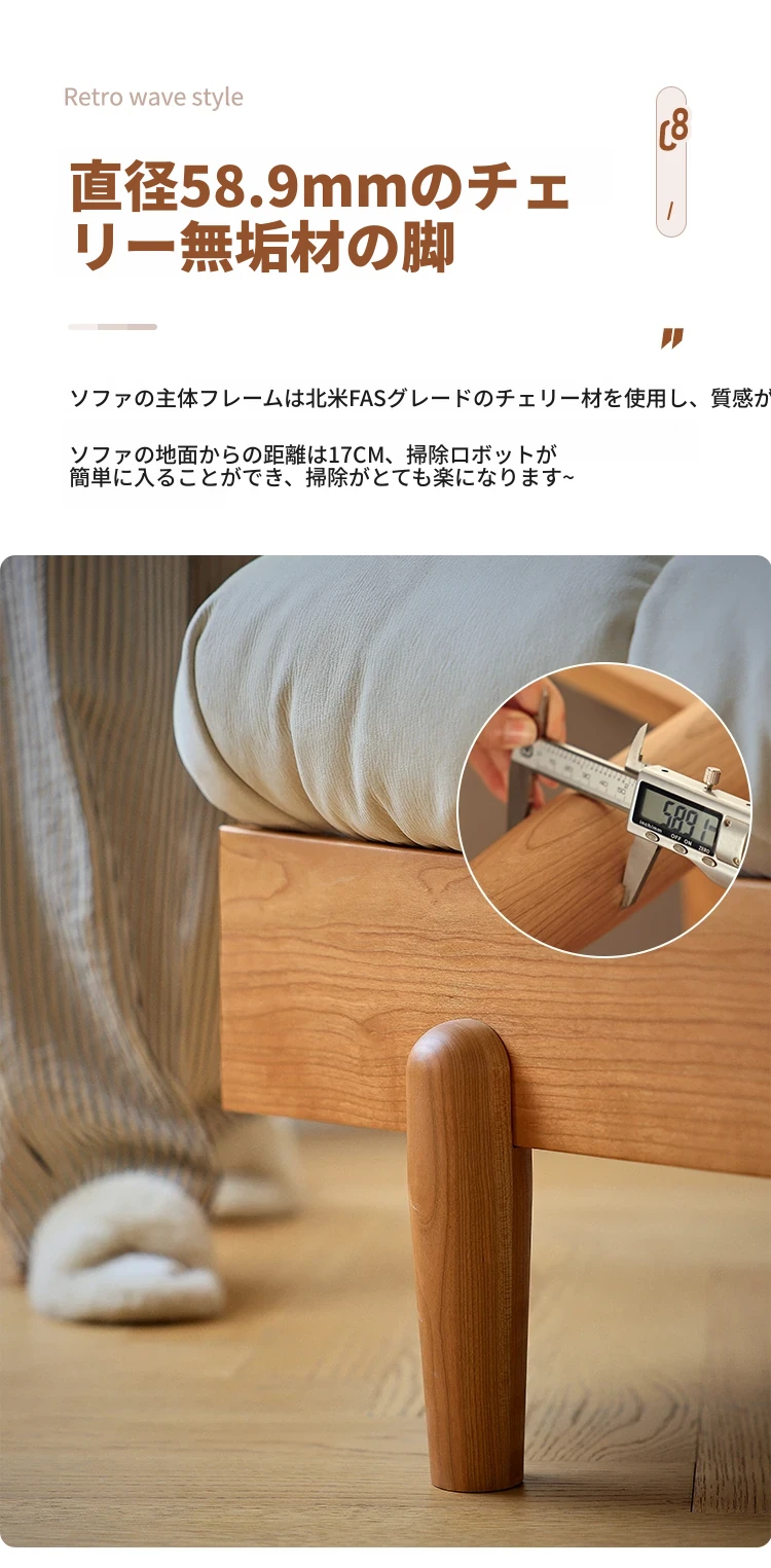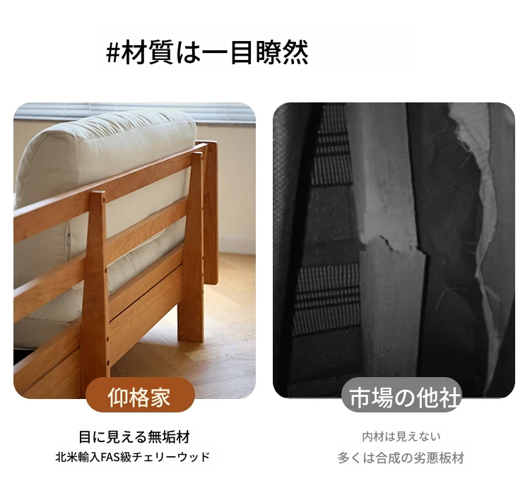 北欧風・日本式・雲のようなデザインの無垢材ソファ バクスター 小型リビングに最適!クリーミーなナチュラルウッド風の布製ソファは、取り外し可能でお手入れ簡単!快適な空間をあなたの家に。