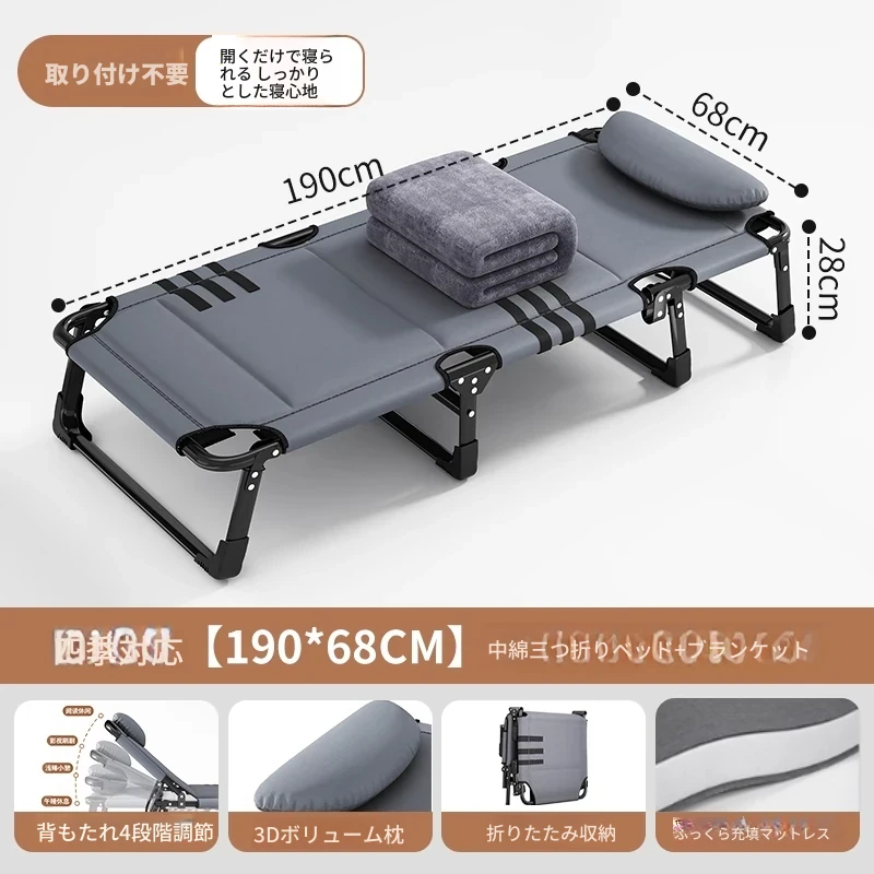 アップグレード版【190CM*68CM】折りたたみベッド+毛布