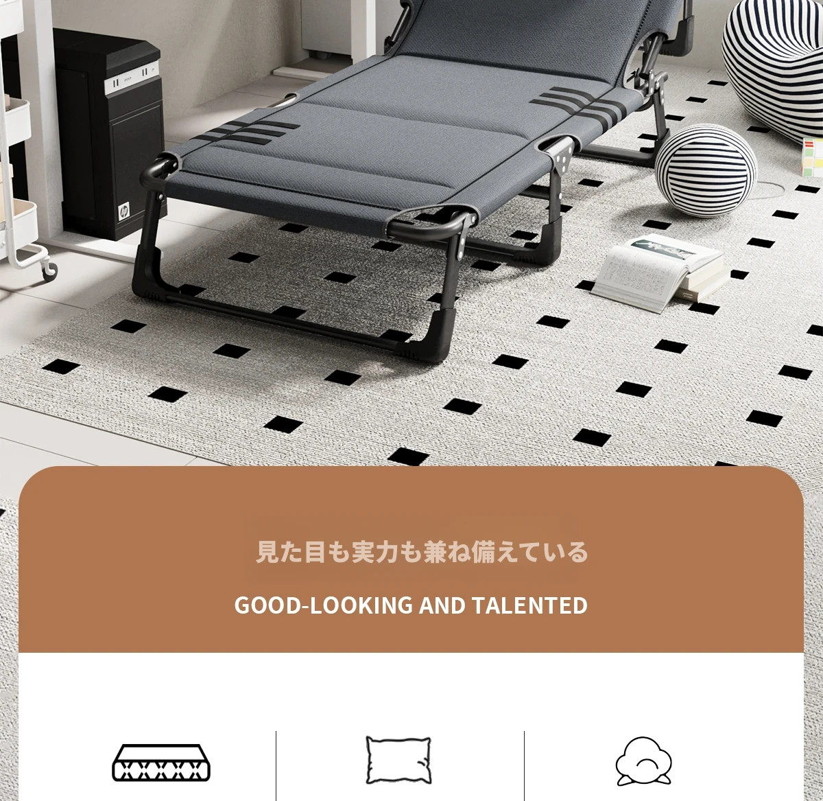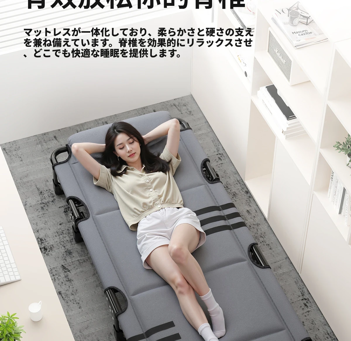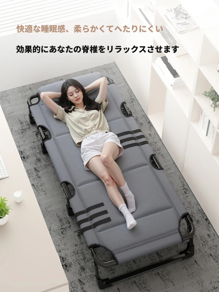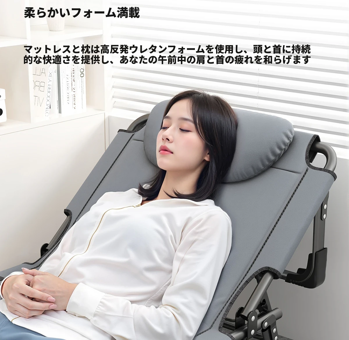 折りたたみシングルベッド - オフィスでの昼寝に最適!簡単に持ち運べるリクライニングチェアで、仕事の合間にリフレッシュ。快適な昼休みを手に入れよう!