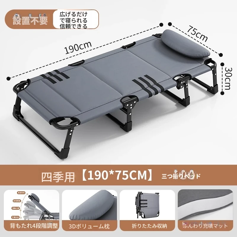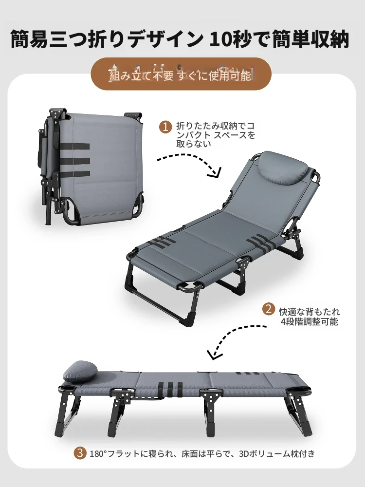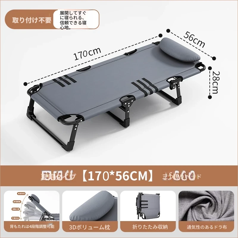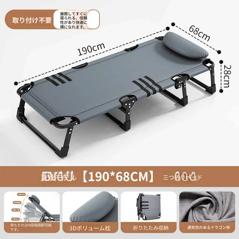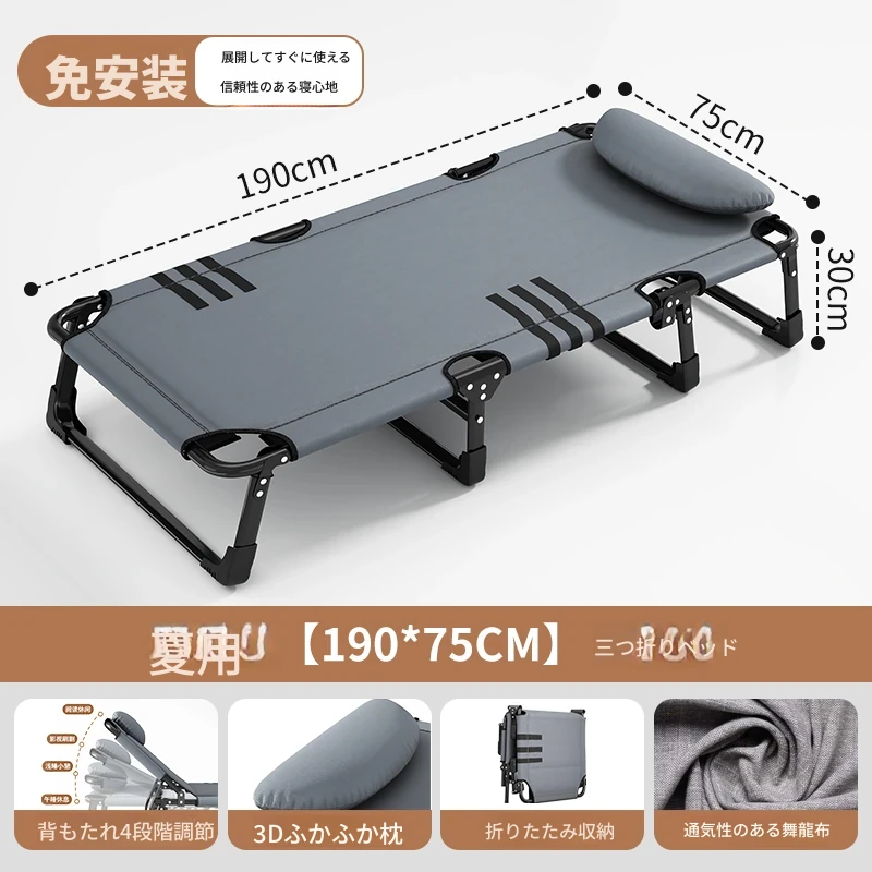折りたたみシングルベッド - オフィスでの昼寝に最適!簡単に持ち運べるリクライニングチェアで、仕事の合間にリフレッシュ。快適な昼休みを手に入れよう!