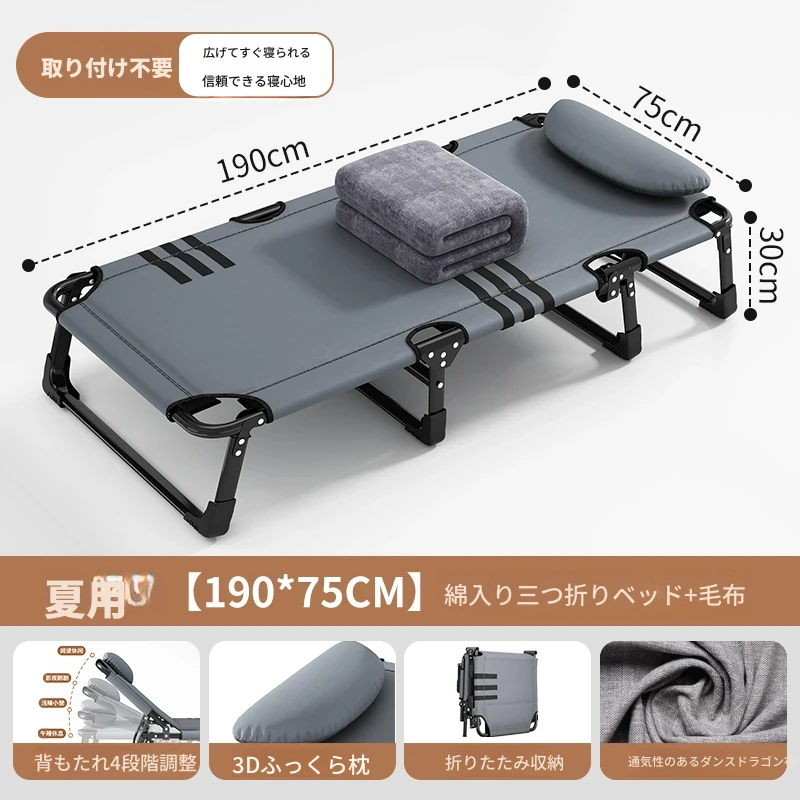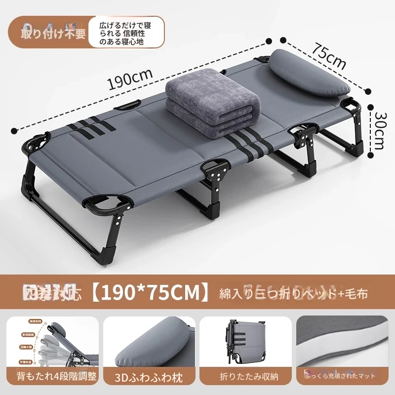 長さと幅が拡大【190CM*75CM】折りたたみベッド+毛布