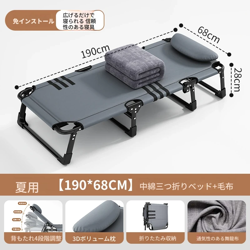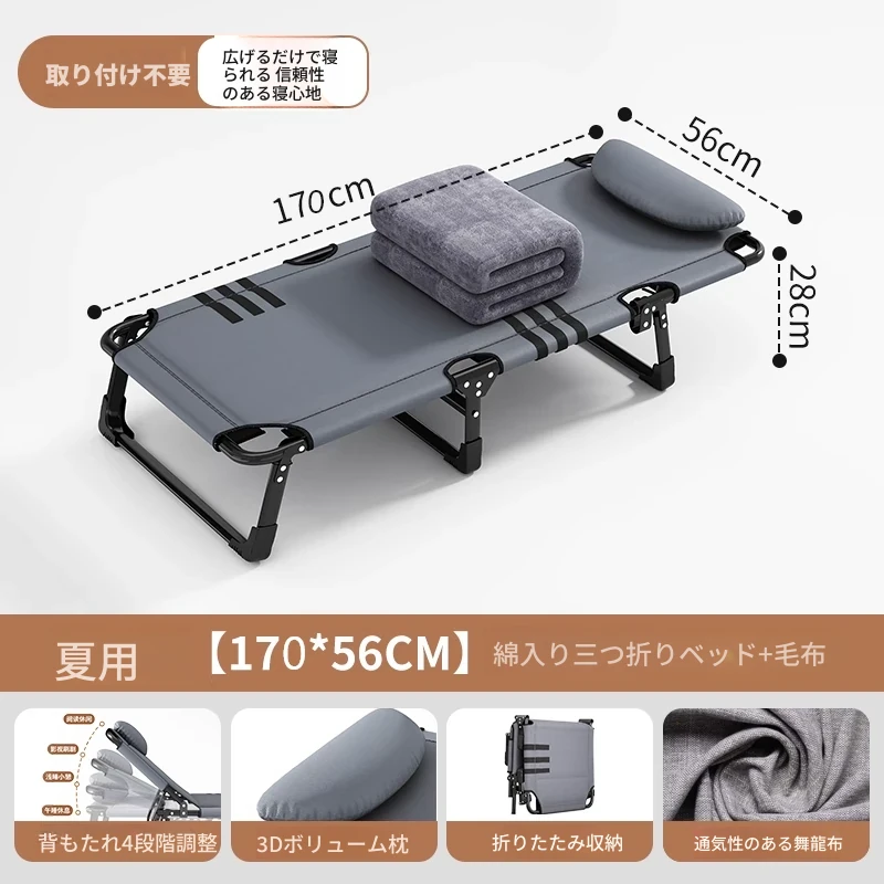 スタンダード版【170CM*56CM】折りたたみベッド+毛布