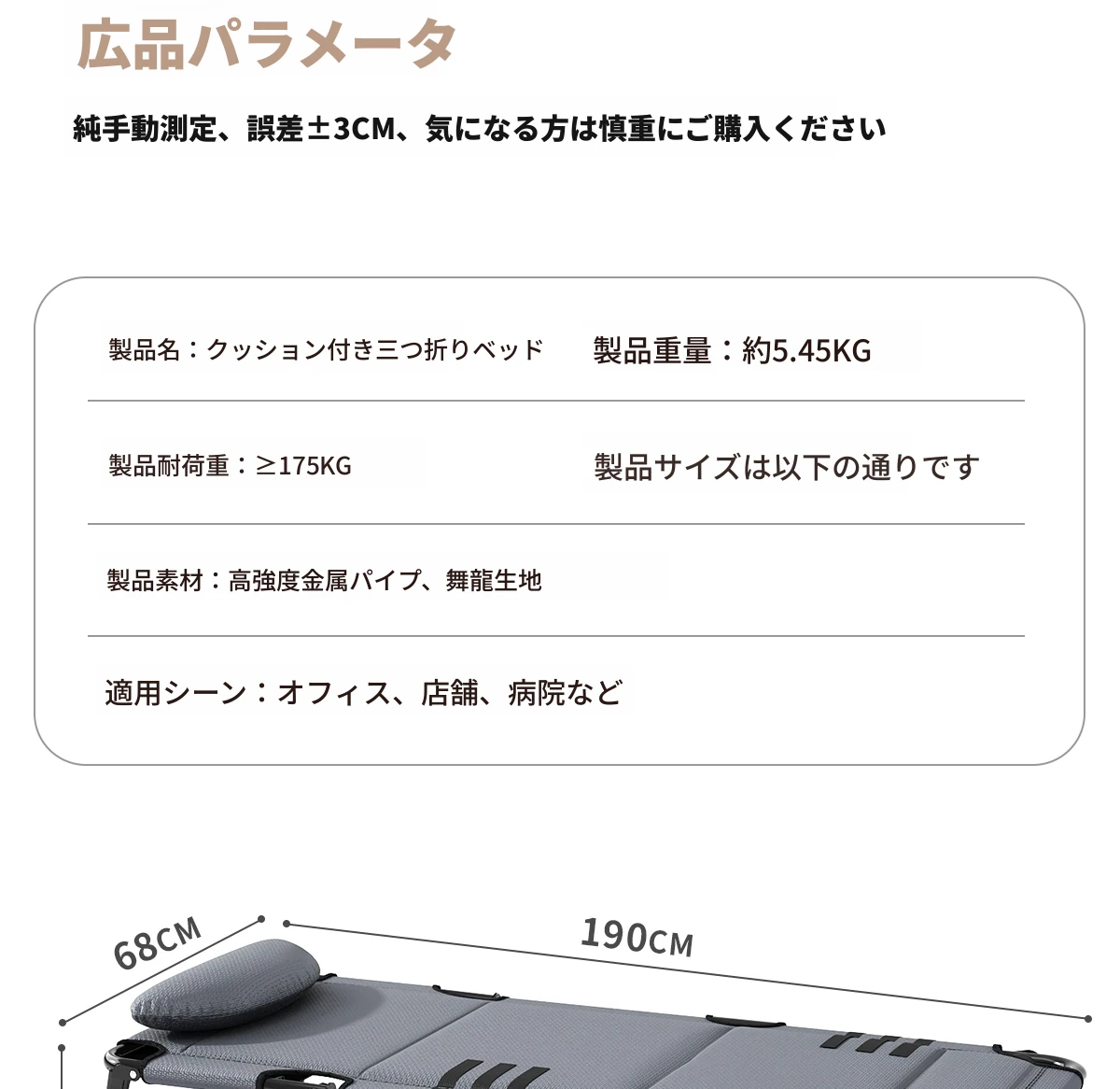 長さと幅が拡大【190CM*75CM】- 綿入り折りたたみベッド