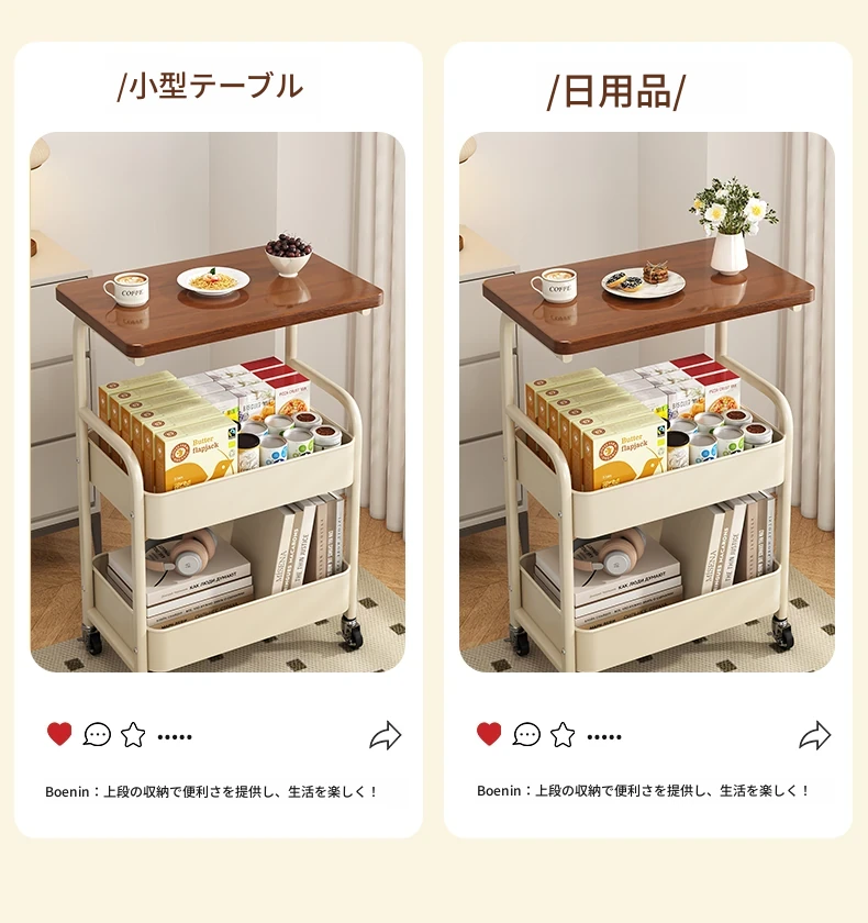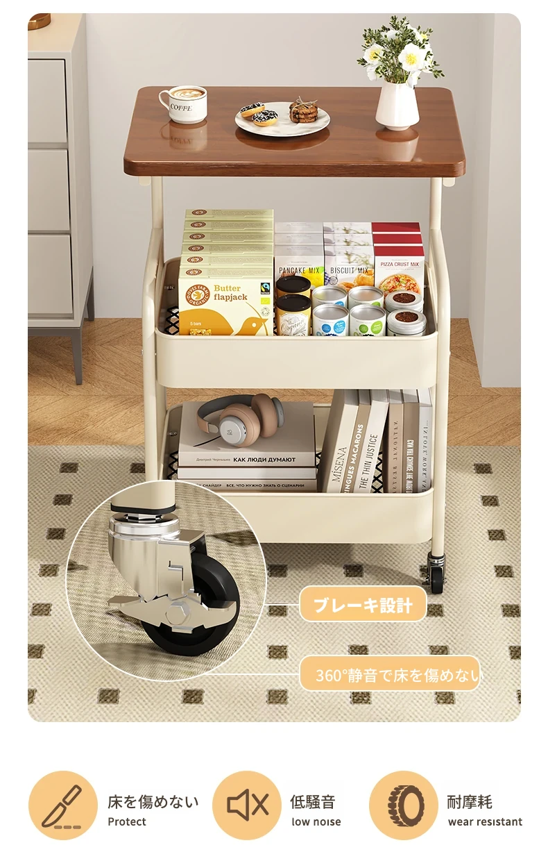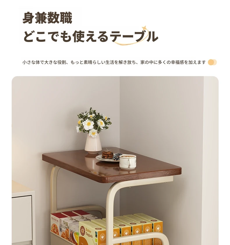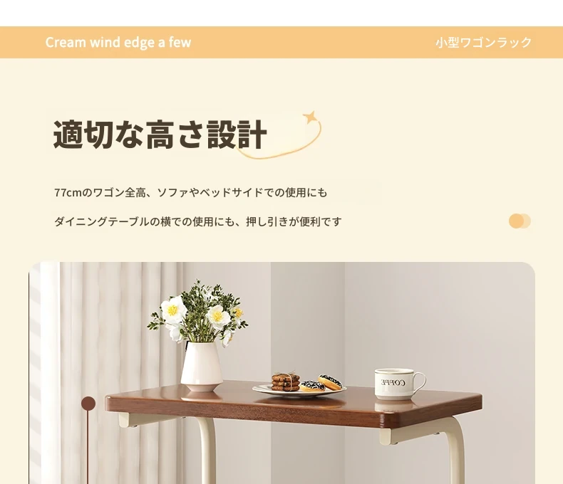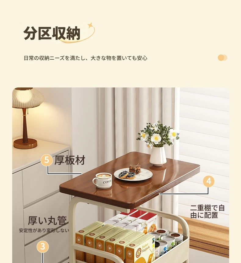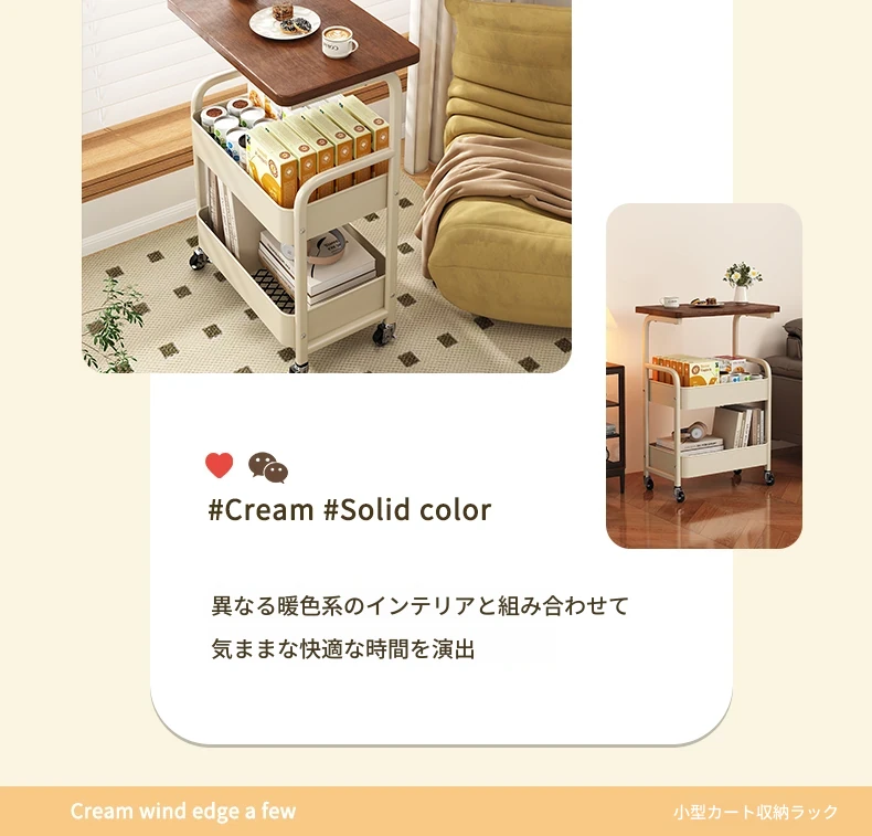 移動式スナックラック!クリーム風デザインのサイドテーブル、リビングやソファの横にぴったり。収納力抜群で、使い勝手も良好。おしゃれな空間を演出し、快適な暮らしをサポートします!