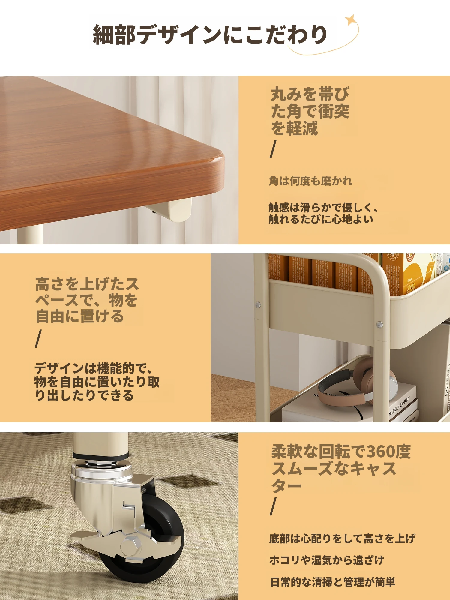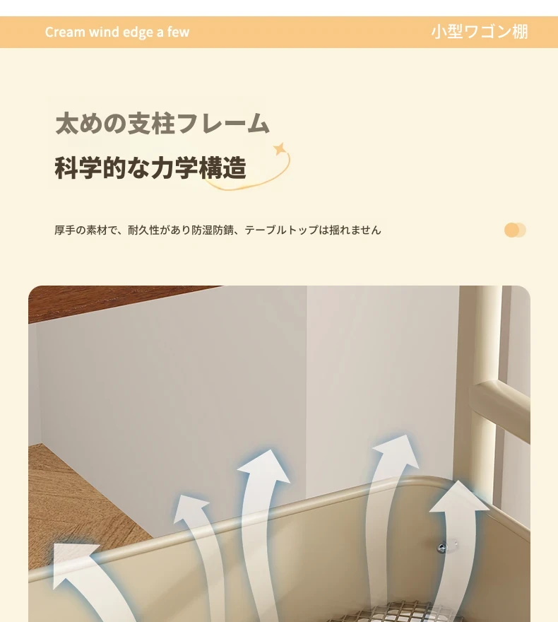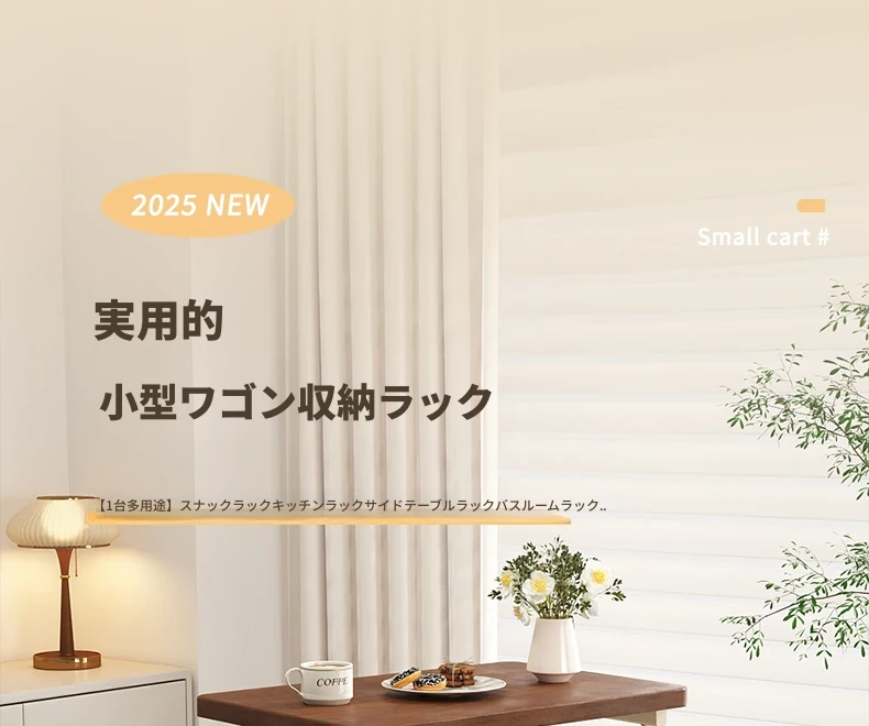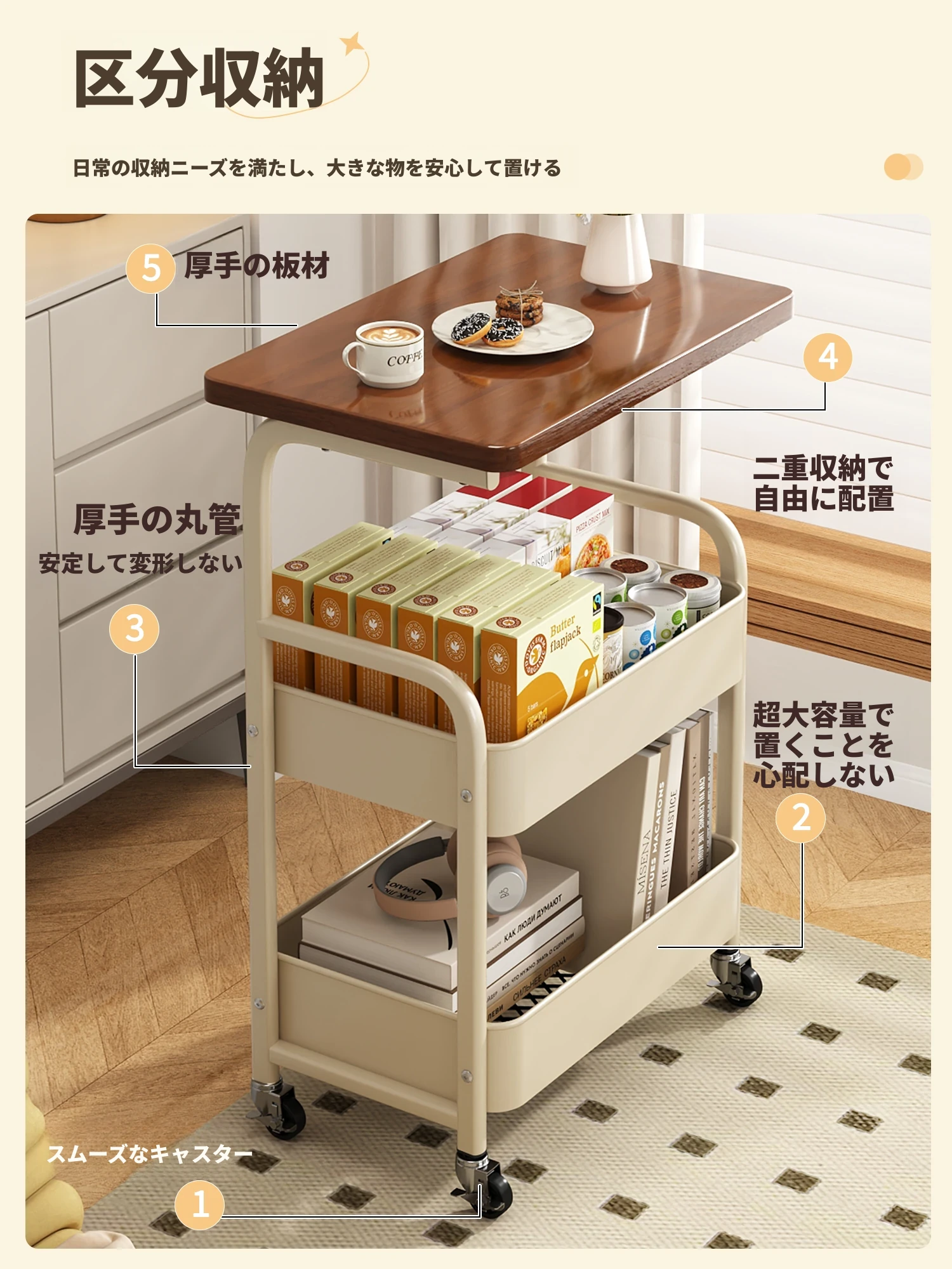 移動式スナックラック!クリーム風デザインのサイドテーブル、リビングやソファの横にぴったり。収納力抜群で、使い勝手も良好。おしゃれな空間を演出し、快適な暮らしをサポートします!