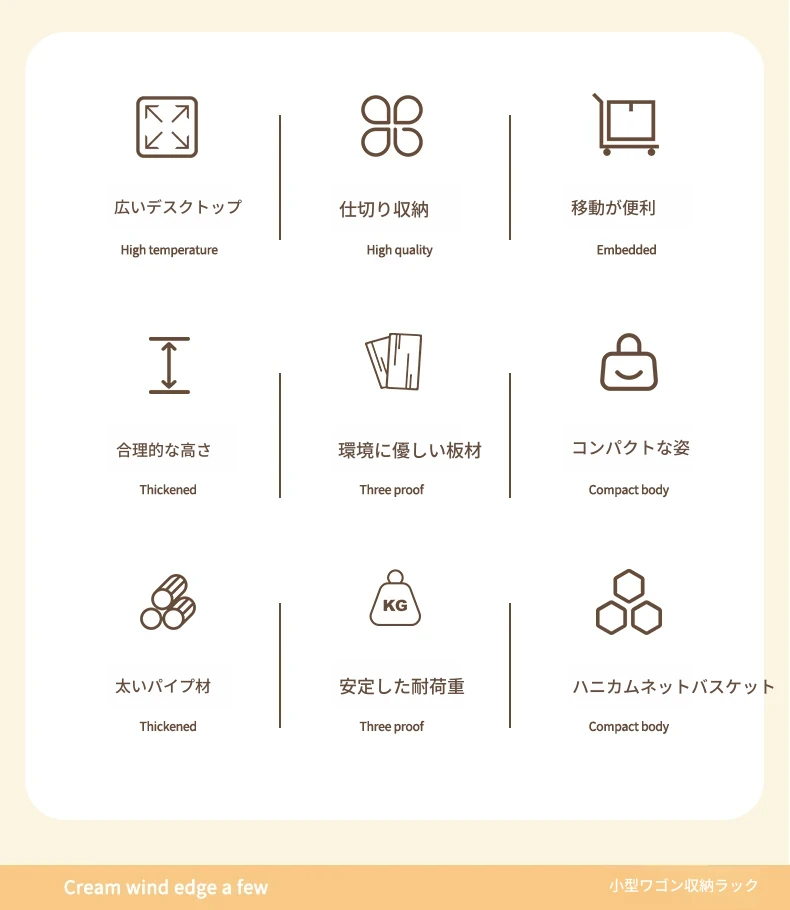 【アップグレード厚手モデル】多層収納-静音万向キャスター⭐ミルクティー色
