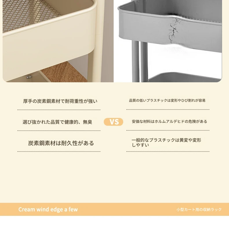 【アップグレード厚手モデル】多層収納-静音万向キャスター⭐アイボリー