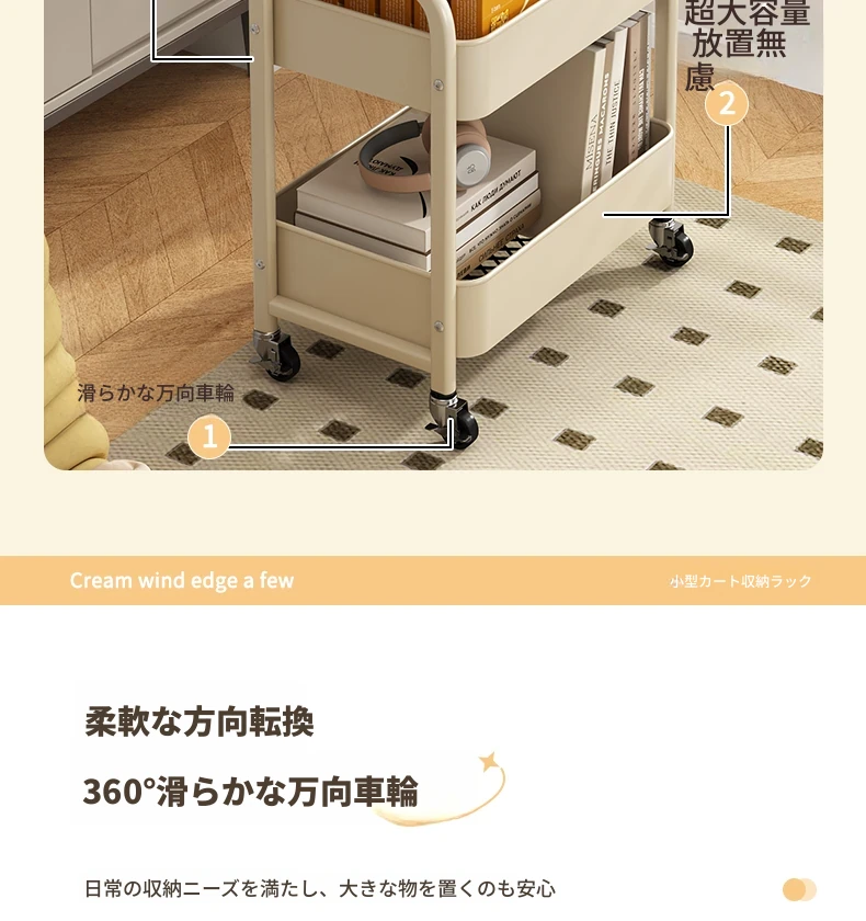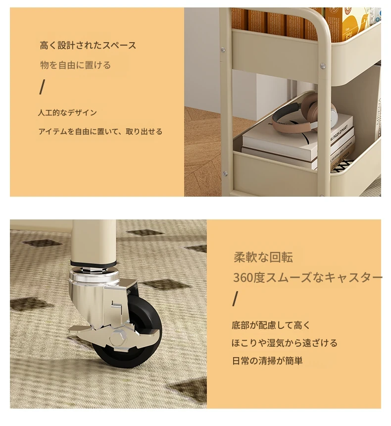 【多層収納】静音万向キャスター⭐アイボリー