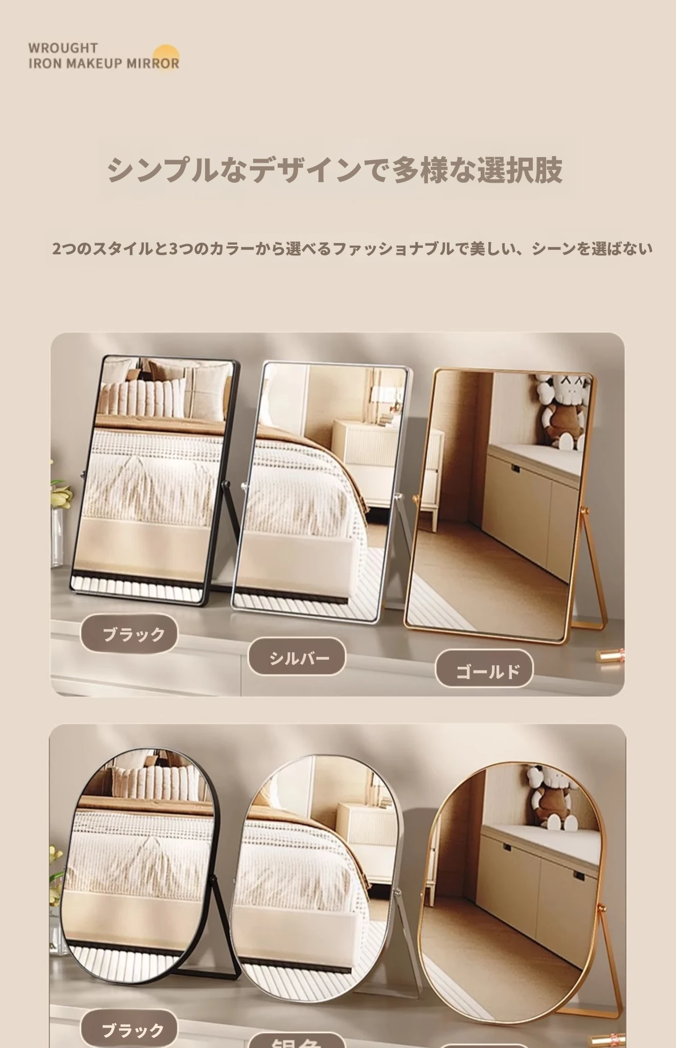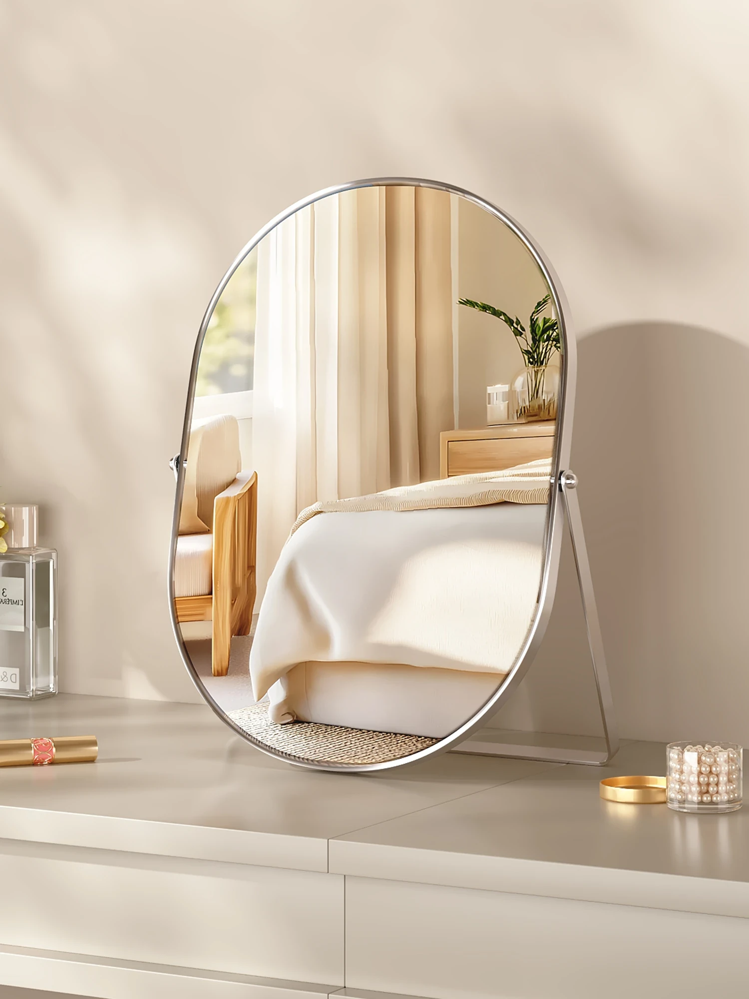 【ラウンドタイプ】シンプルシルバー22.5CM*31CM【回転スタンド+高精細ミラー】