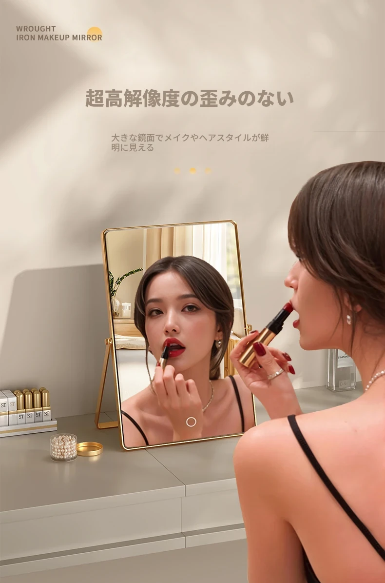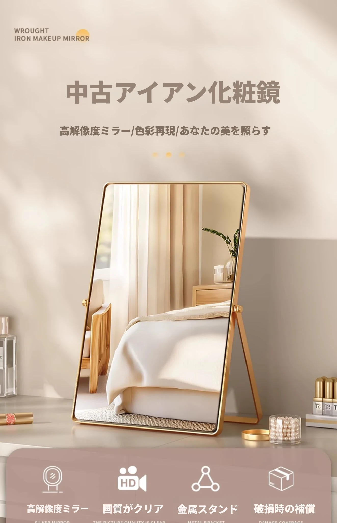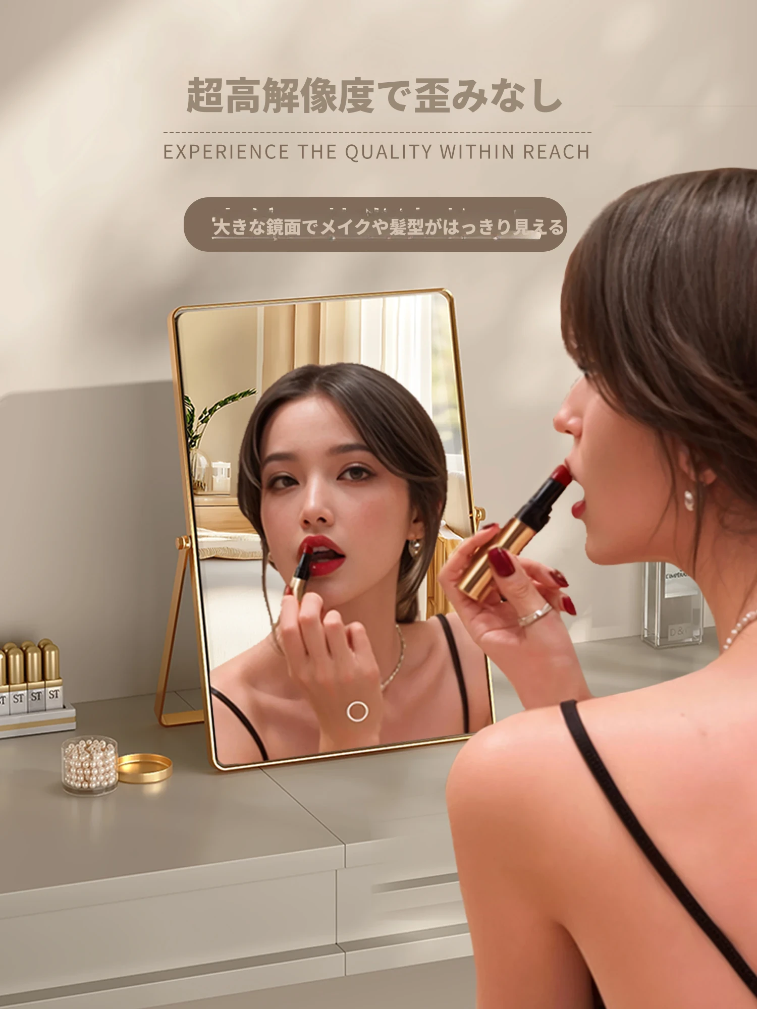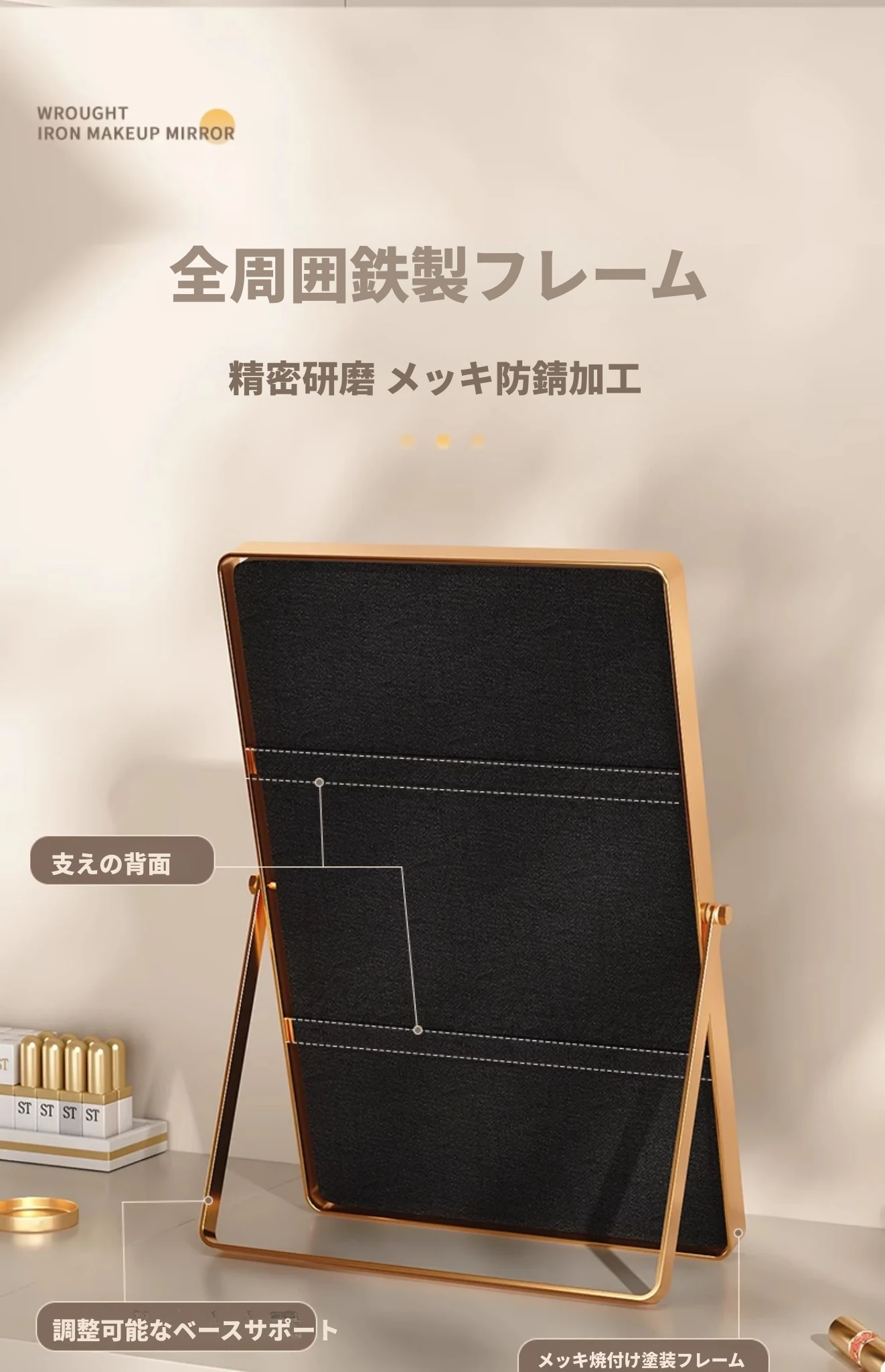 【スクエアタイプ】ラグジュアリーゴールド22.5CM*31CM【回転スタンド+高精細ミラー】