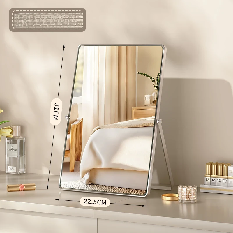 【スクエアタイプ】シンプルシルバー22.5CM*31CM【回転スタンド+高精細ミラー】