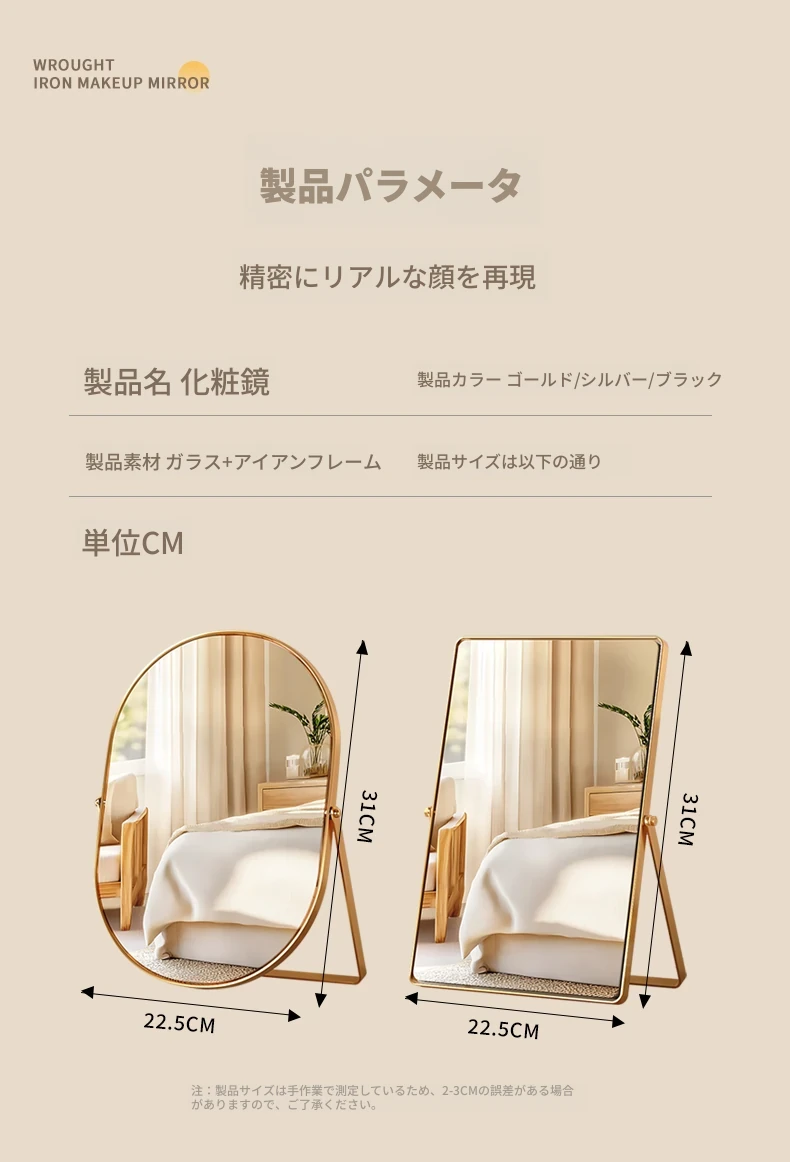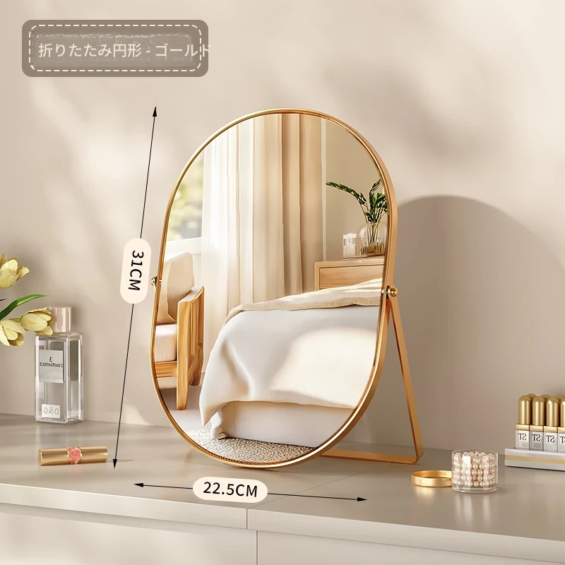 【ラウンドタイプ】ラグジュアリーゴールド22.5CM*31CM【回転スタンド+高精細ミラー】