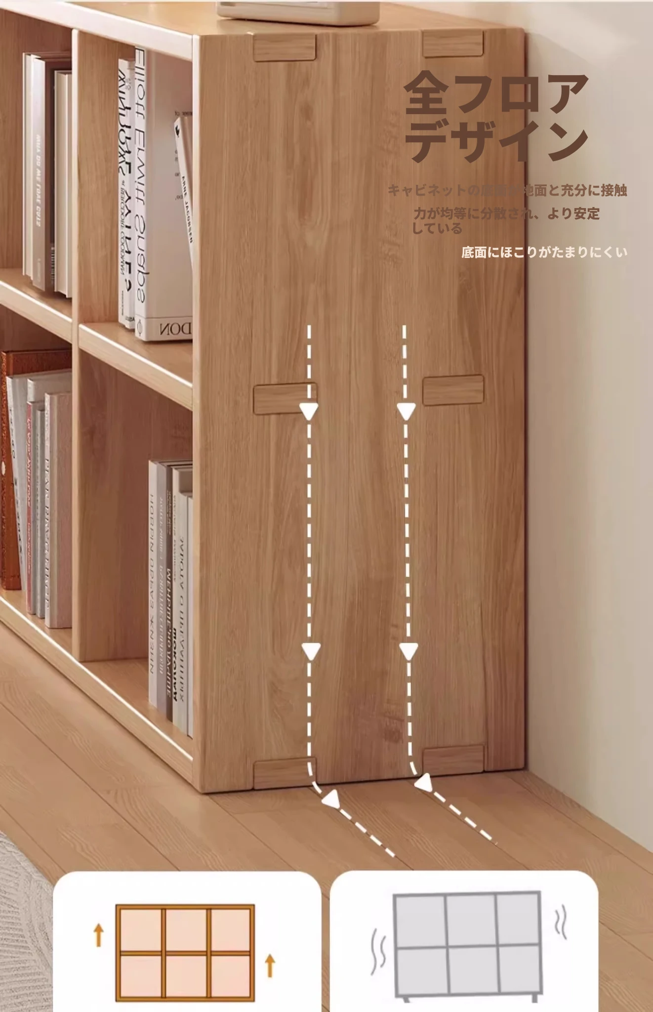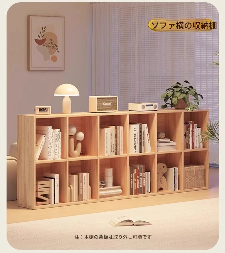 窓辺の本棚・実木製収納ラック 寝室にぴったり!小物整理に最適な多段フロアキャビネット シンプルでスタイリッシュな書棚をお探しの方におすすめ!