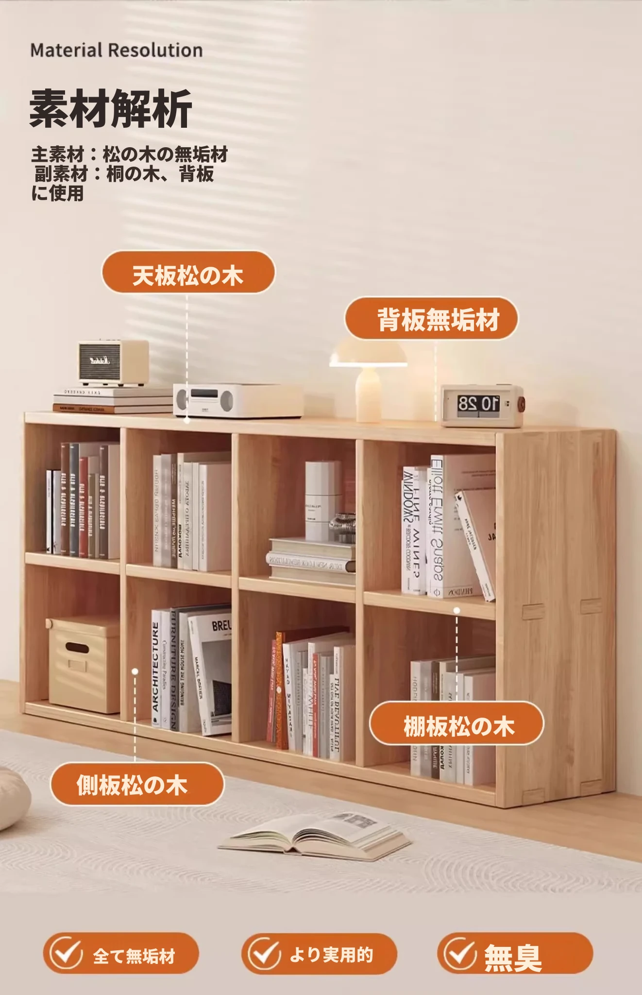 ⭐パイン材【高さと深さ4段】30x75x60cm★ 衝突防止角カバー付き