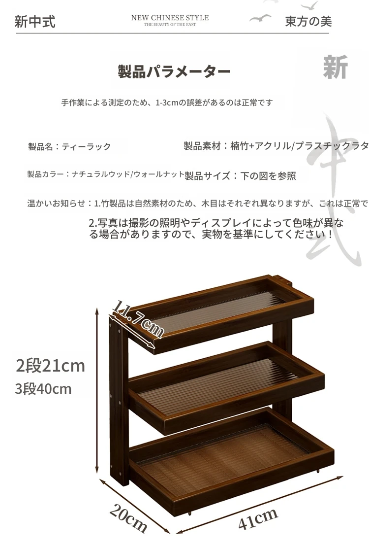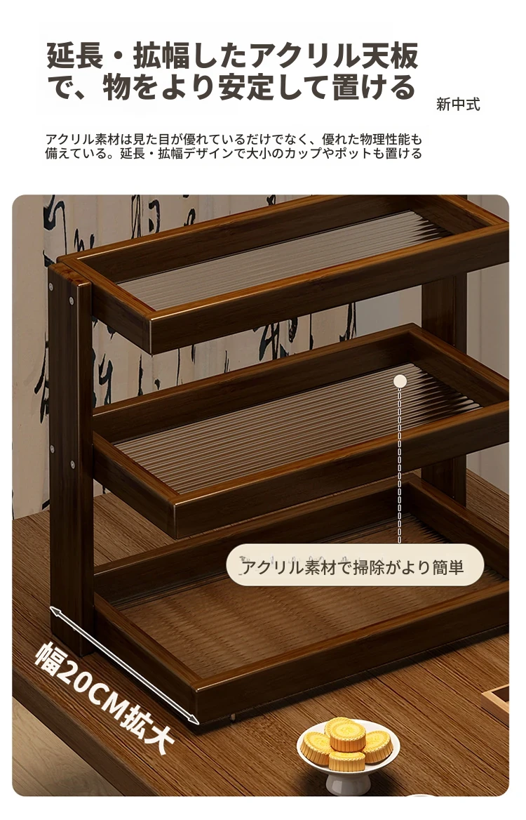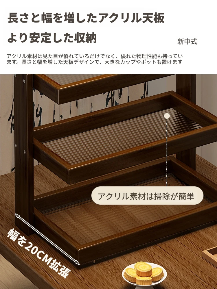 95%のお茶友達に好評❤胡桃色-三段収納ラック(高透過アクリル+精密研磨)