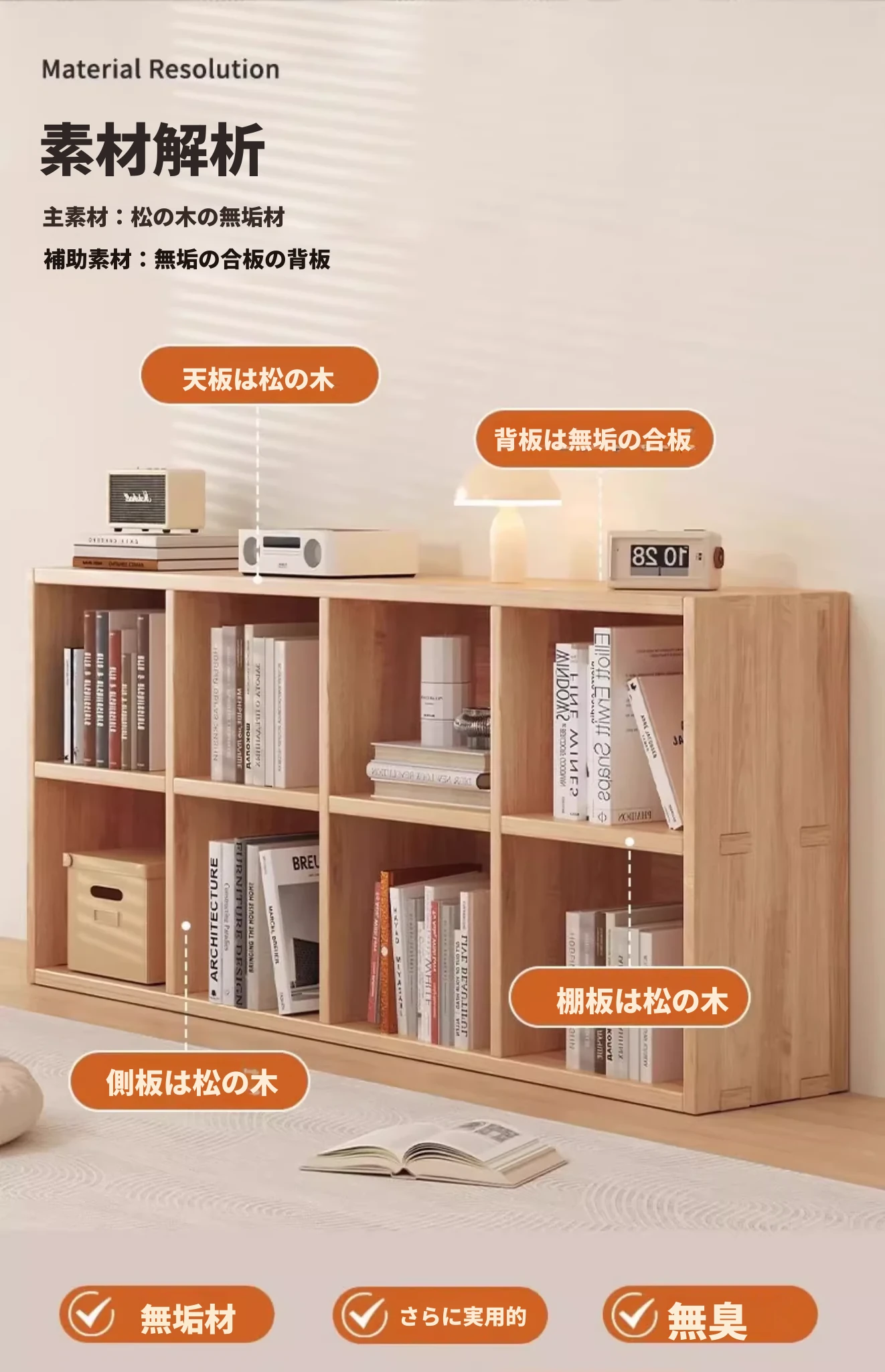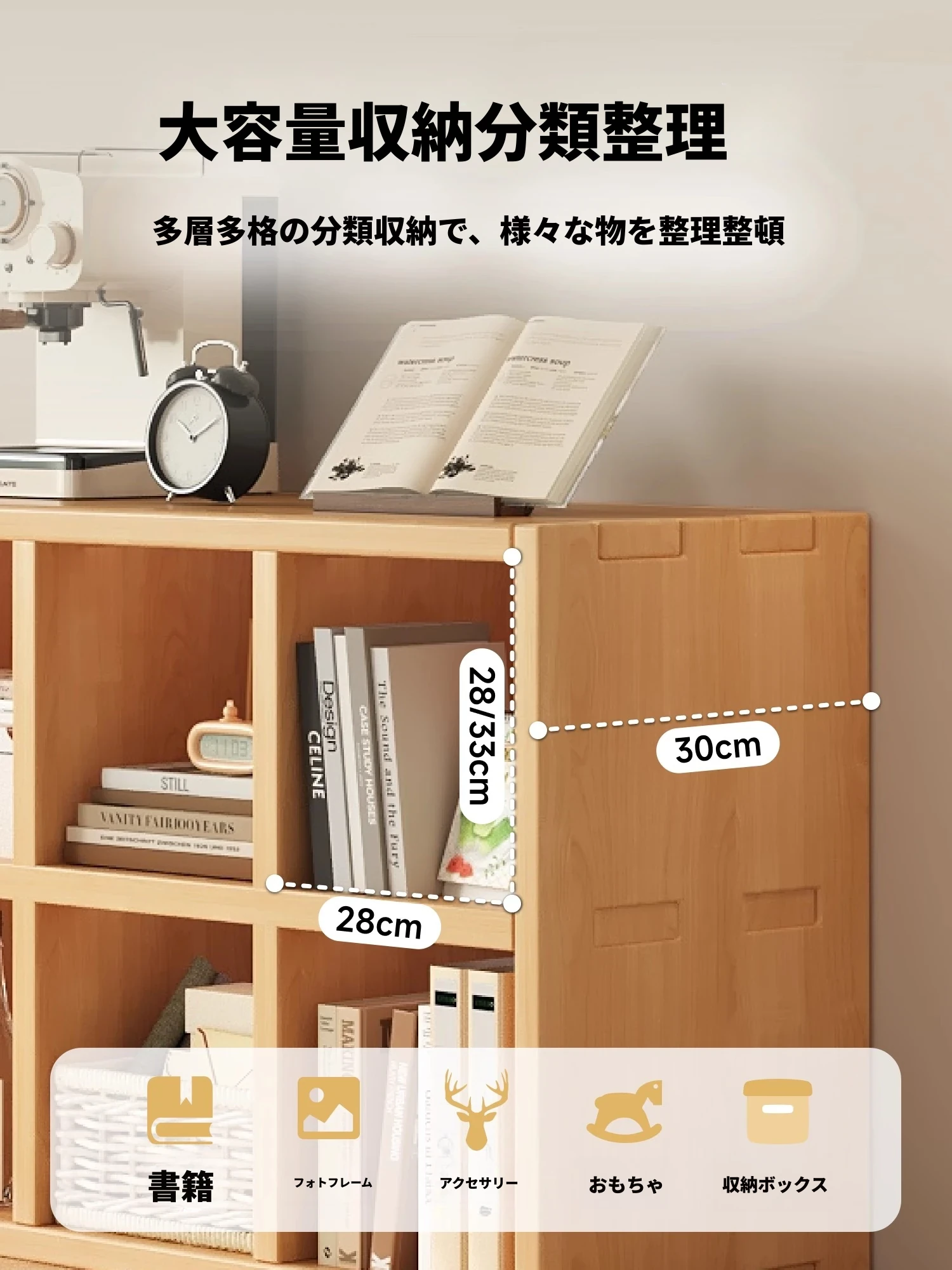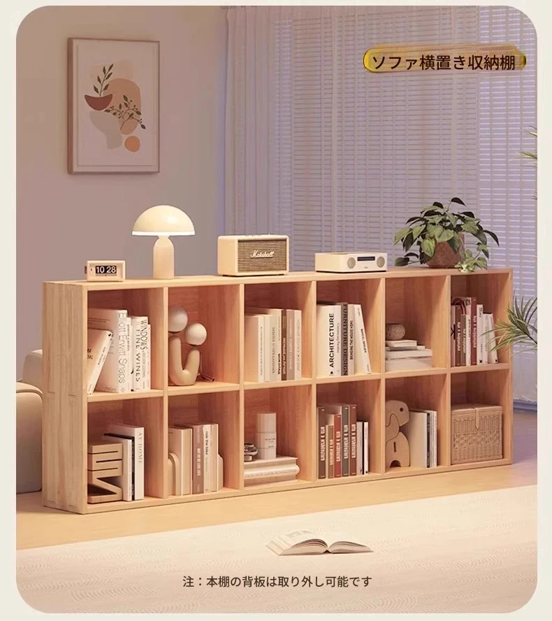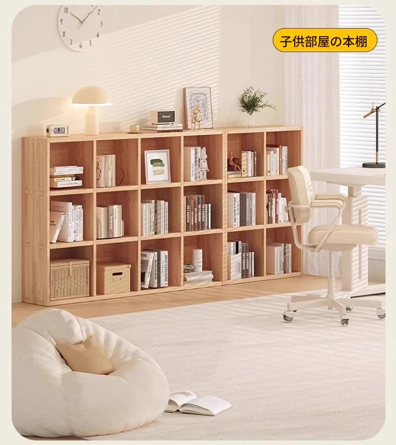天然木製の格子型シェルフ!書籍や小物をスタイリッシュに収納できる多層フロアシェルフ。寝室や窓辺にぴったりなシンプルで機能的なデザイン。おしゃれで整理整頓も楽々!