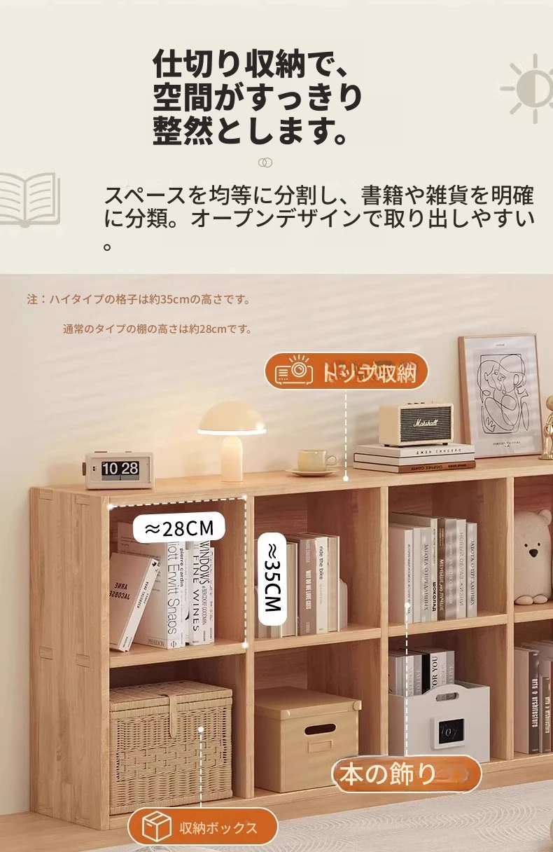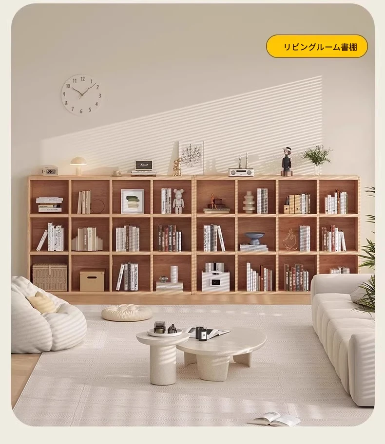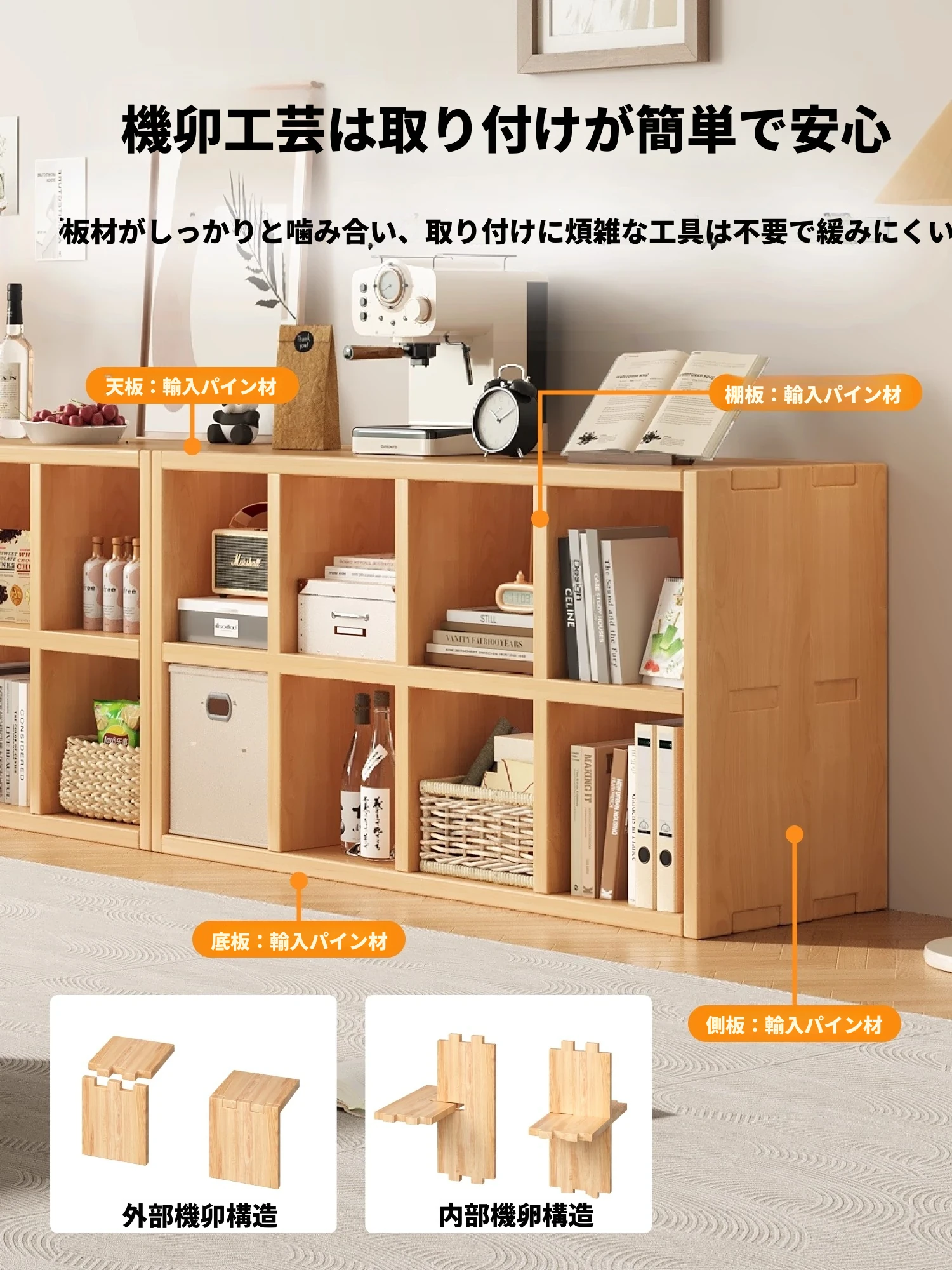 天然木製の格子型シェルフ!書籍や小物をスタイリッシュに収納できる多層フロアシェルフ。寝室や窓辺にぴったりなシンプルで機能的なデザイン。おしゃれで整理整頓も楽々!