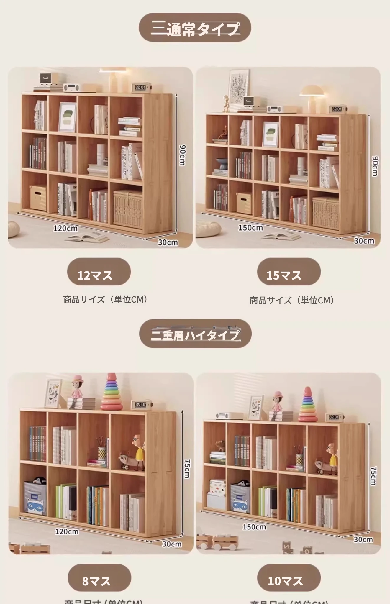 ⭐全て無垢材【三層深型12コ】30x90x120cm★ 衝突防止コーナーカバー付き