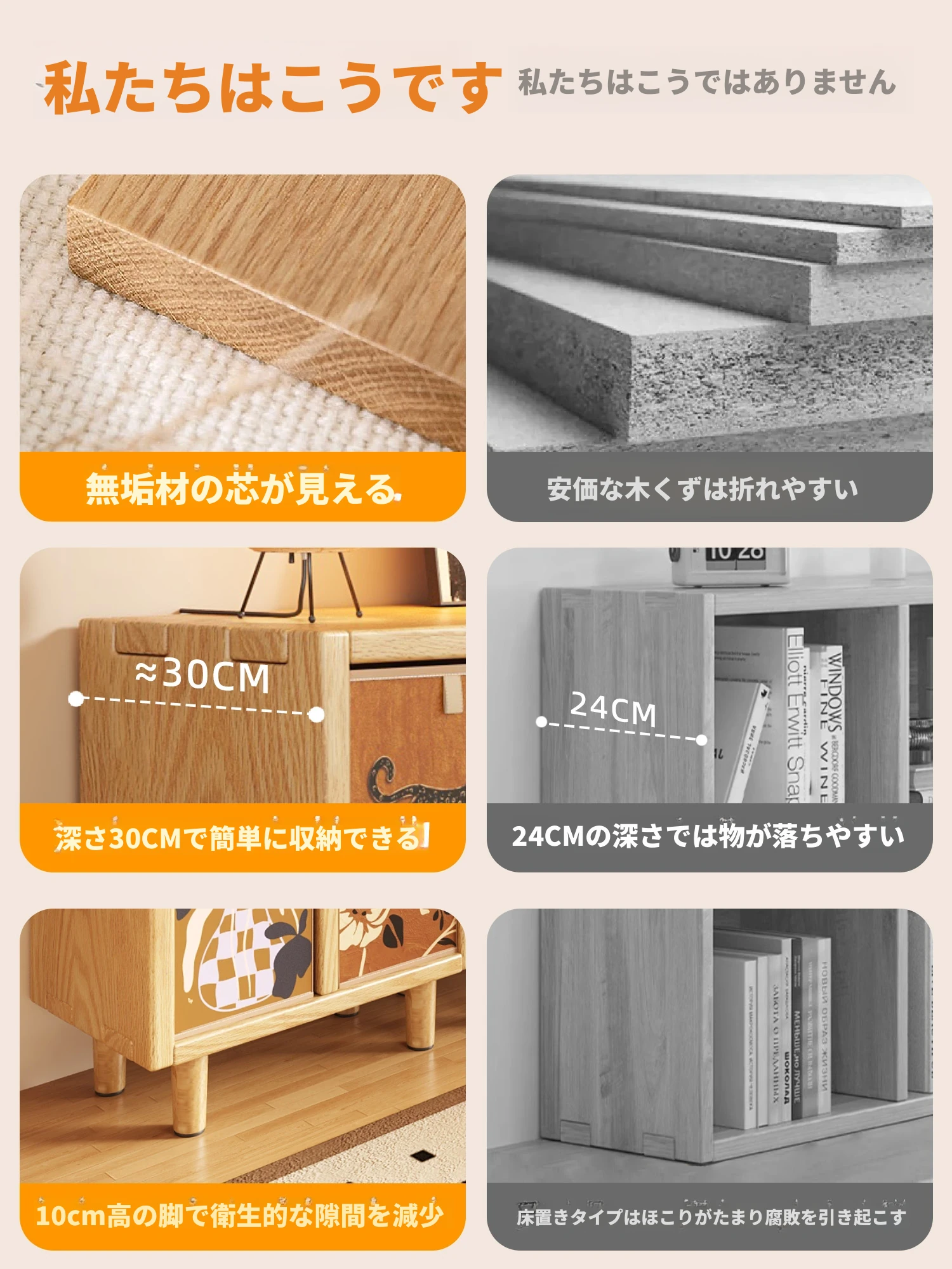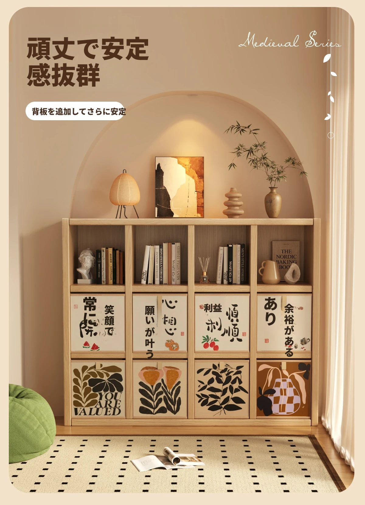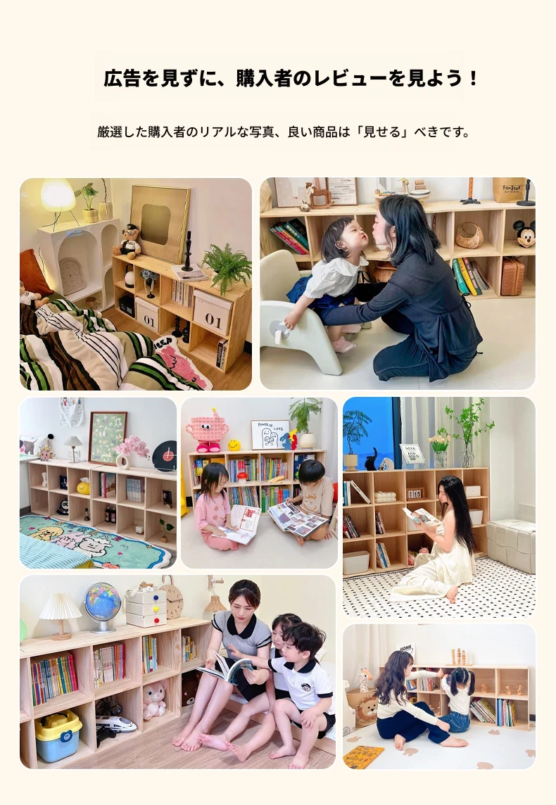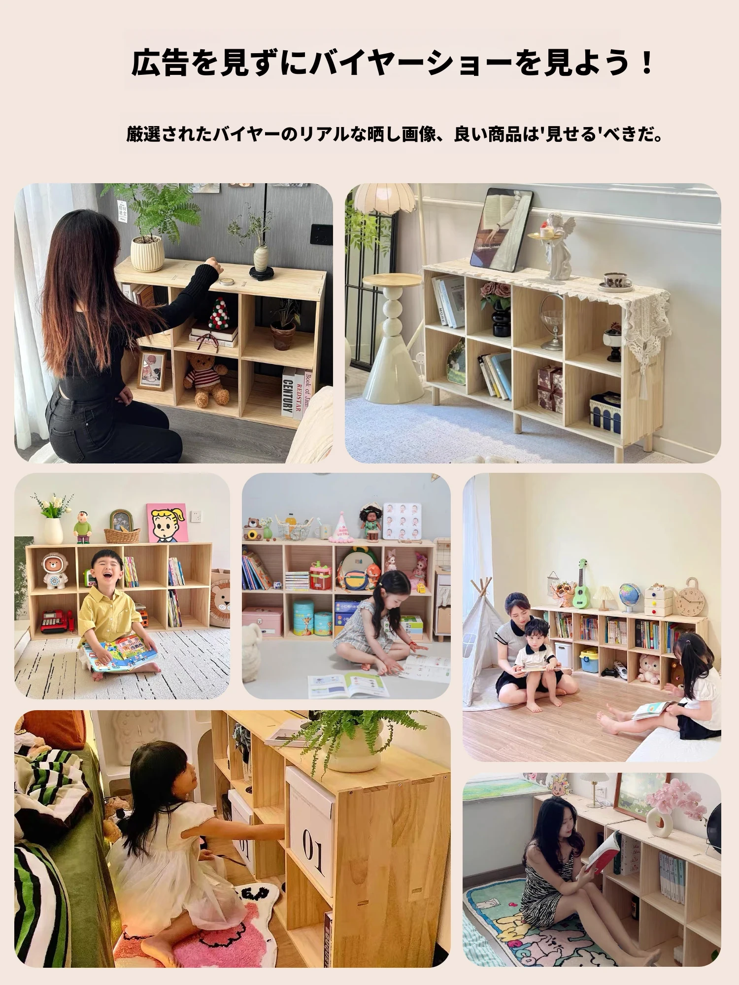 天然木製のグリッドキャビネット本棚 - 落地式収納ラック!8つの収納スペースを備え、幼稚園に最適!壁に寄り添い、シンプルで便利な収納を実現。お部屋をスッキリ整頓し、お子様の成長をサポートします!